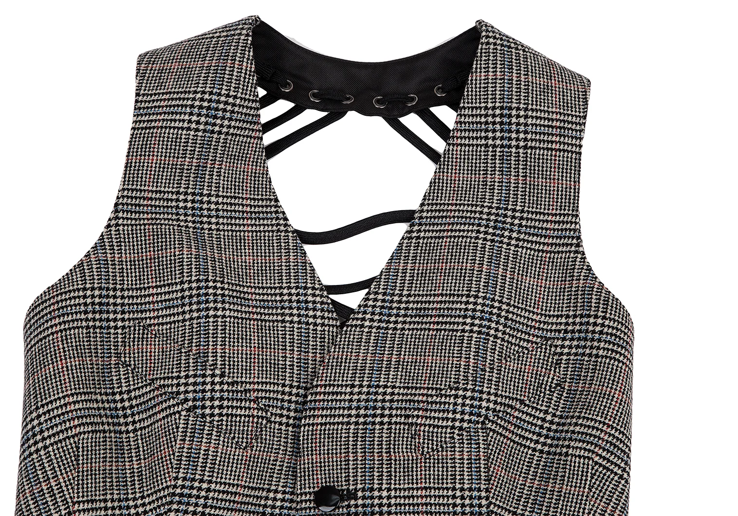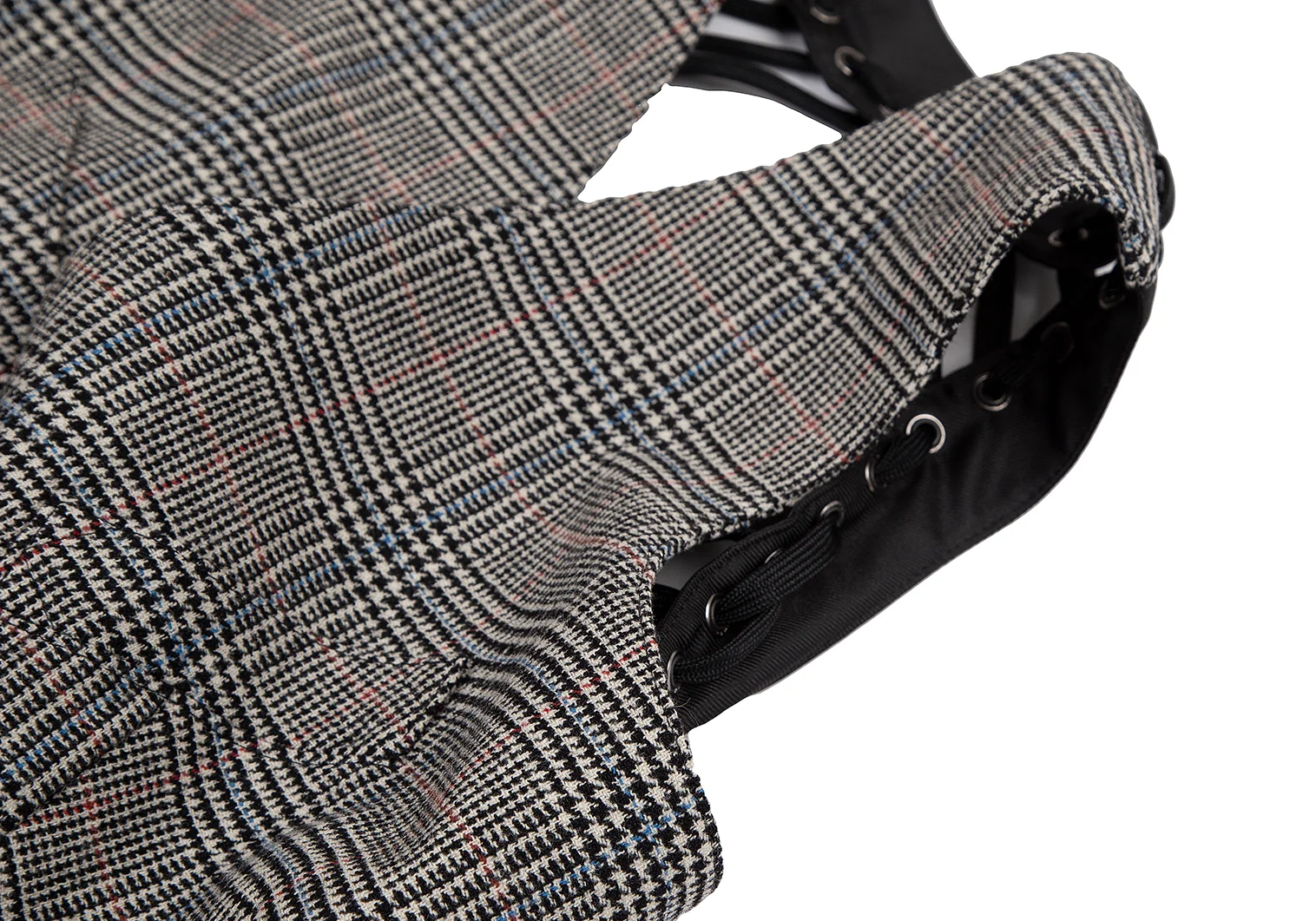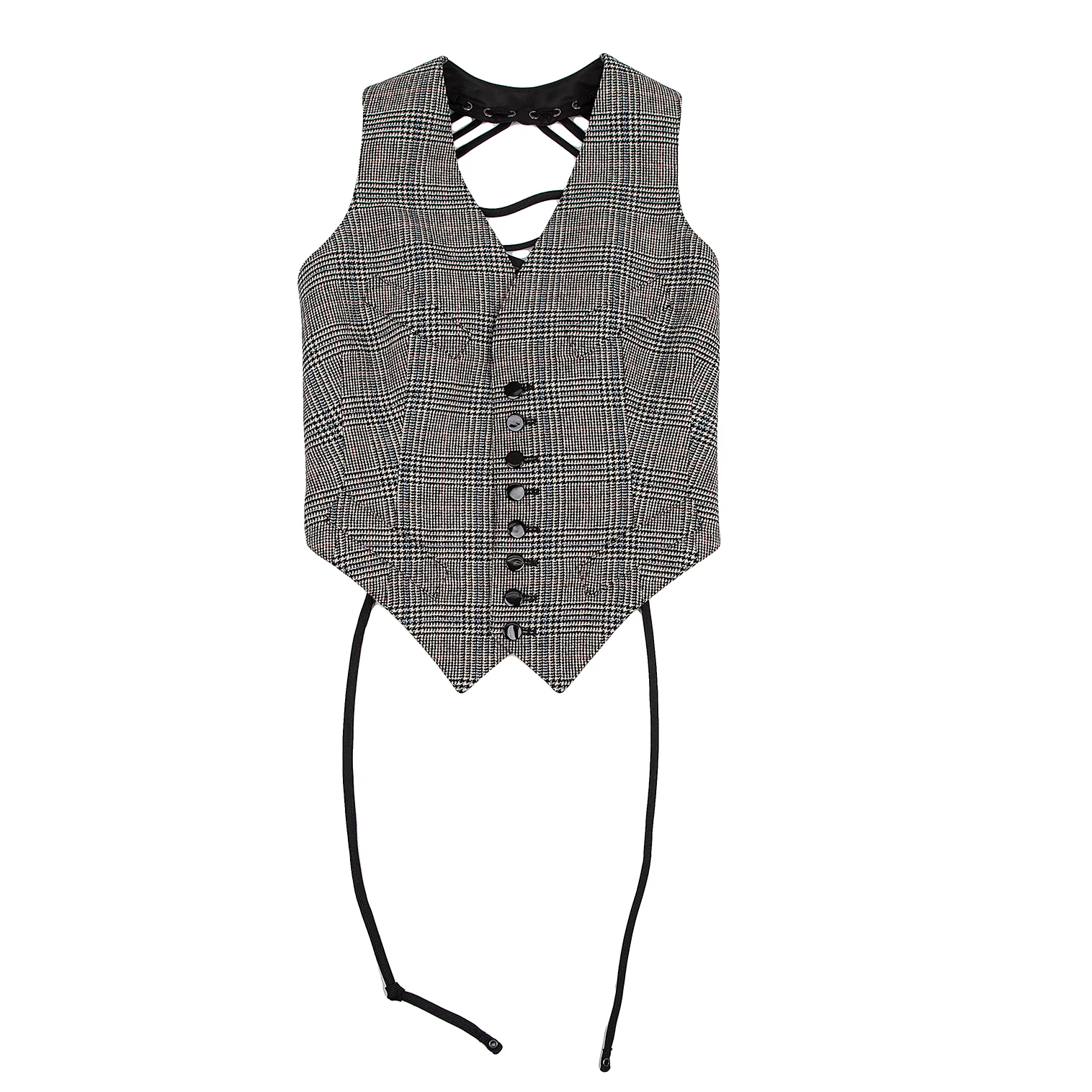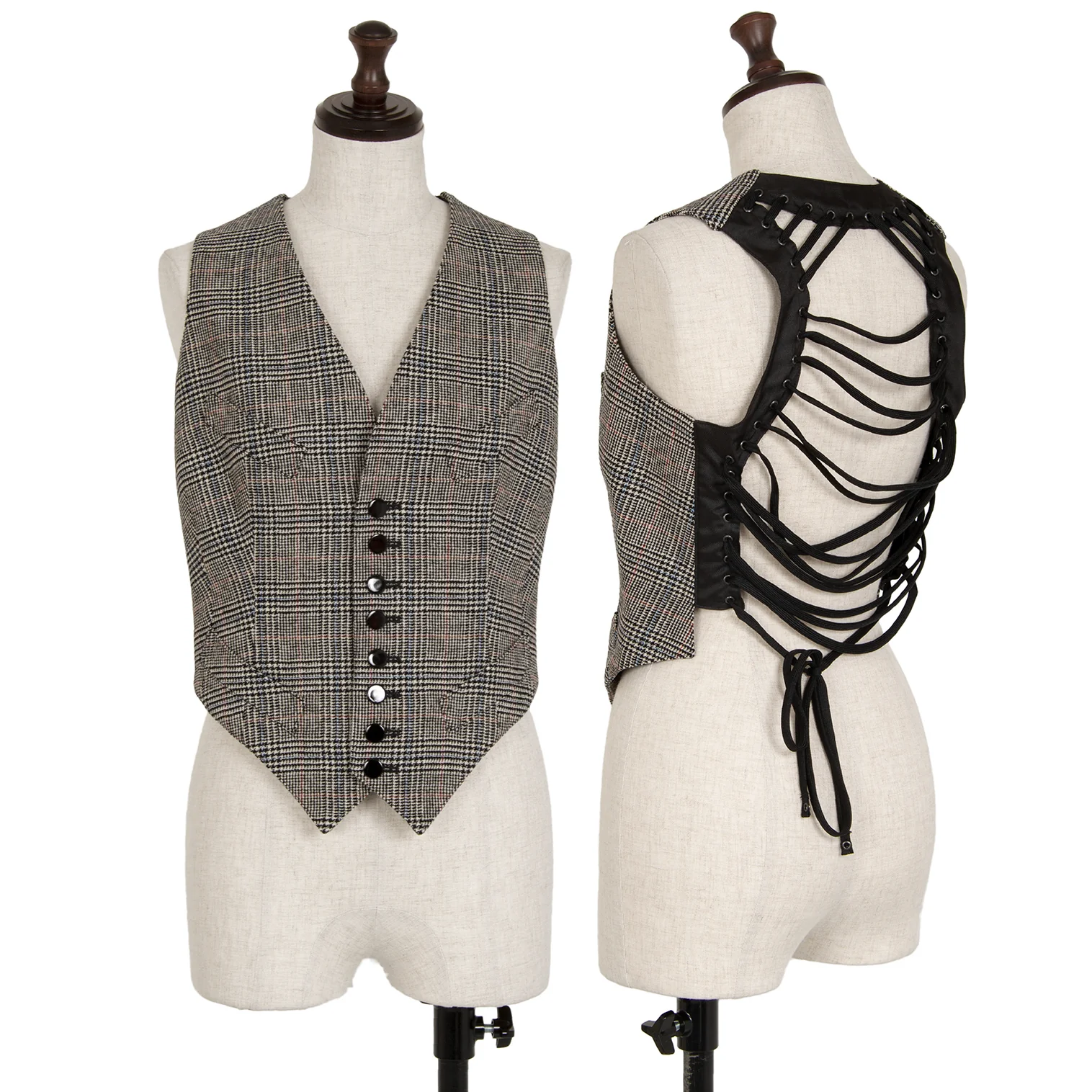 ジャンポールゴルチエ ファムJean Paul GAULTIER FEMME バックレースアップグレンチェックジレベスト 白黒40