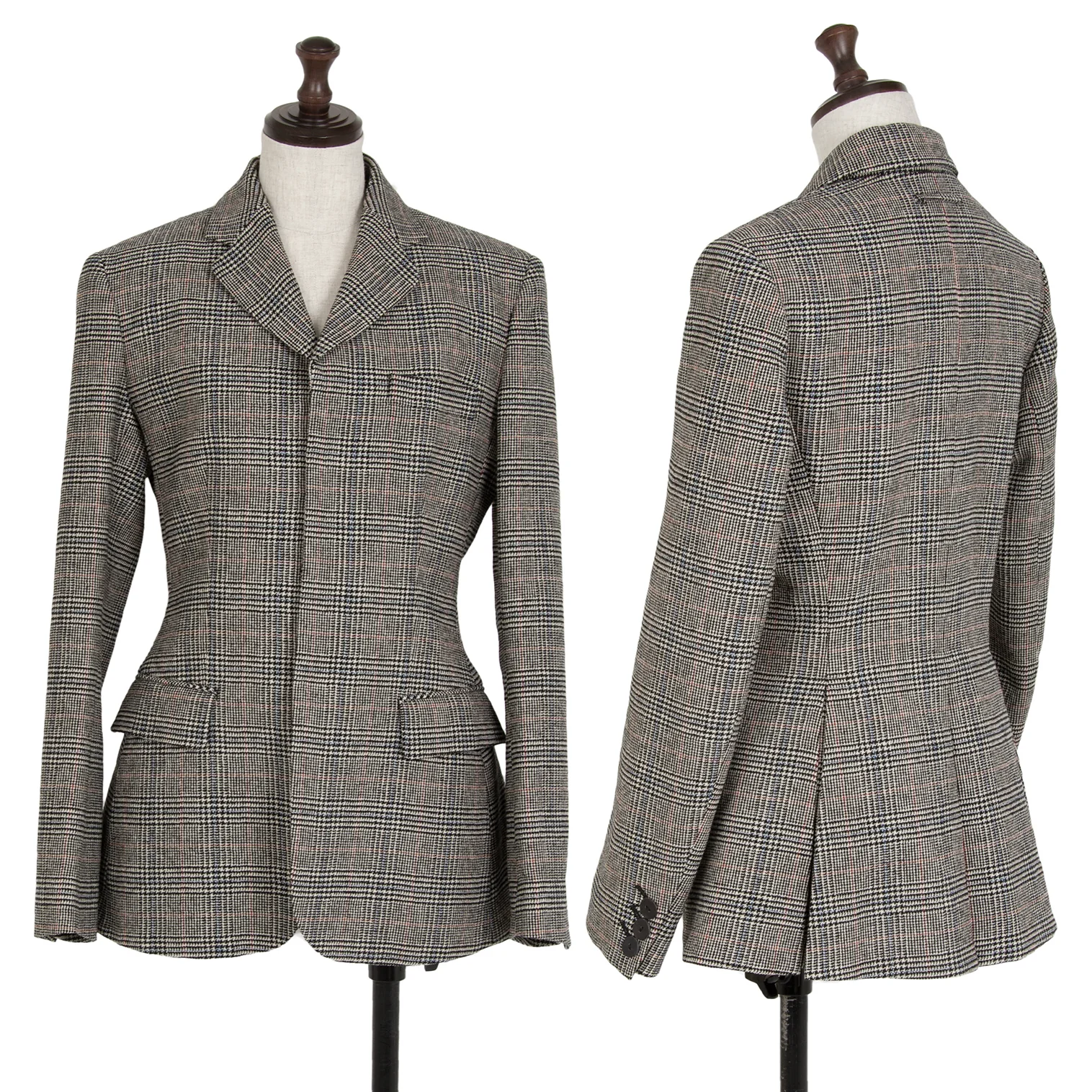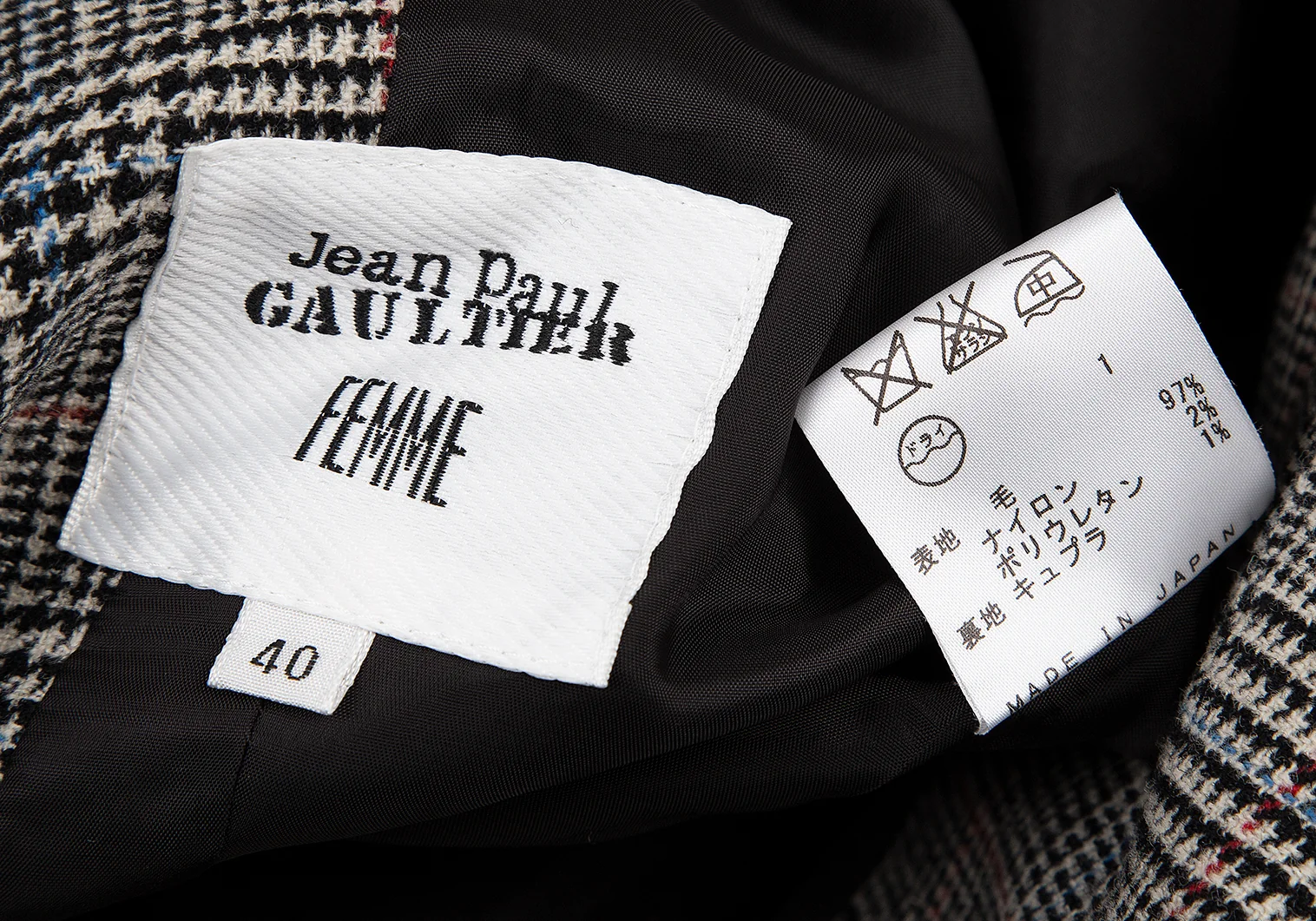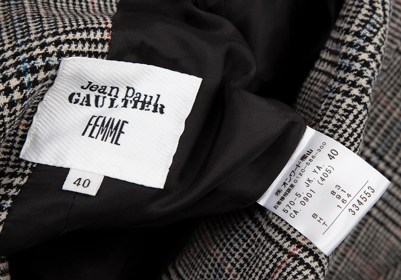 ジャンポールゴルチエ ファムJean Paul GAULTIER FEMME バックプリーツグレンチェック比翼ジャケット 白黒40