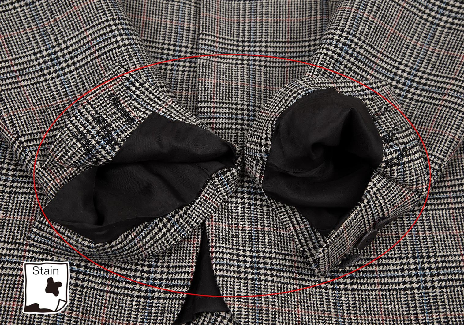 肩パットがあります。袖裏地に薄汚れがあります(写真参照)。その他目立ったシミ、汚れ、ほつれ等なくいい状態です。クリーニング済み