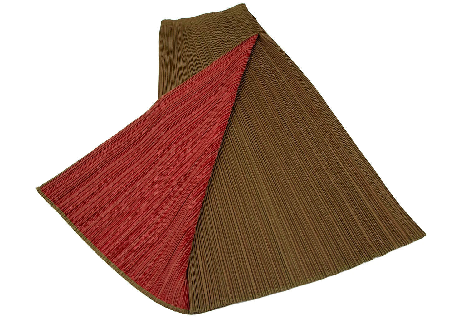 プリーツプリーズPLEATS PLEASE ダブルフェイスハーフレイヤードスカート カーキ3