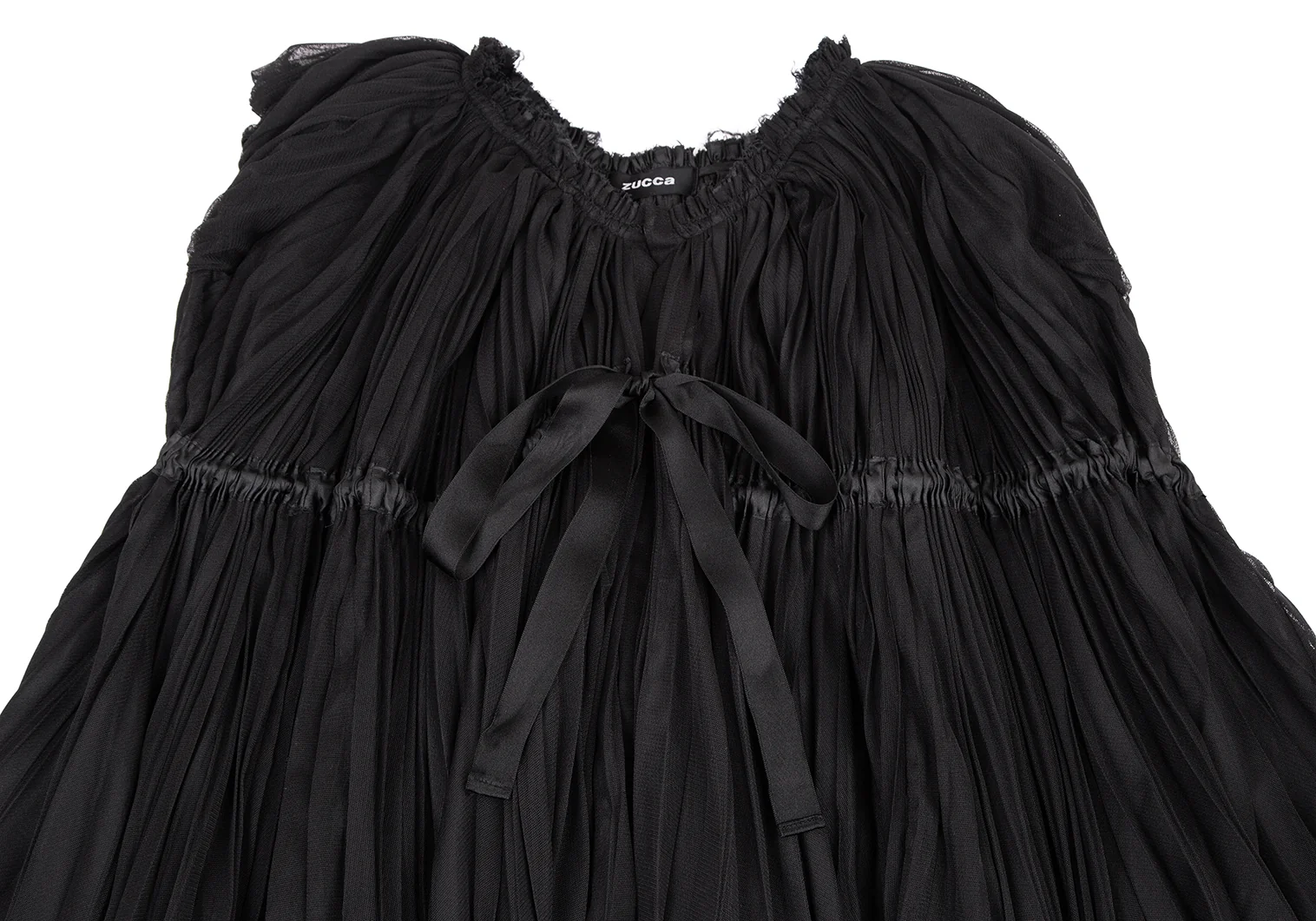 ズッカzucca チュールレイヤードウエストギャザーノースリーブチュニック 黒M位