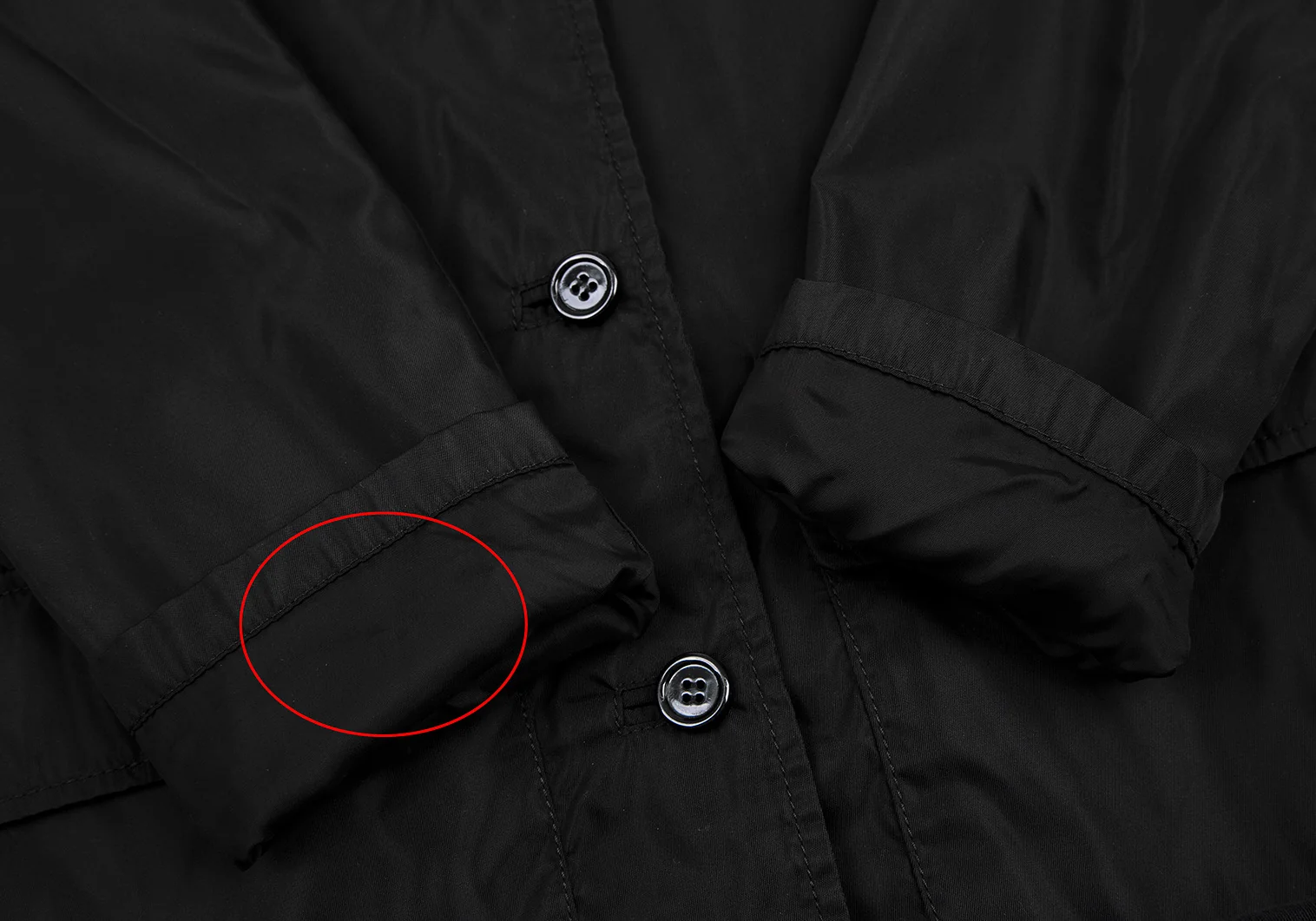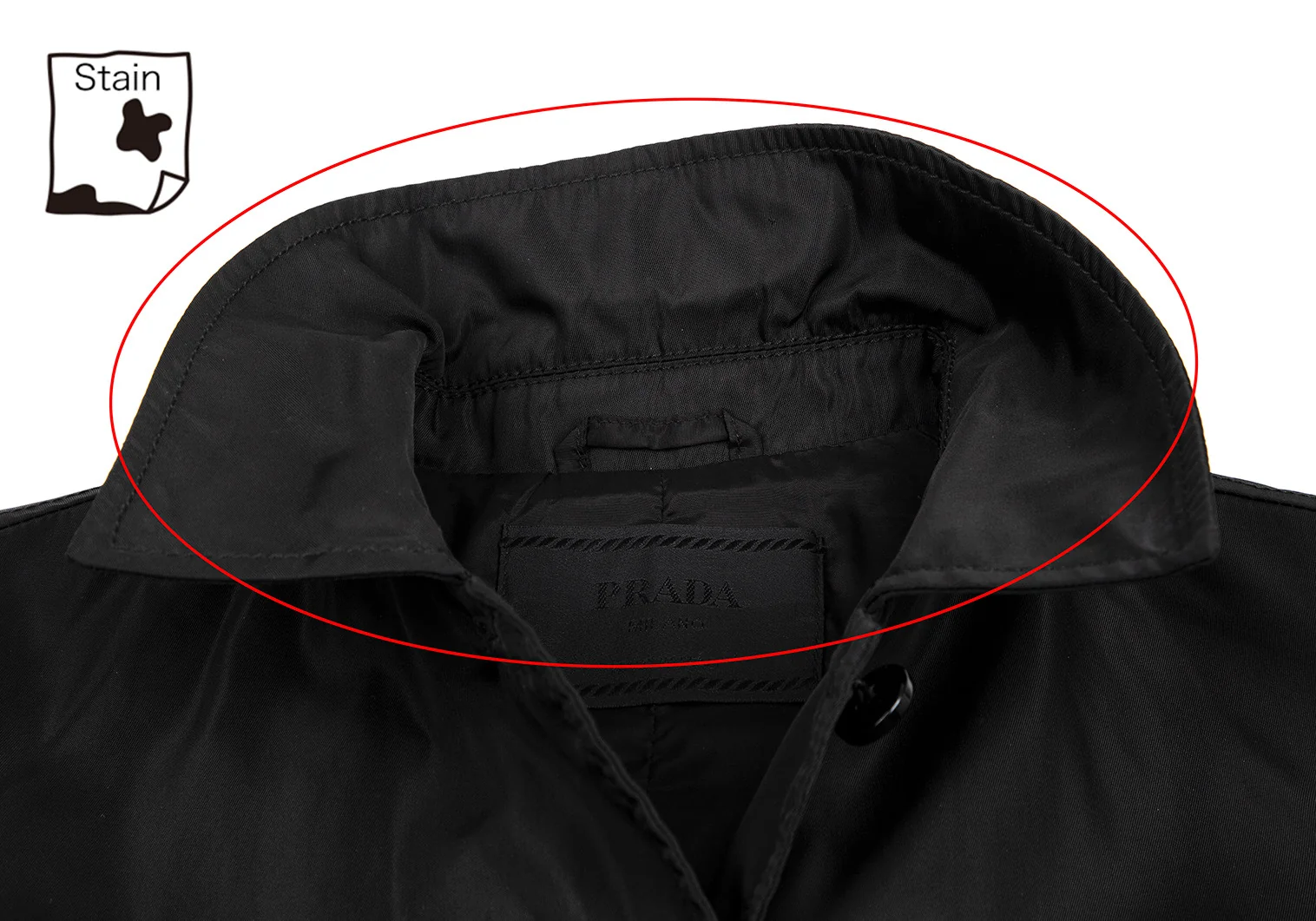 首裏・裾裏側に薄汚れ、右袖裏に薄シミ、背中にスレがあります(写真参照)。その他目立ったシミ、汚れ、ほつれ等なくいい状態です。クリーニング済み