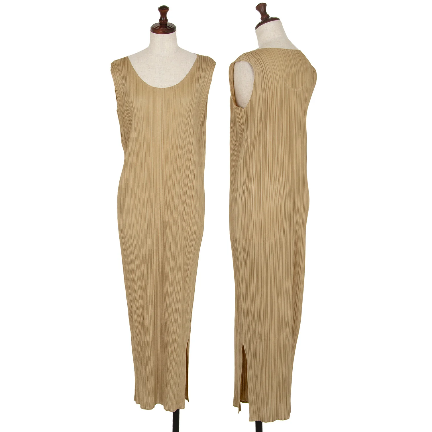 プリーツプリーズPLEATS PLEASE ノースリーブマキシワンピース ベージュ2
