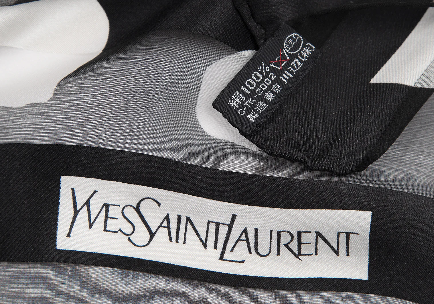 イヴサンローランYves Saint Laurent シースルーボーダーストール 黒白