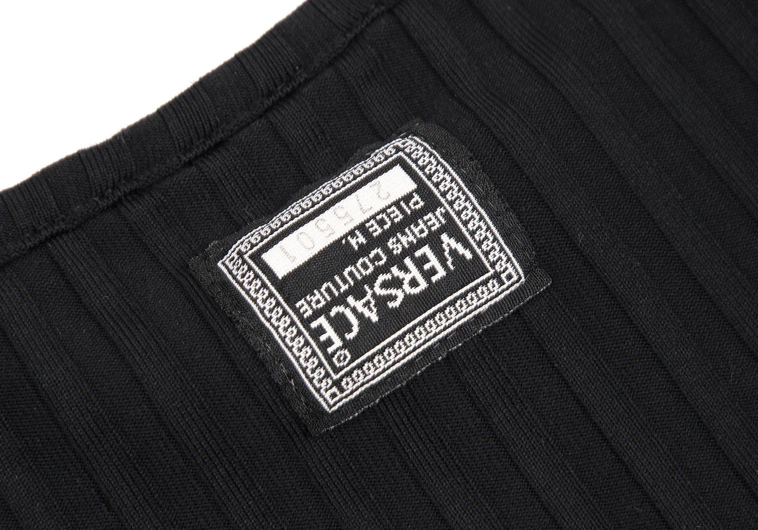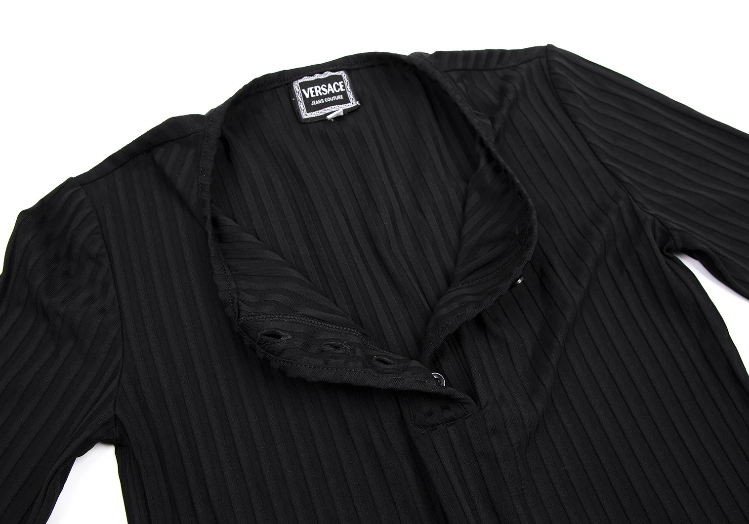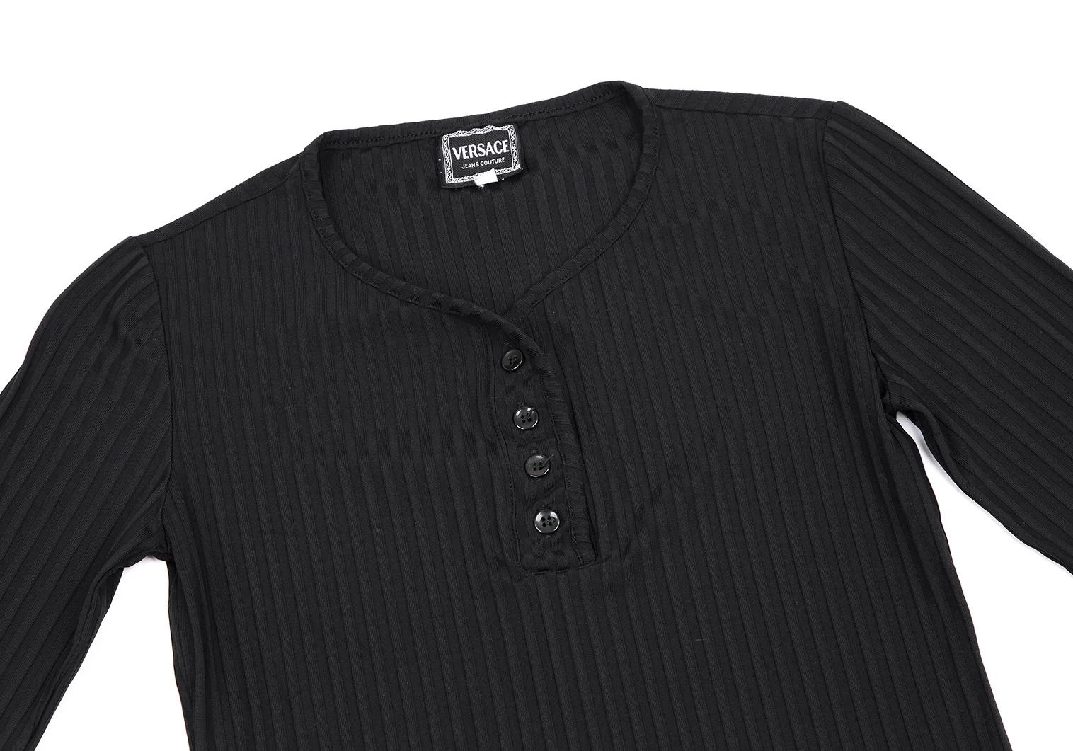 ヴェルサーチ ジーンズクチュールVERSACE JEANS COUTURE シャドーストライプヘンリーネックカットソー 黒L
