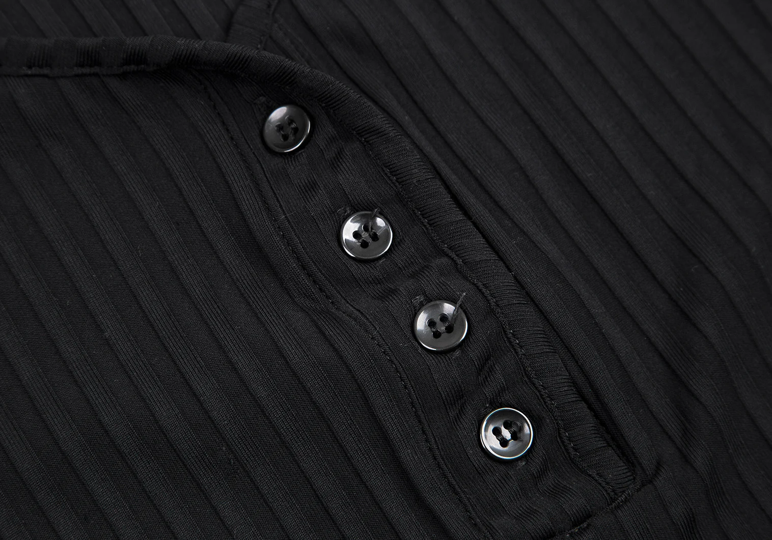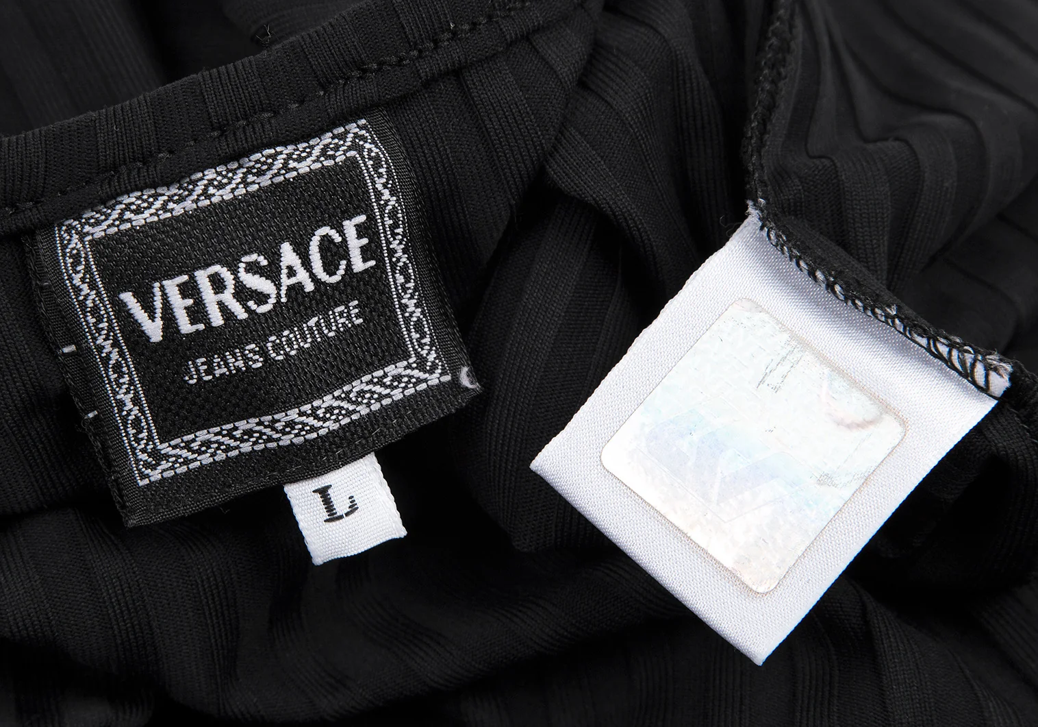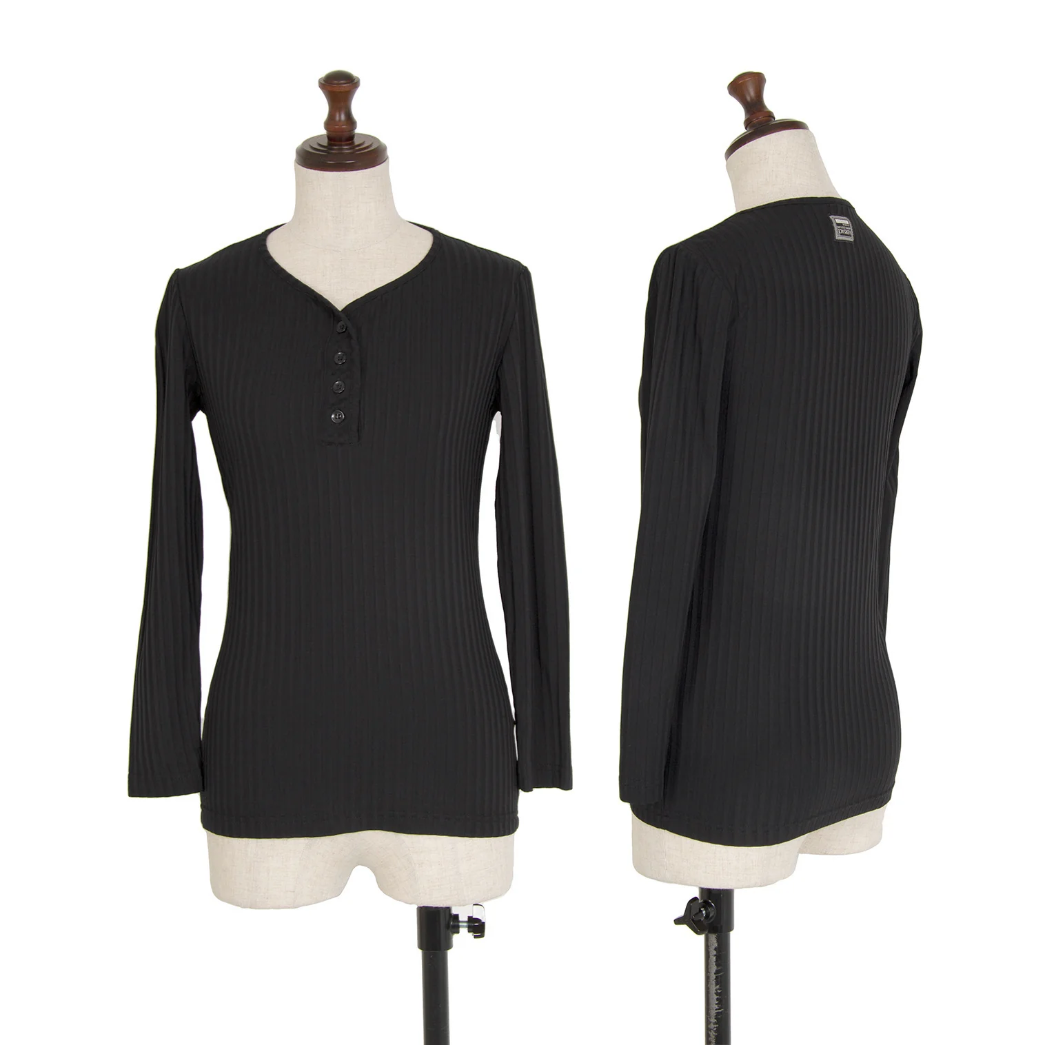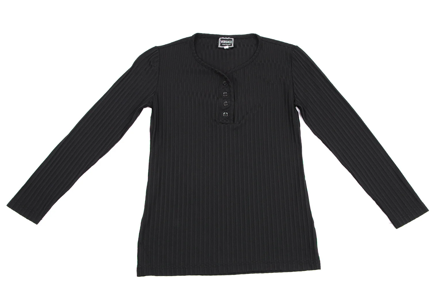 ヴェルサーチ ジーンズクチュールVERSACE JEANS COUTURE シャドーストライプヘンリーネックカットソー 黒L