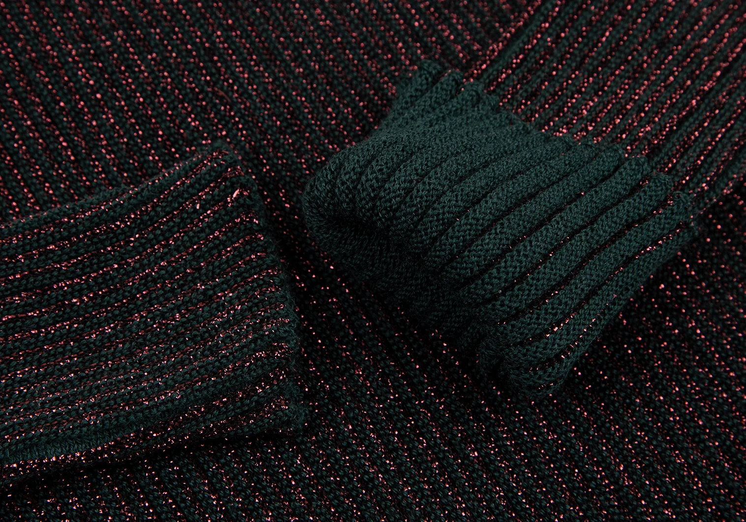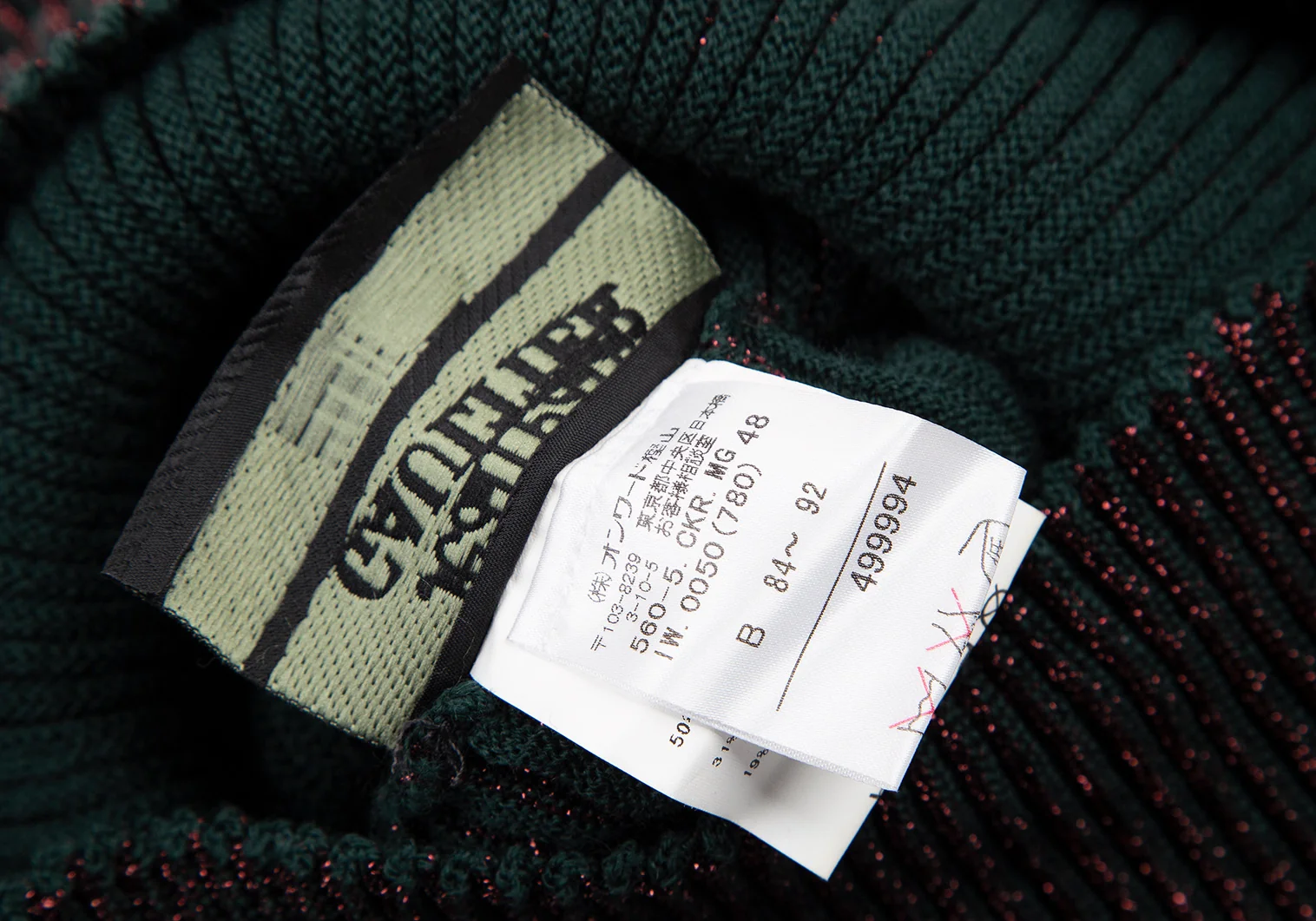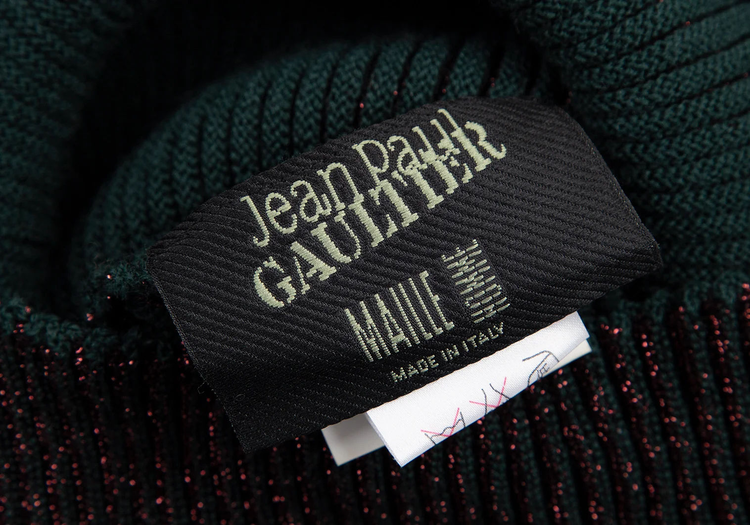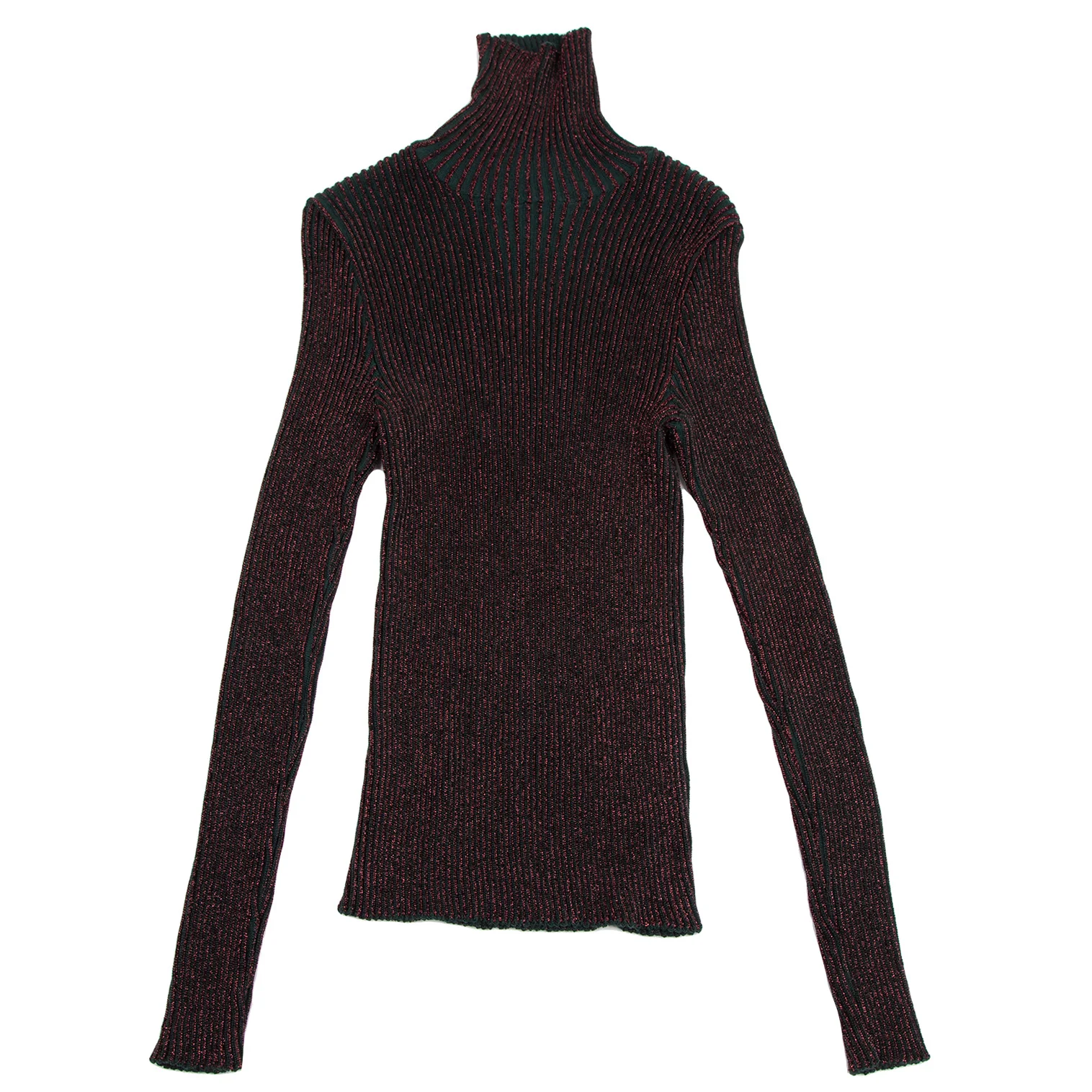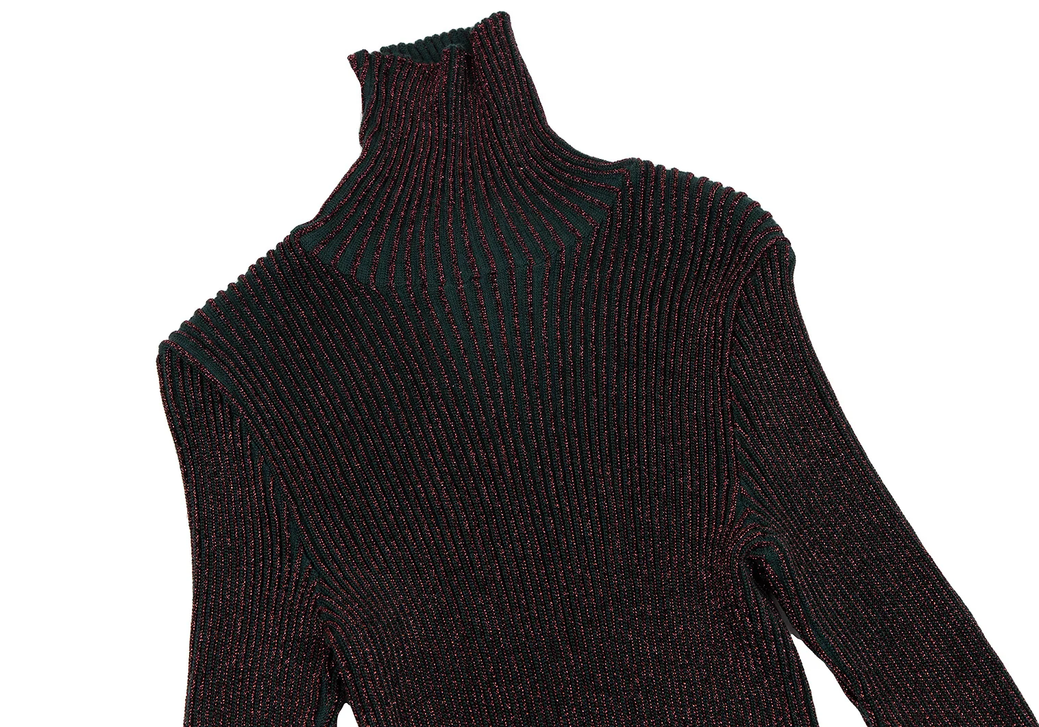 ジャンポールゴルチエ マイユオムJean Paul GAULTIER MAILLE HOMME ハイネックグリッターリブニット ボルドー緑48
