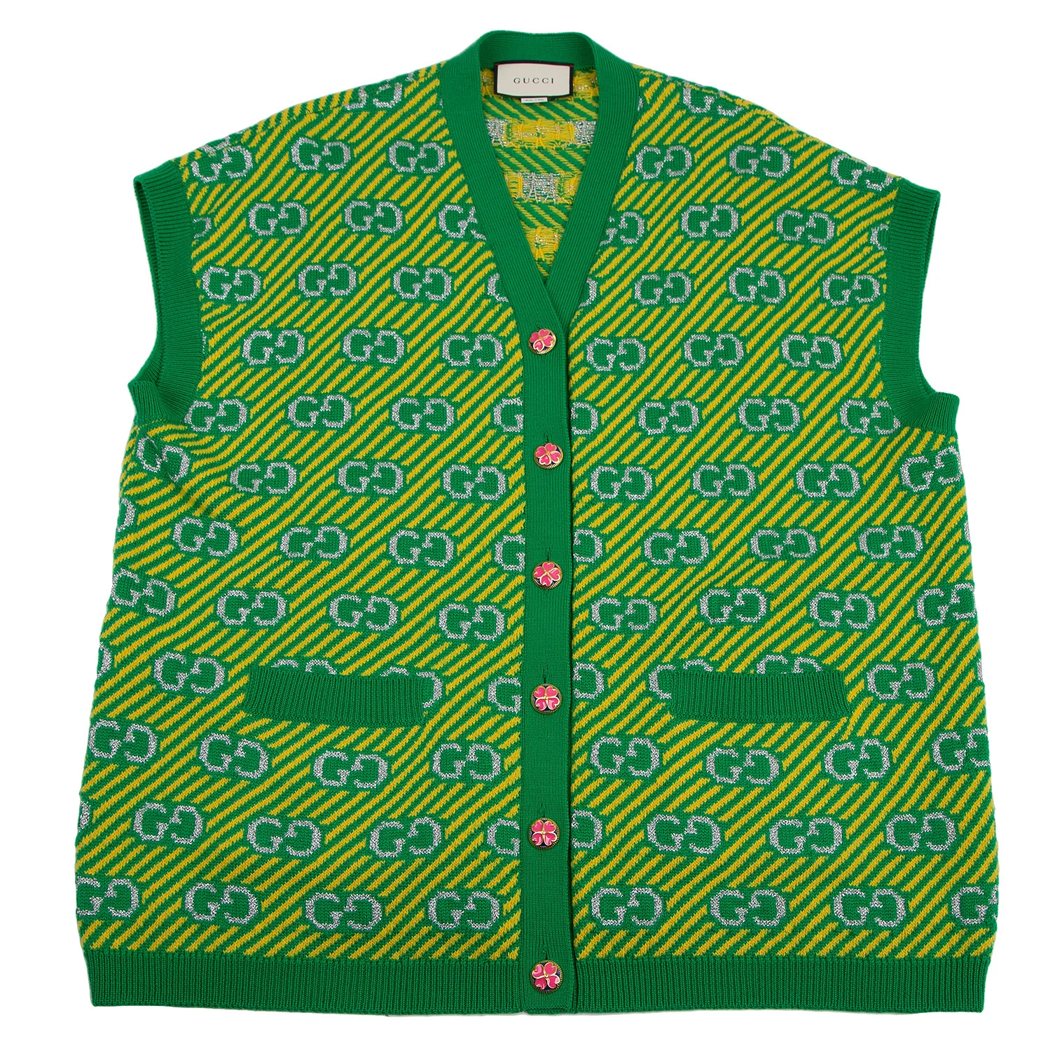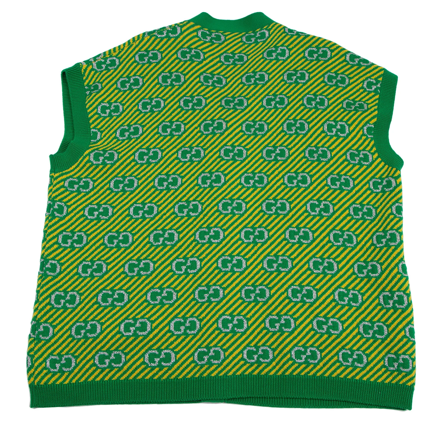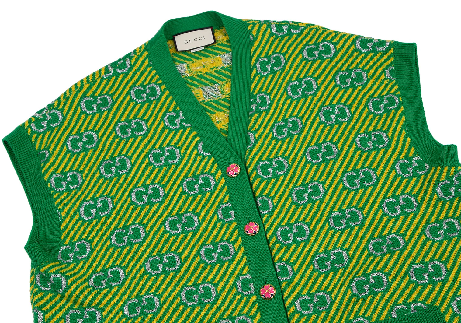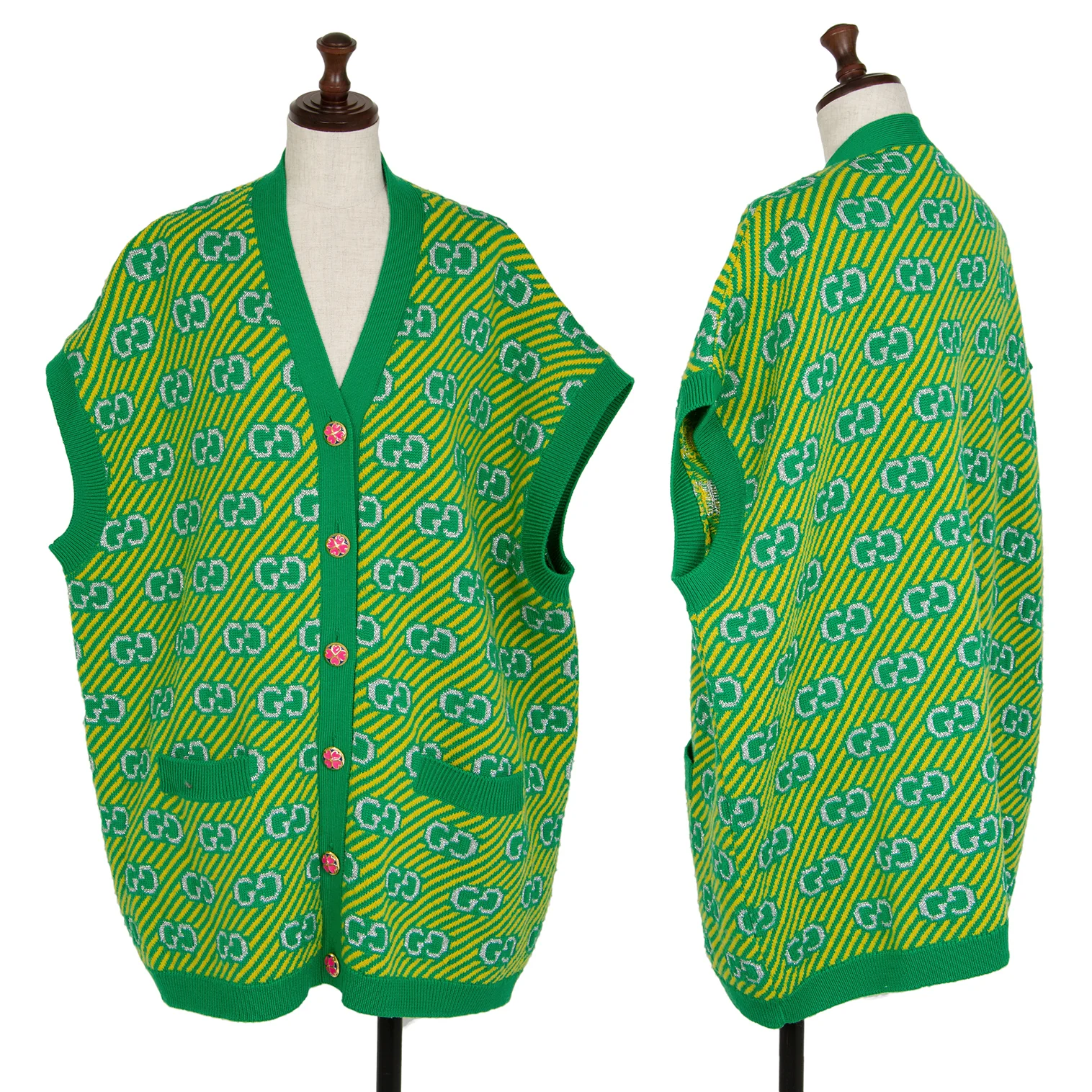 グッチGUCCI GGストライプジャガードニットベスト 緑黄M