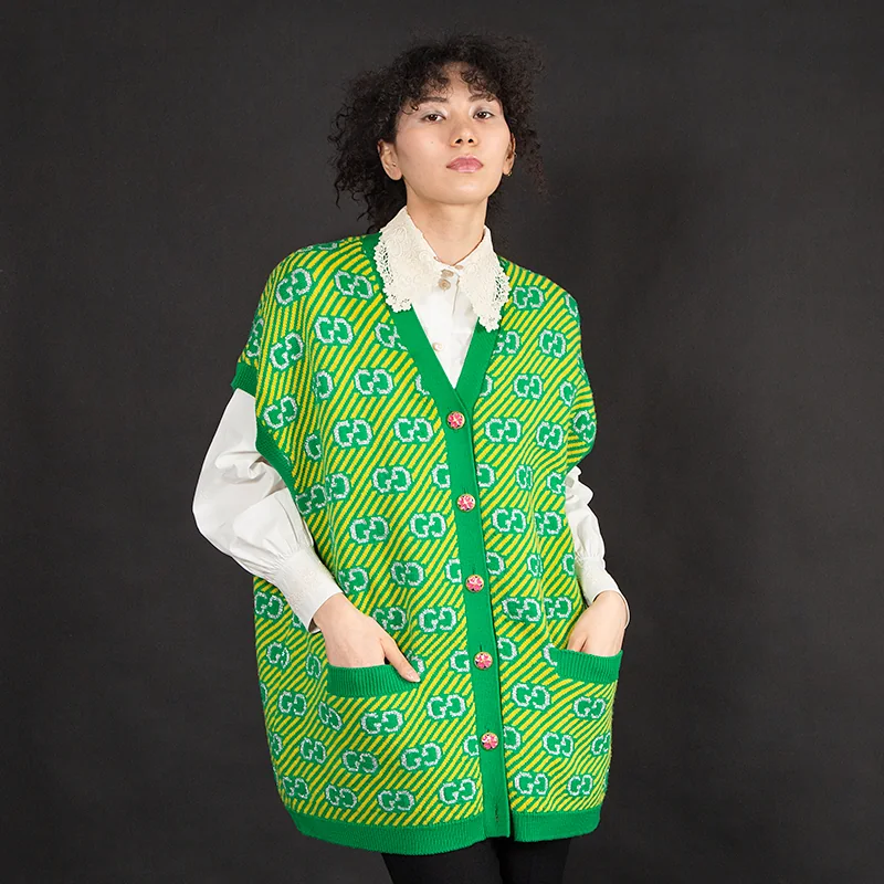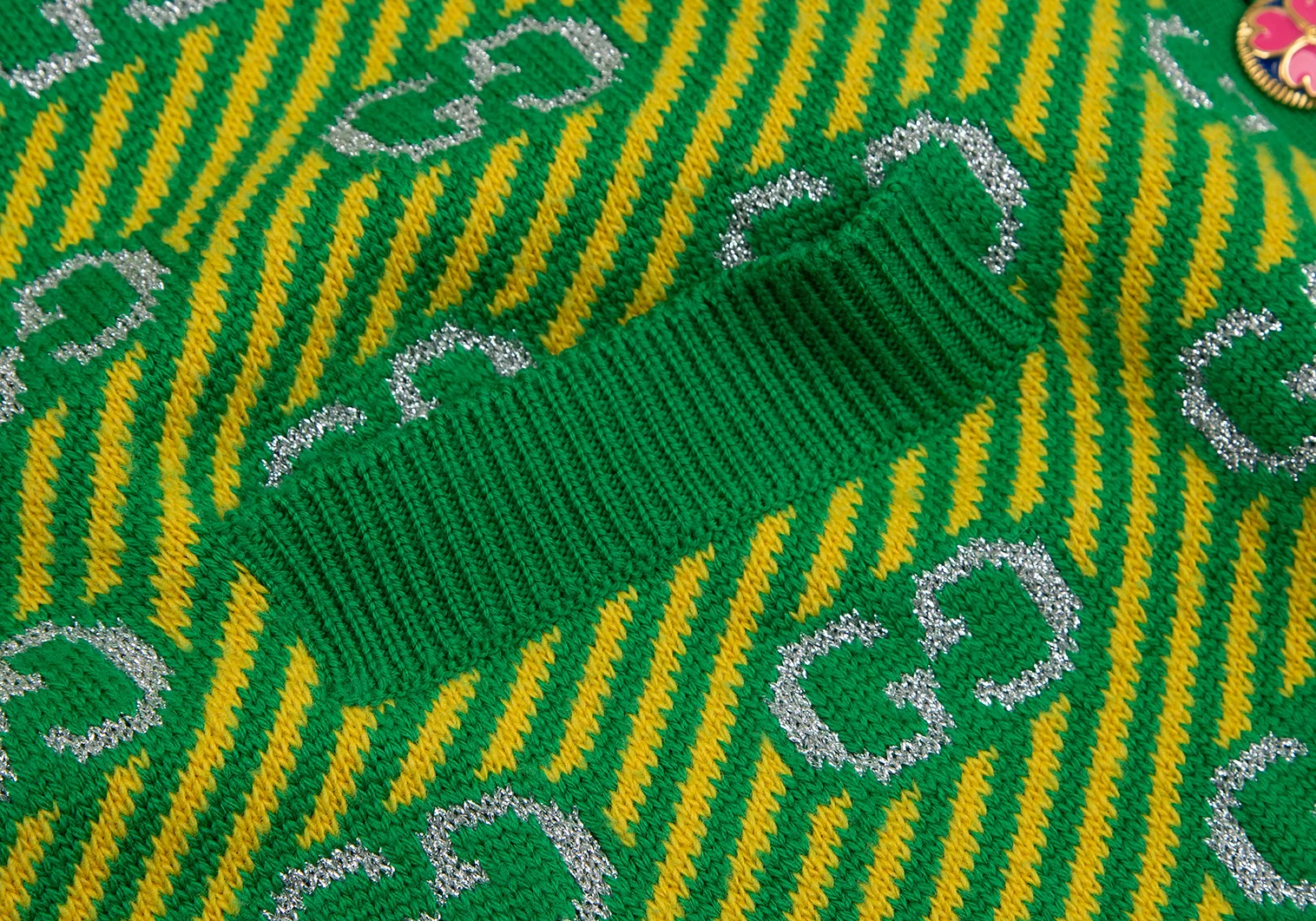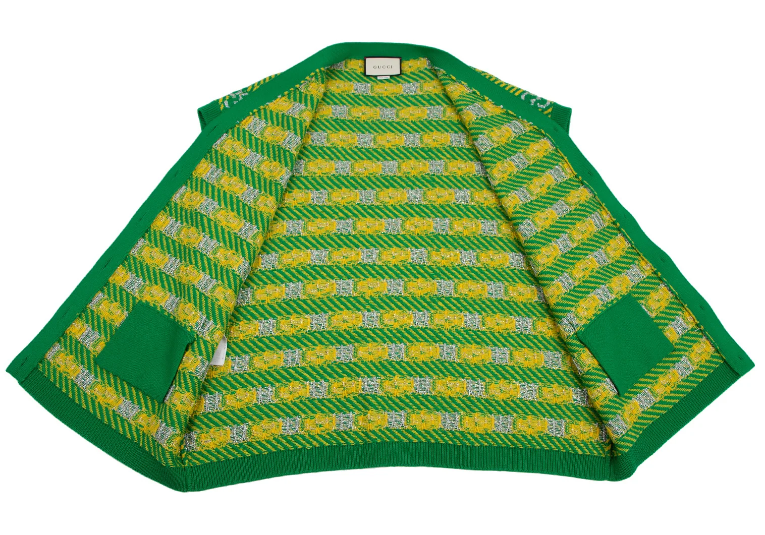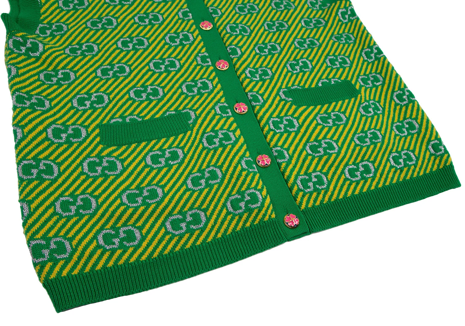 グッチGUCCI GGストライプジャガードニットベスト 緑黄M