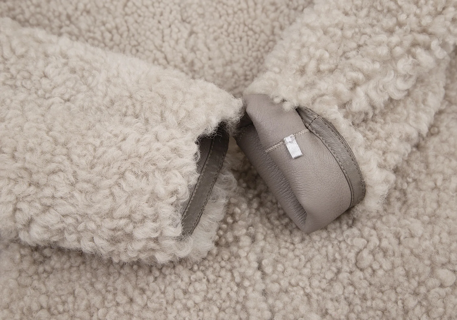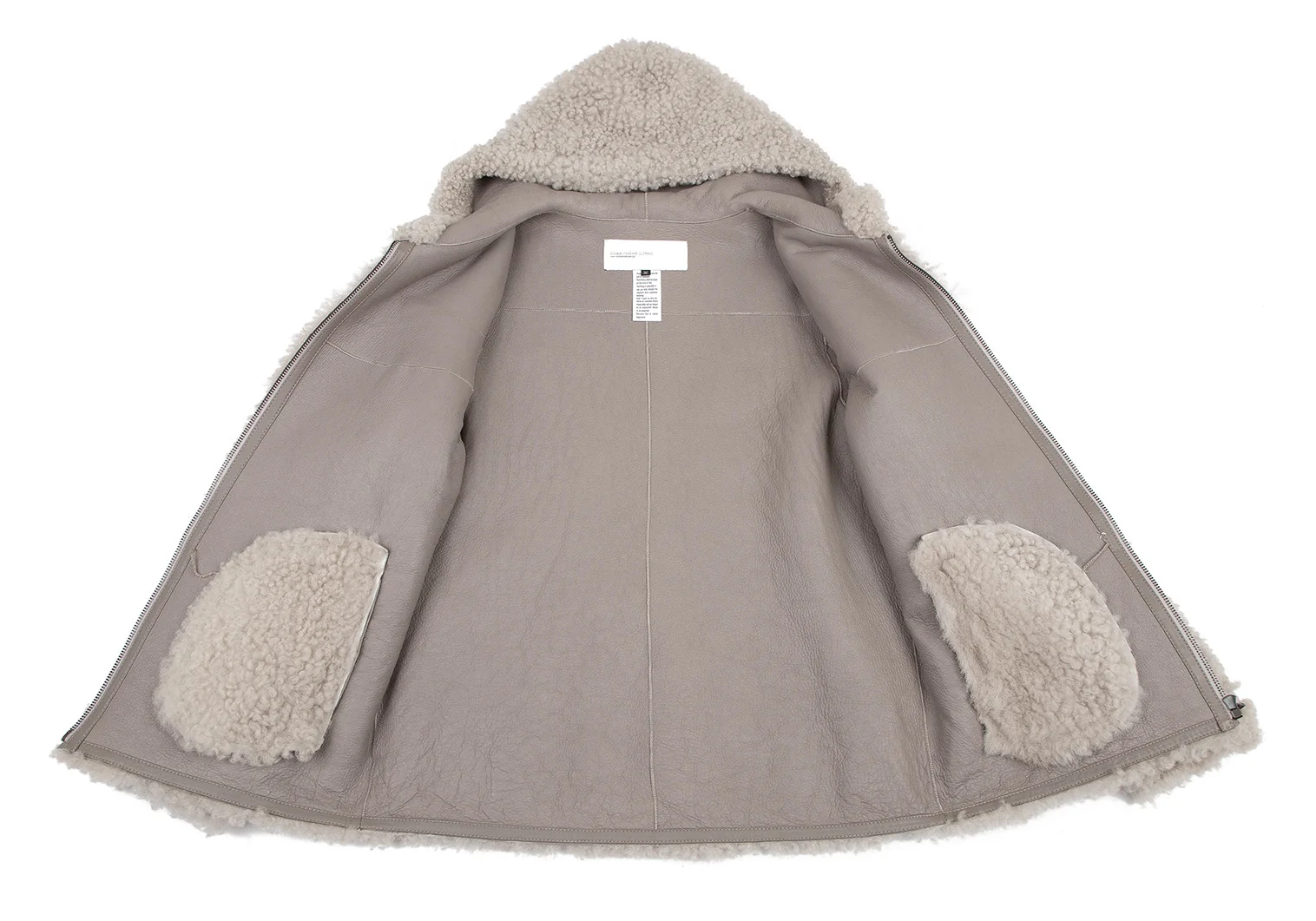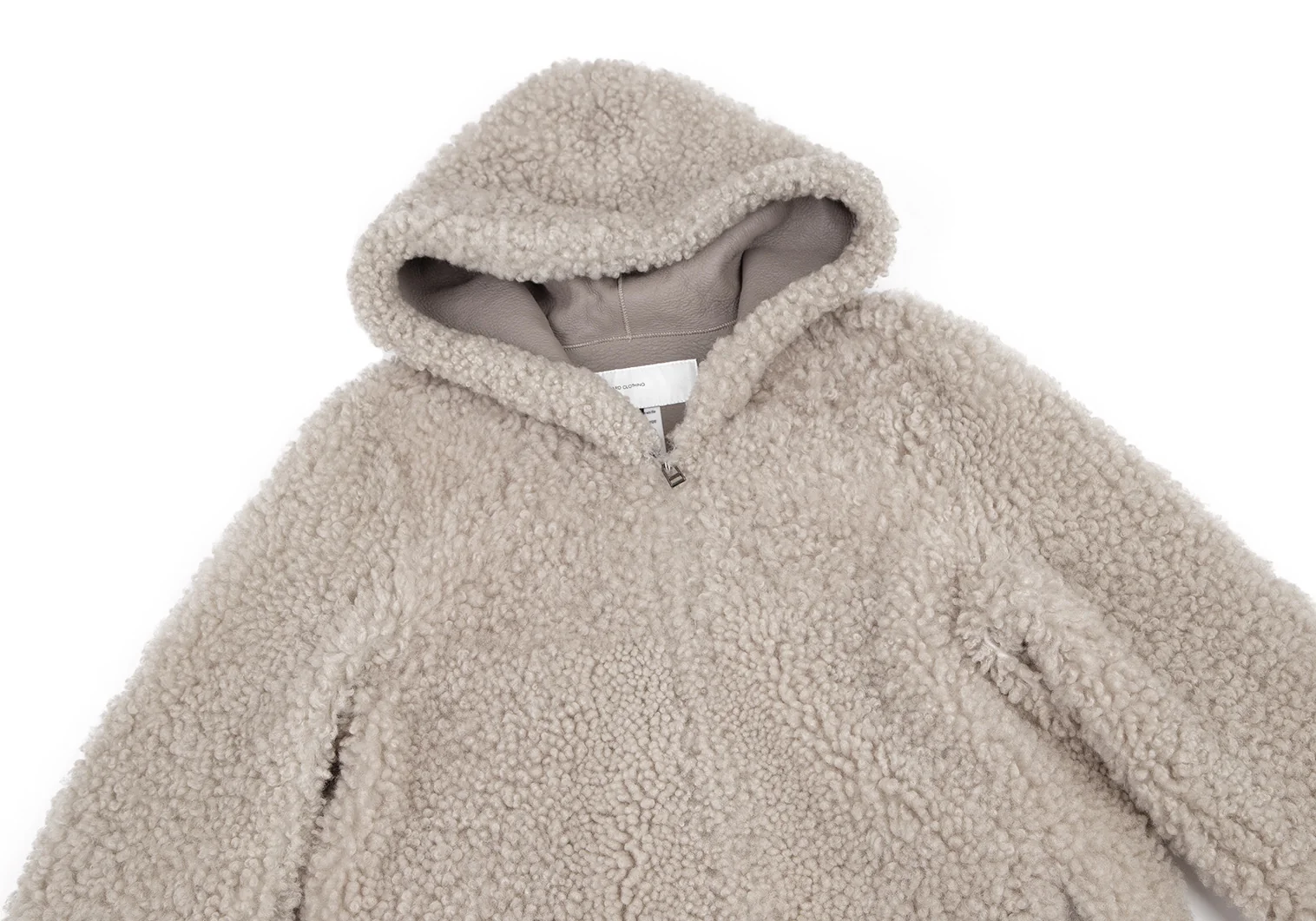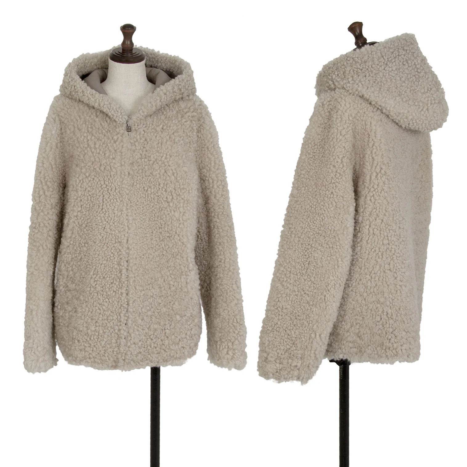 ダブルスタンダードクロージングDOUBLE STANDARD CLOTHING ボアムートンジップアップフーデッドジャケット グレージュ36
