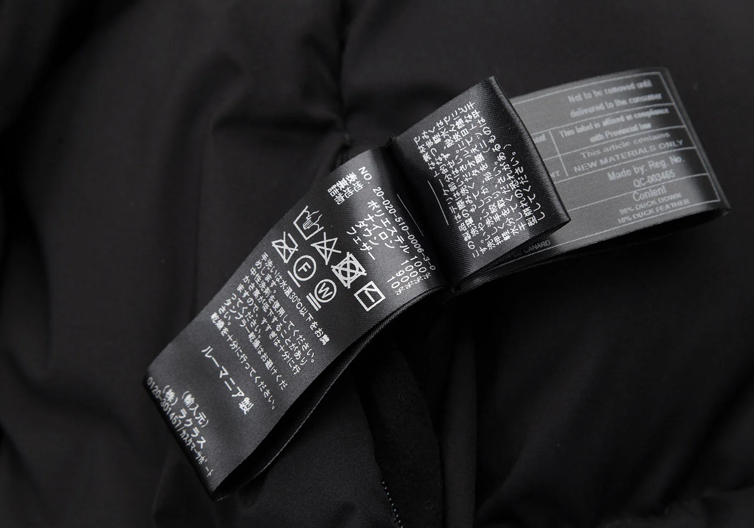 ポリエステル100% 裏地 ナイロン100% 詰物 ダウン90% フェザー10%