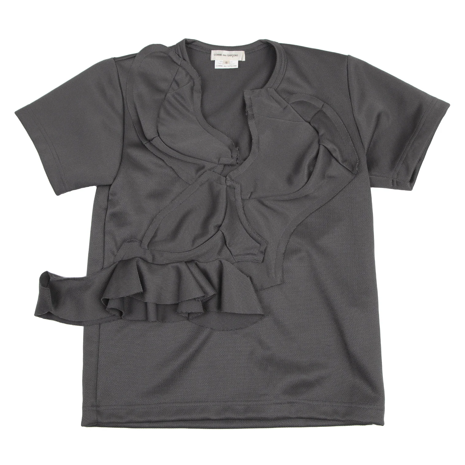 コムデギャルソンCOMME des GARCONS 生地貼り付け鹿の子半袖カットソー グレーS