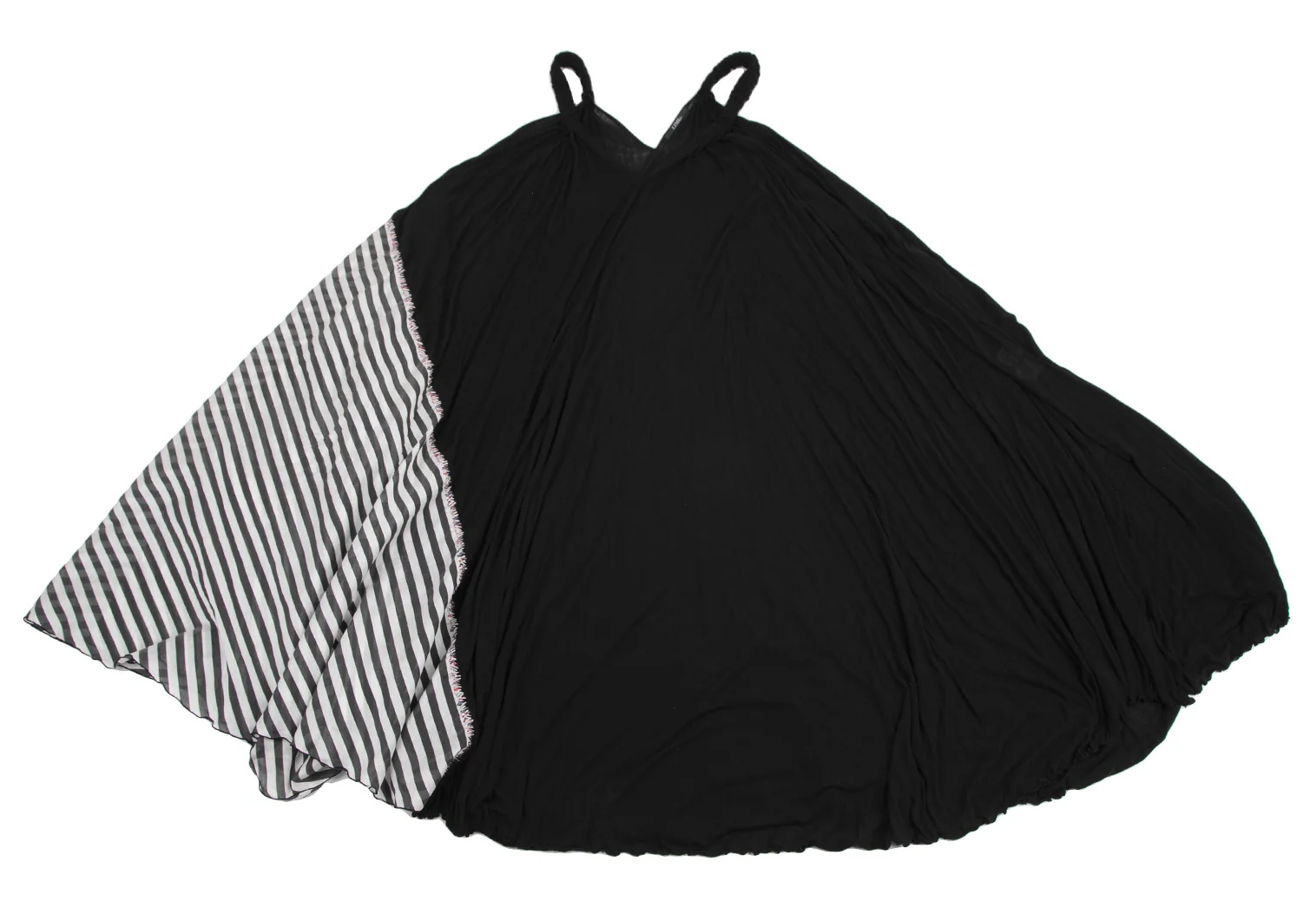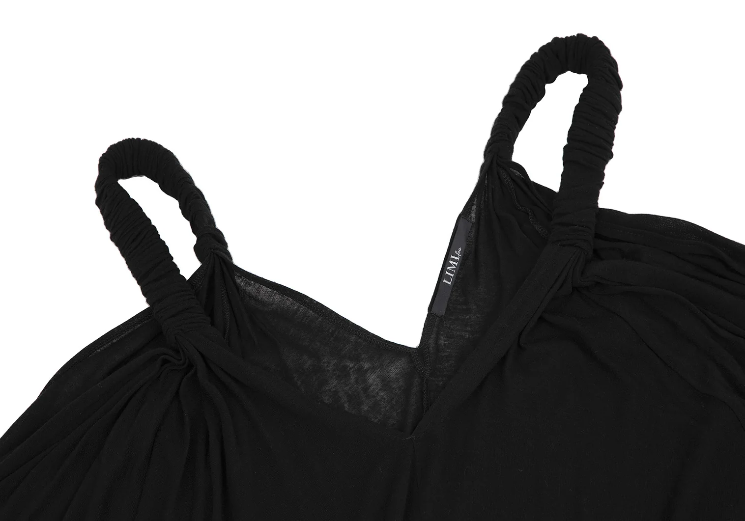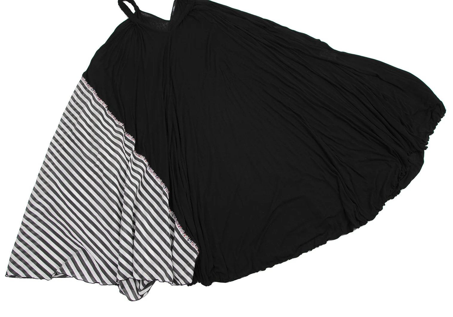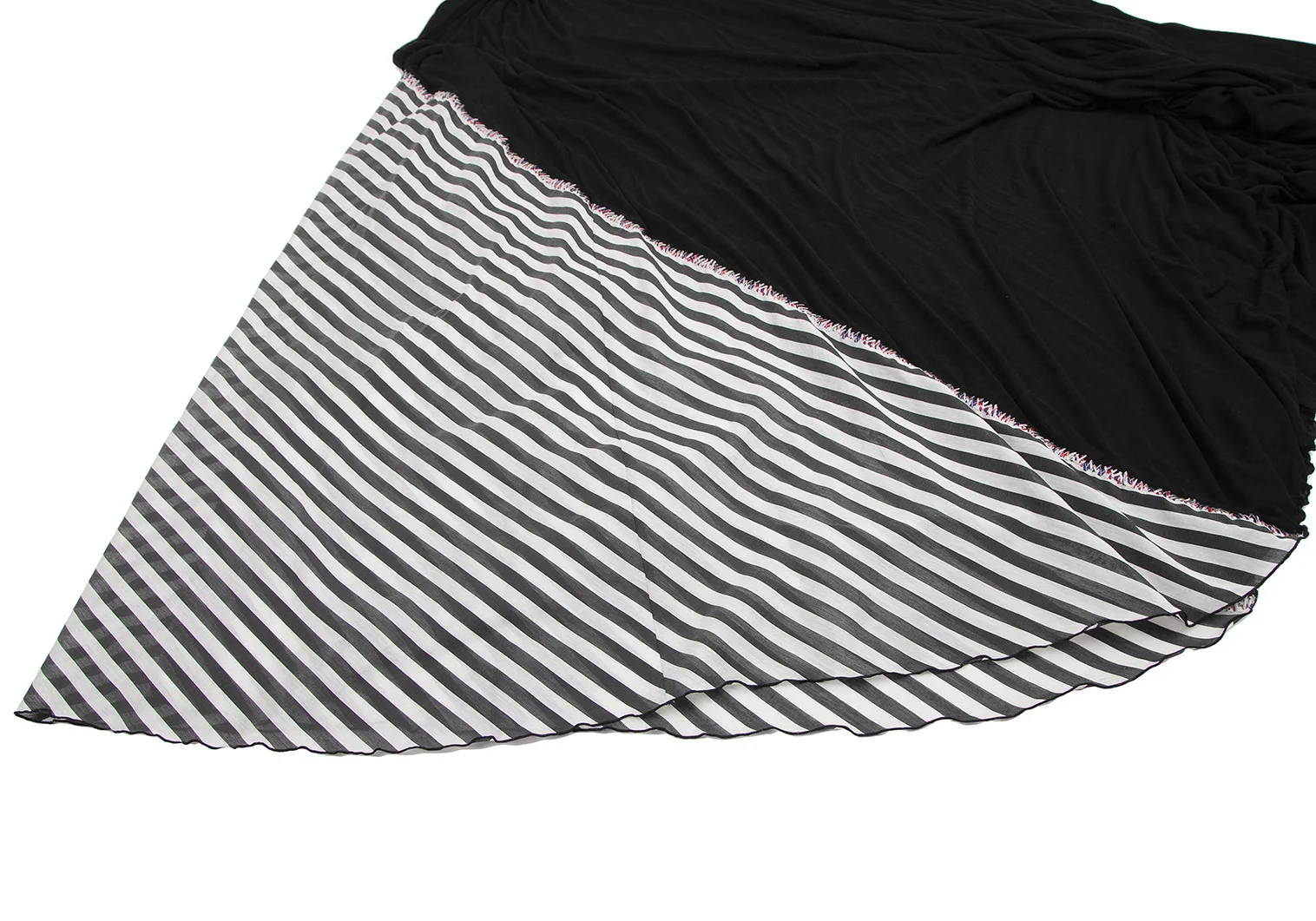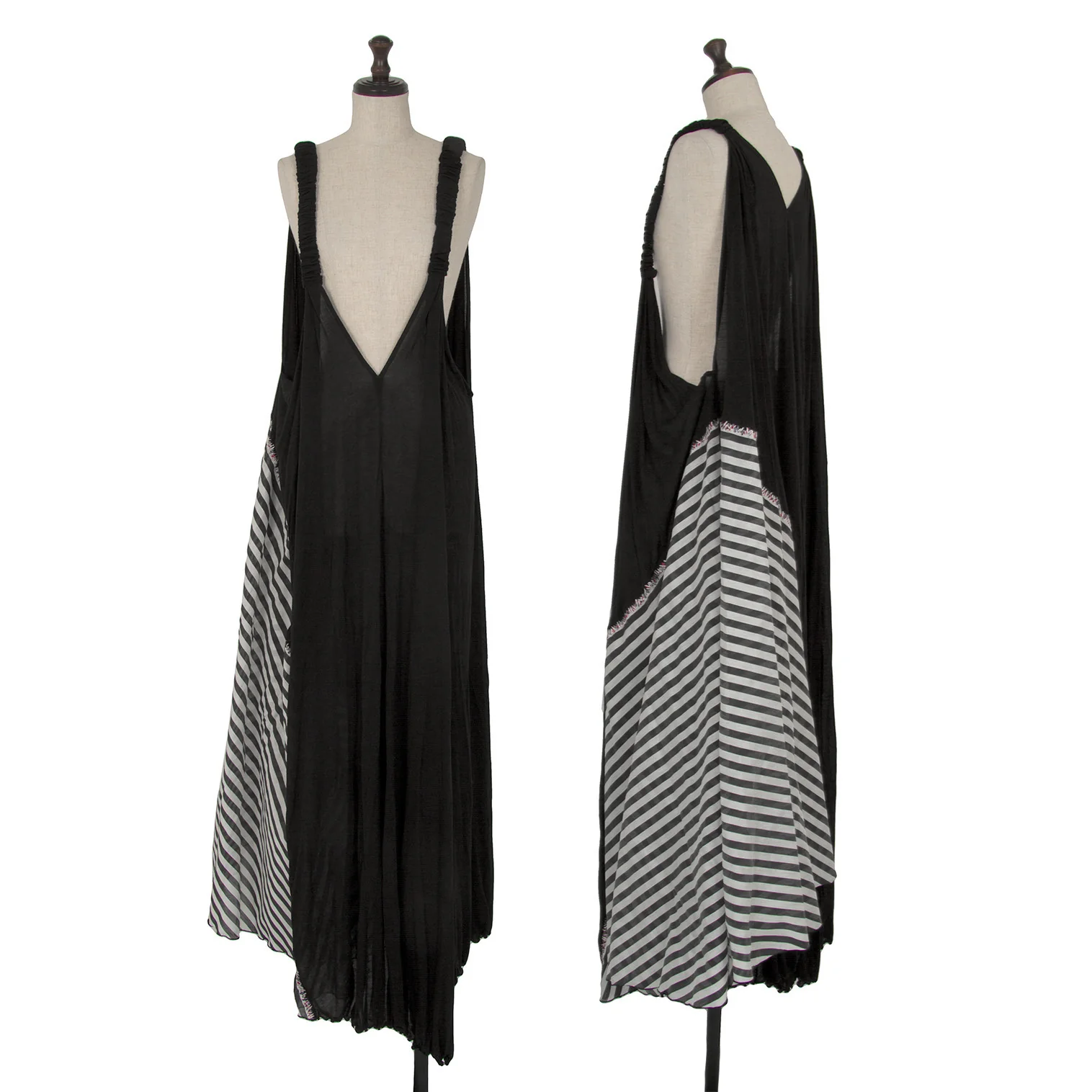 リミフゥLIMI feu 異素材ストライプ切替ギャザーショルダーノースリーブワンピース 黒S