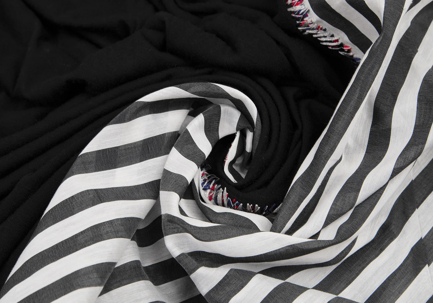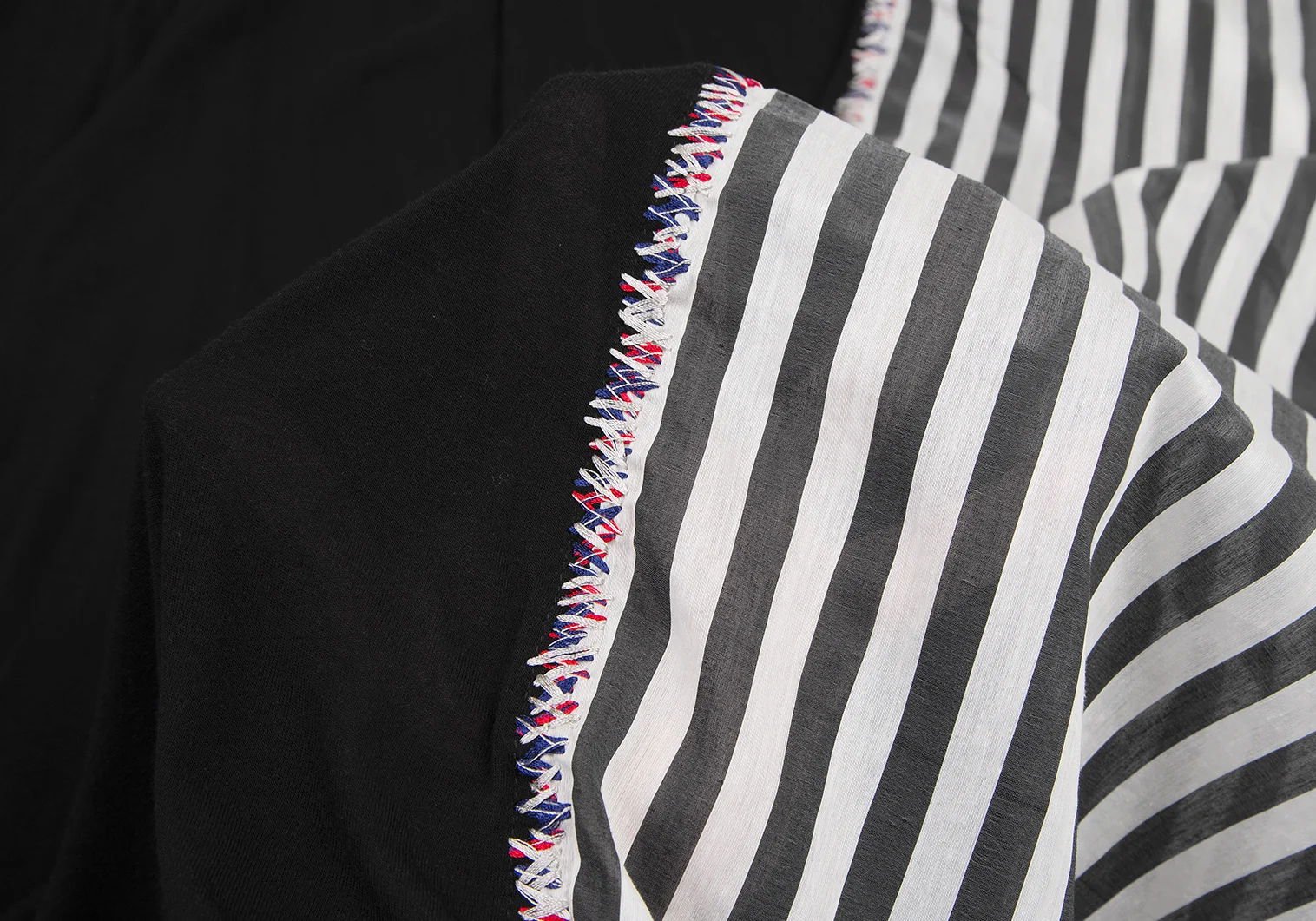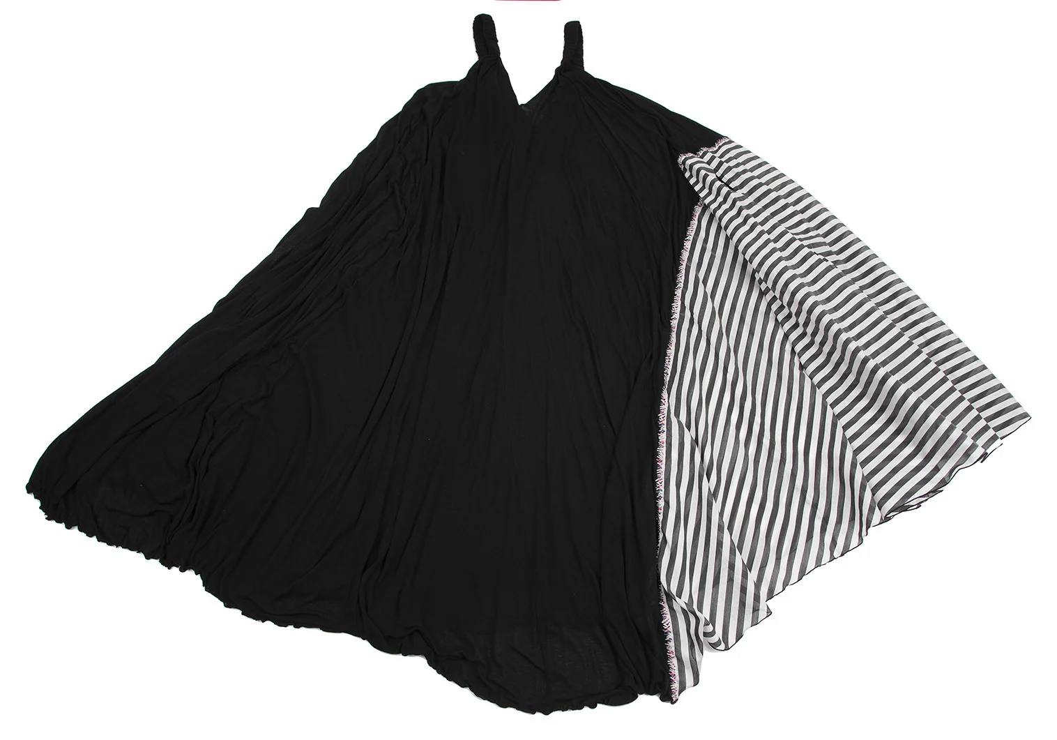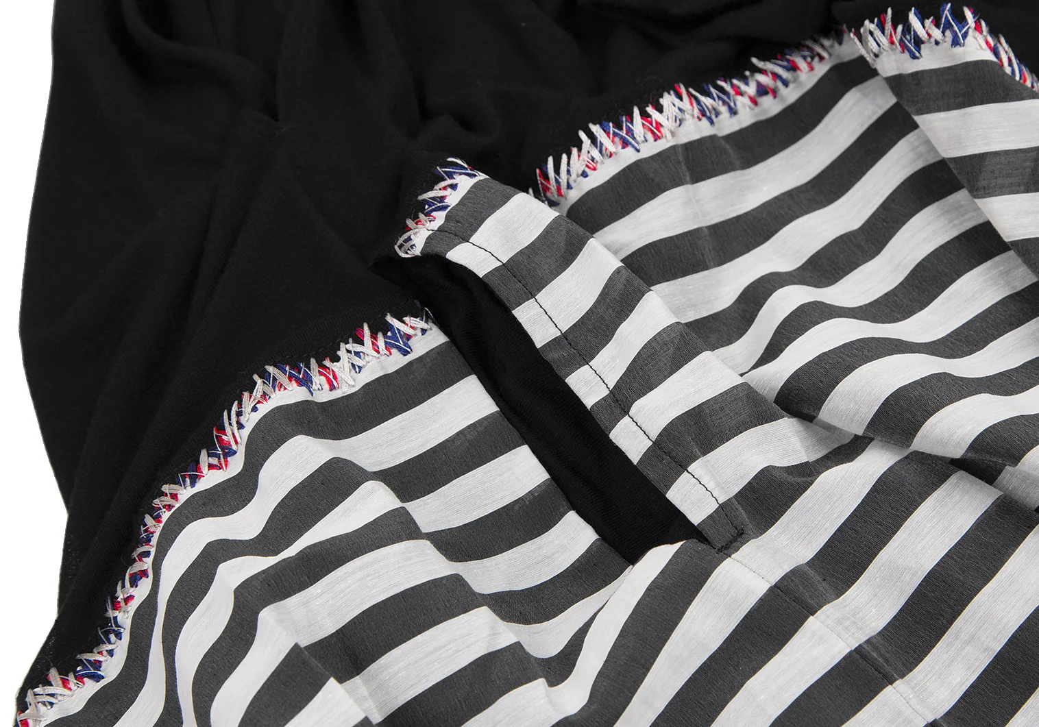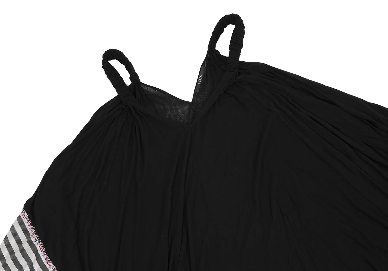 リミフゥLIMI feu 異素材ストライプ切替ギャザーショルダーノースリーブワンピース 黒S