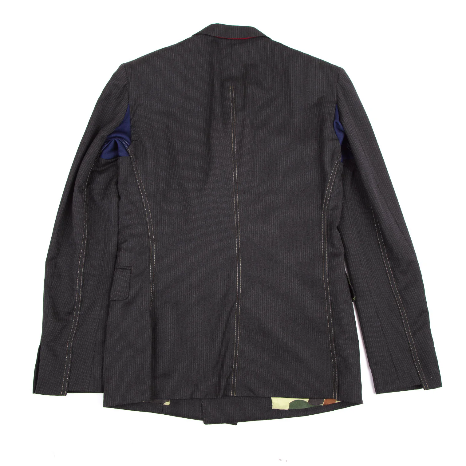 ジュンヤワタナベマン コムデギャルソンJUNYA WATANABE MAN COMME des GARCONSカモフラ裏地ストライプウールダブルジャケット チャコールブラックM