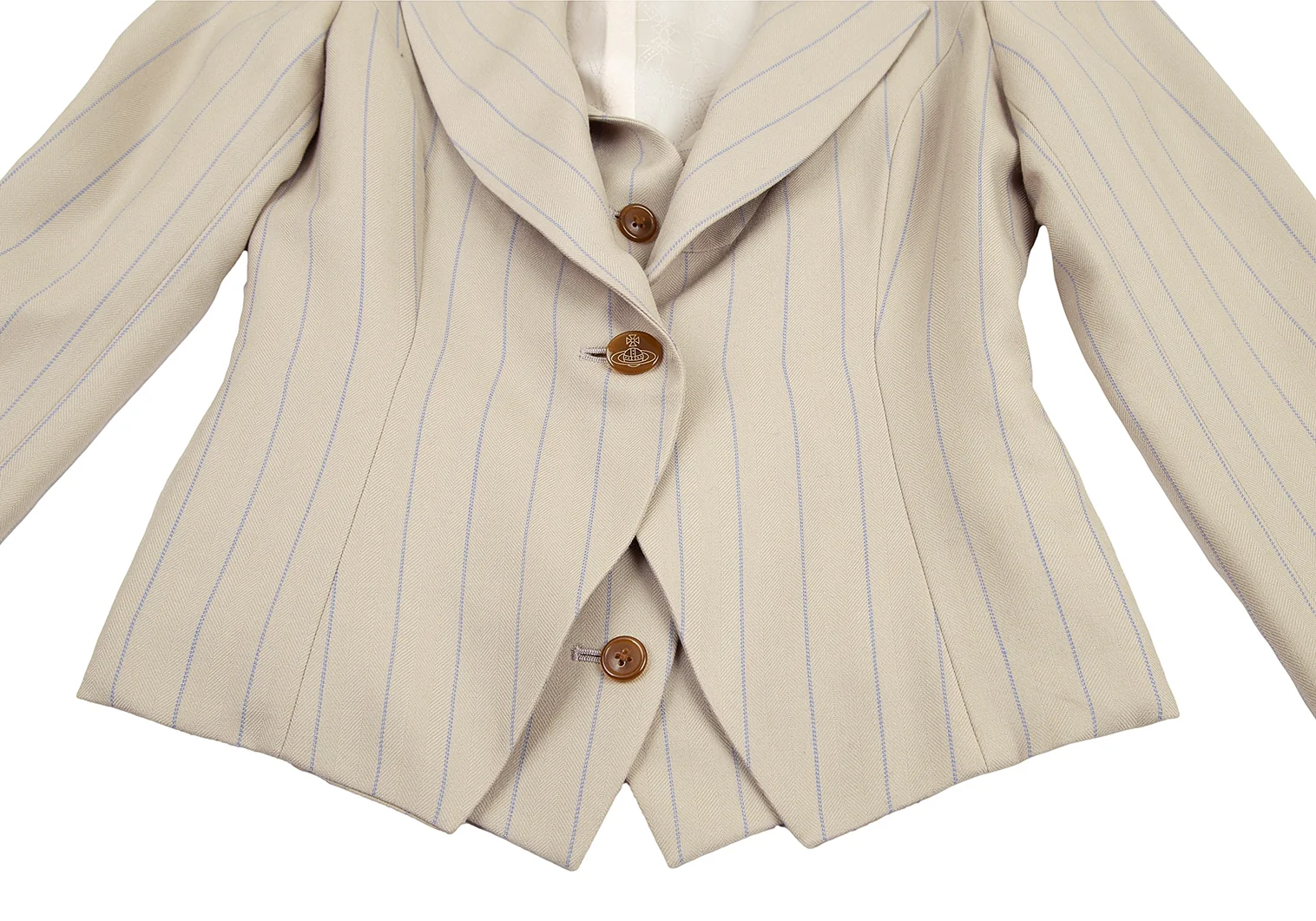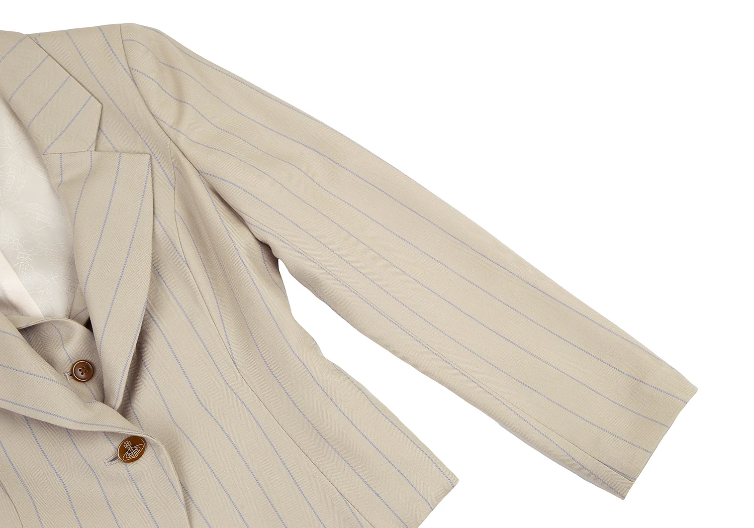 ヴィヴィアンウエストウッド レッドレーベルVivienne Westwood Red Label レイヤードデザインストライプウールスペンサージャケット ベージュ1