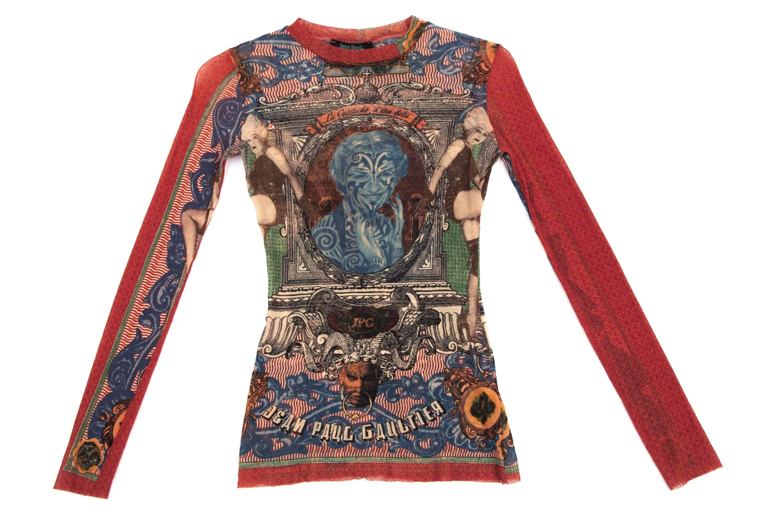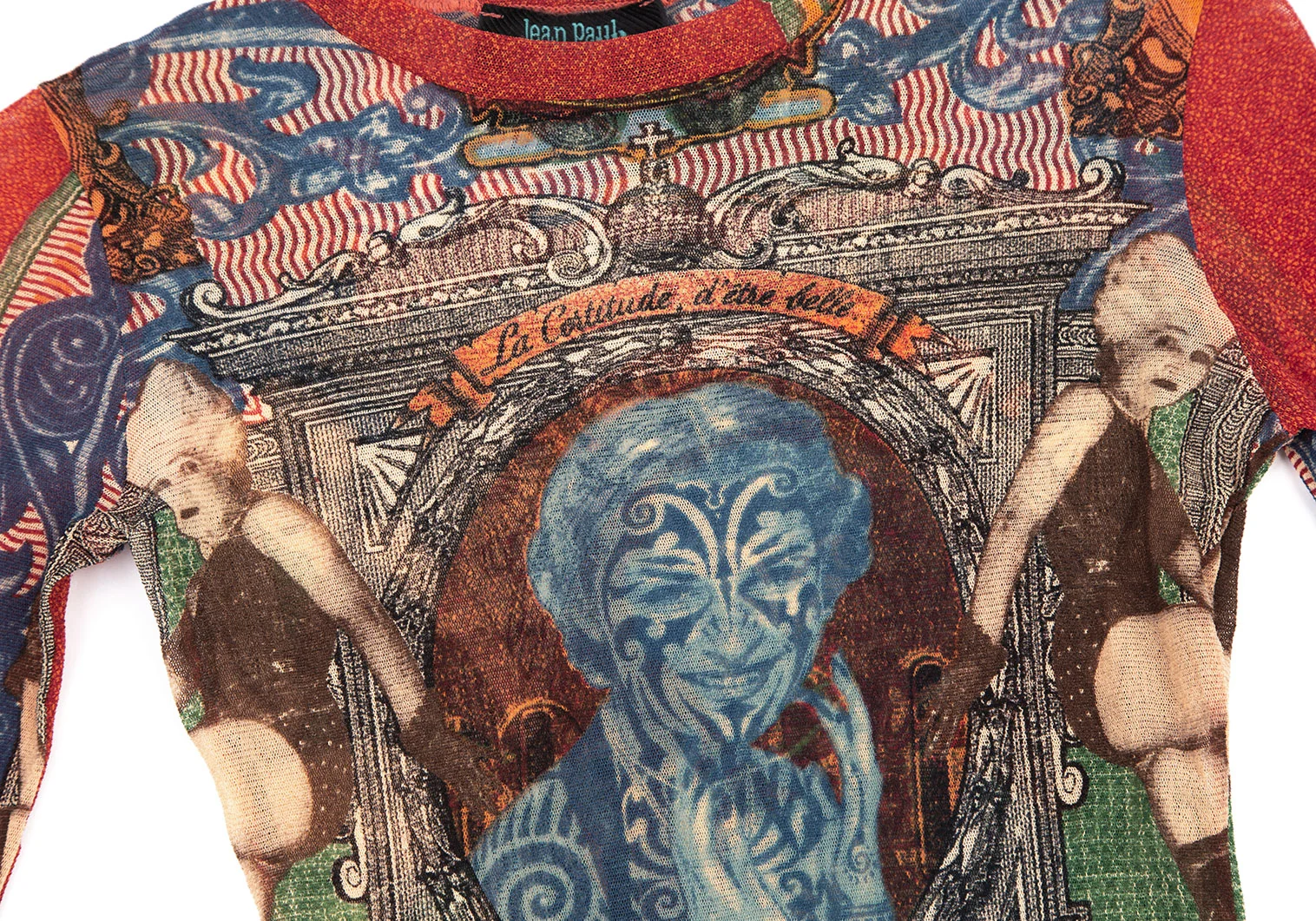 ジャンポールゴルチエ マイユJean Paul GAULTIER MAILLE タトゥーガールプリントパワーネットカットソー マルチ42