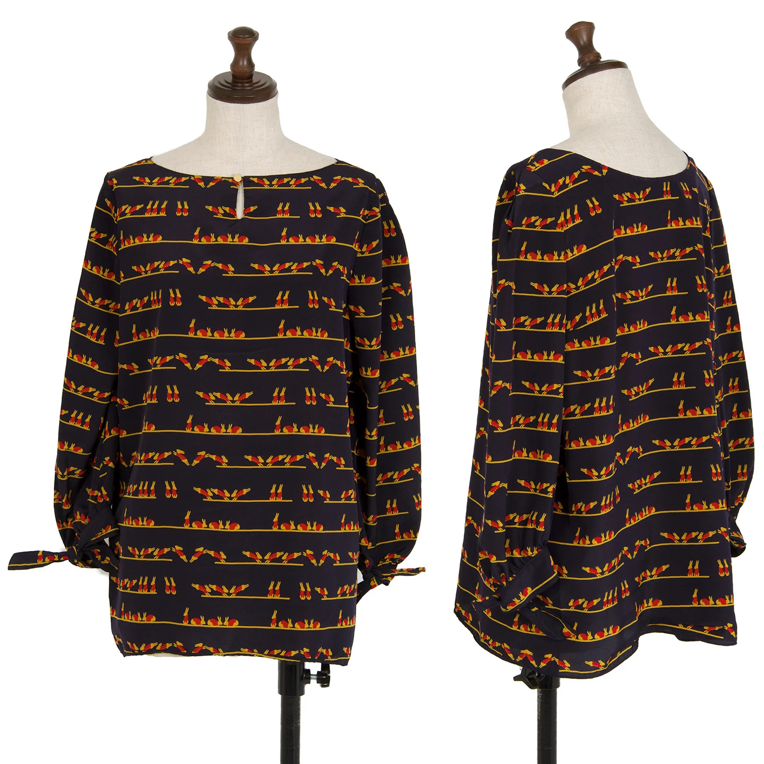 マッキントッシュ フィロソフィーMACKINTOSH PHILOSOPHY ラビットプリント七分袖ブラウス 紺38