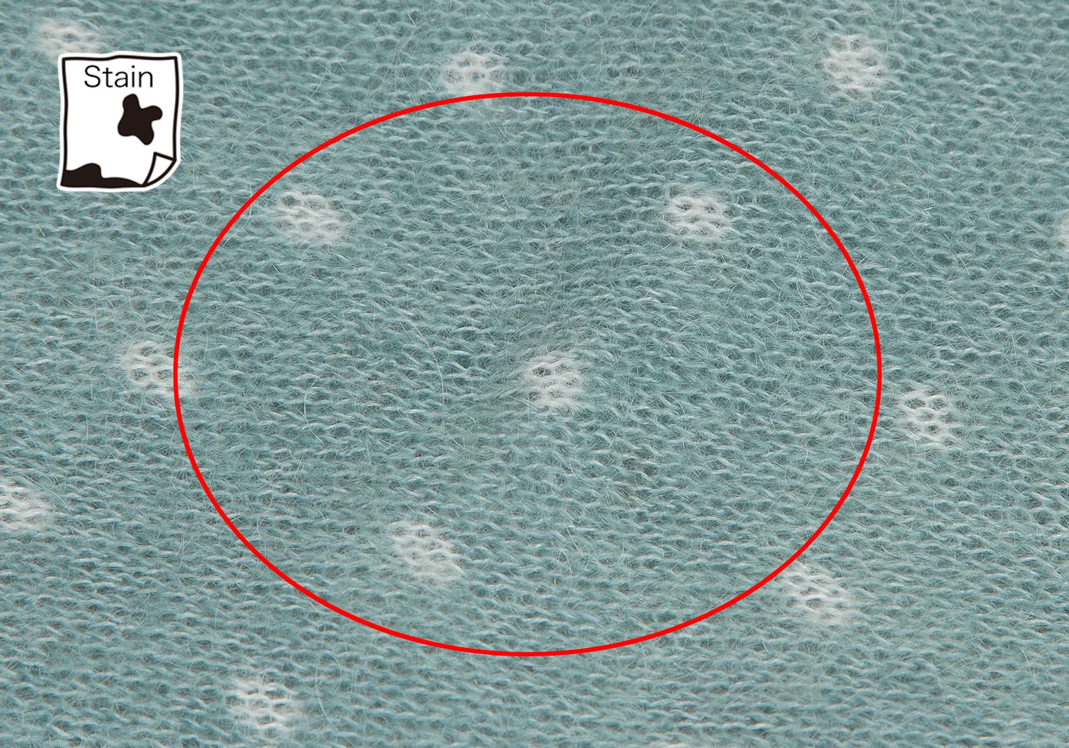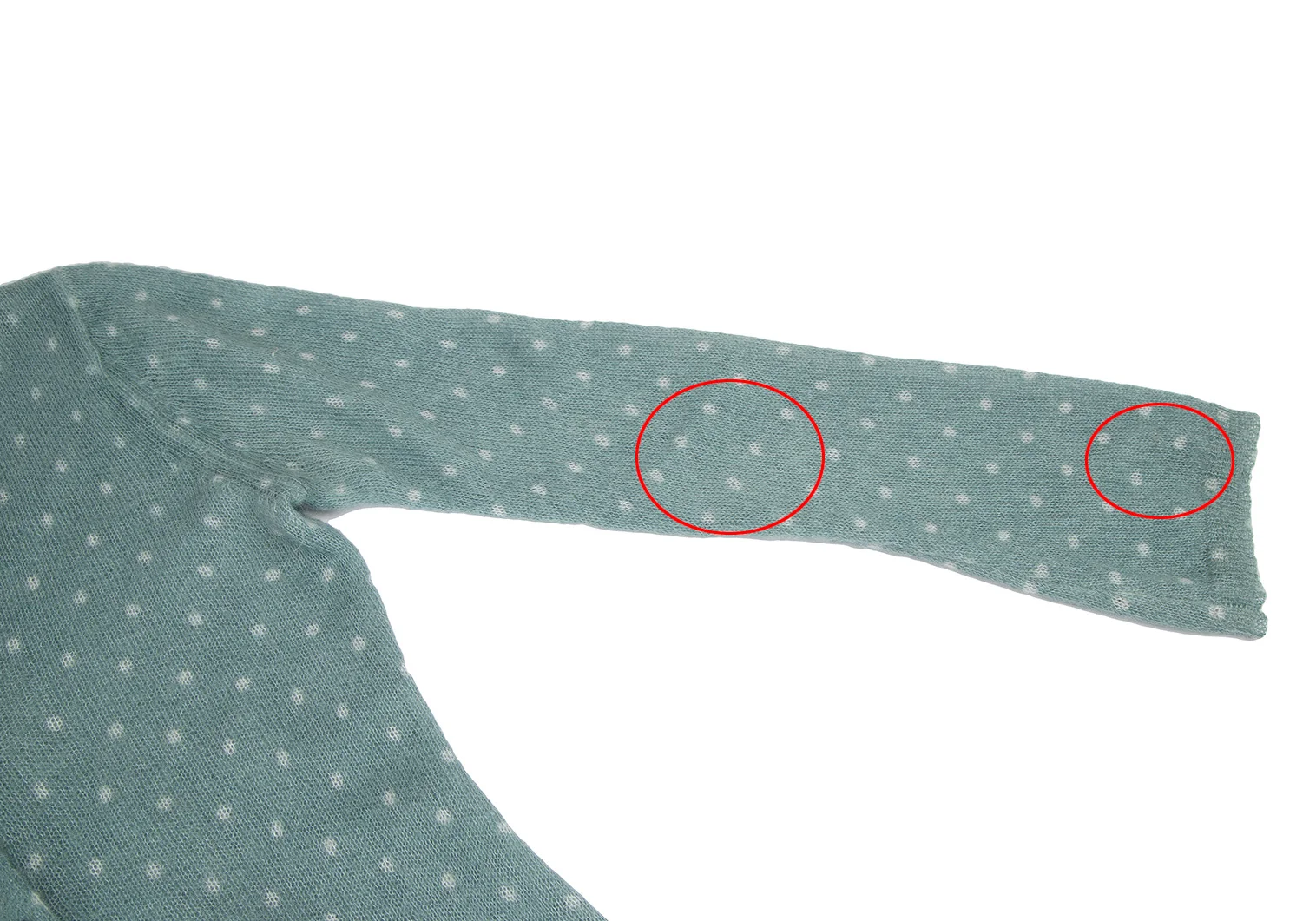 透け感のある生地です。左袖に薄シミがあります(写真参照)。その他目立ったシミ、汚れ、ほつれ等なくいい状態です。クリーニング済み
