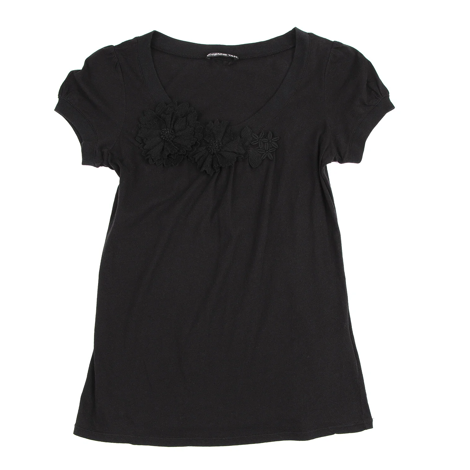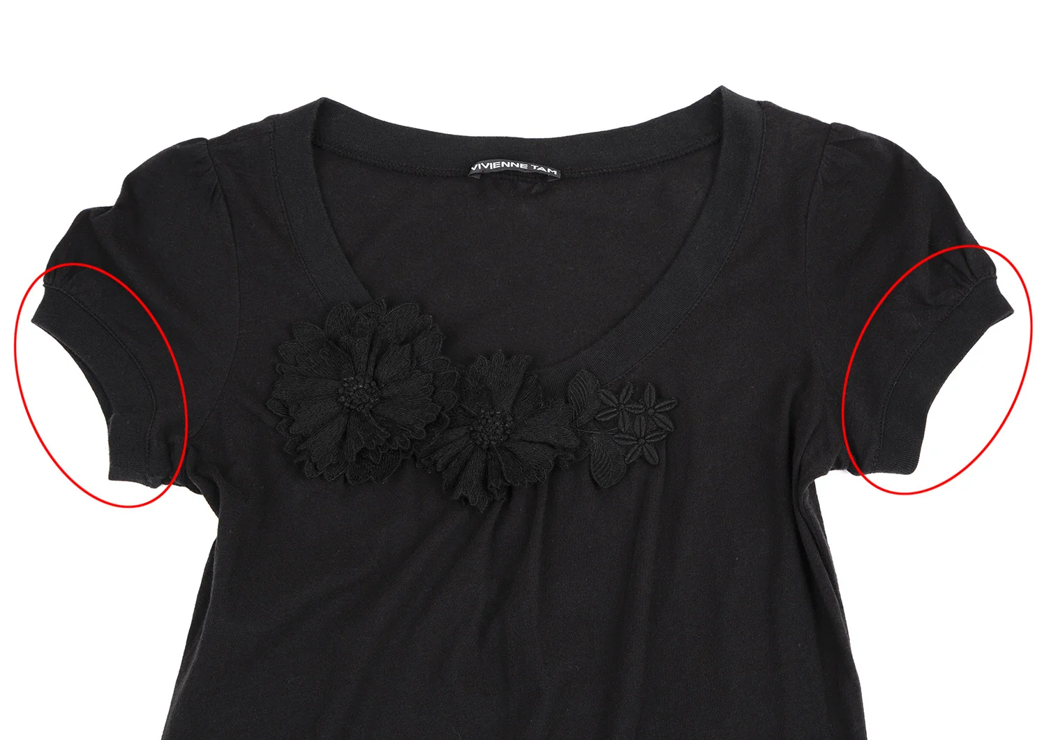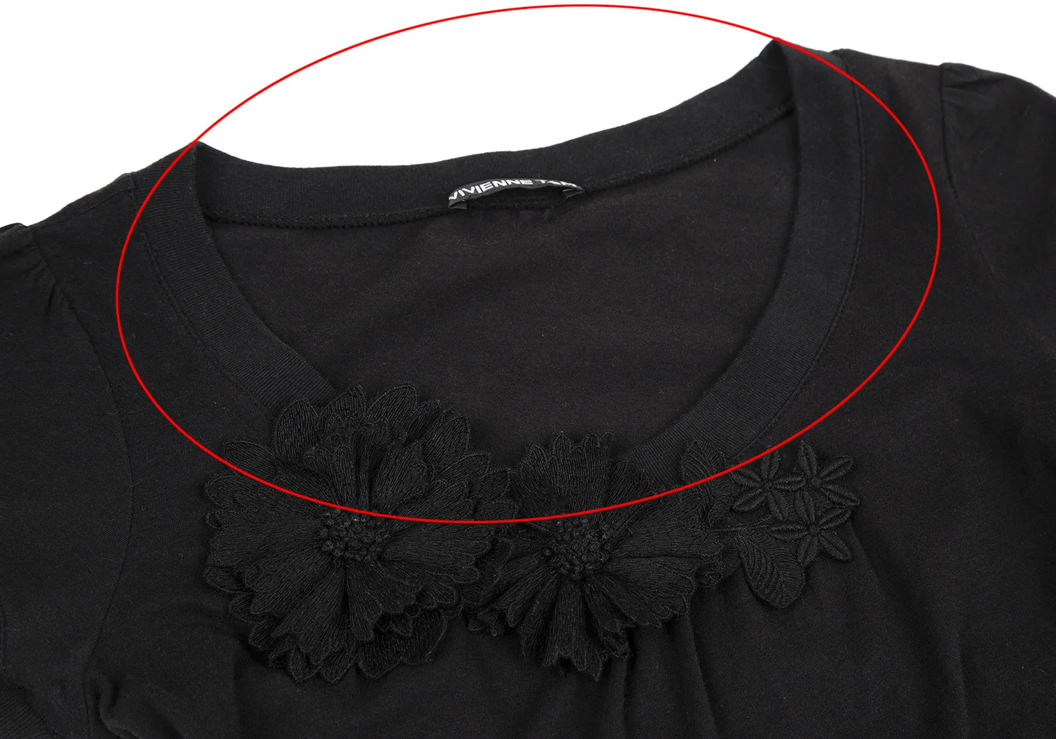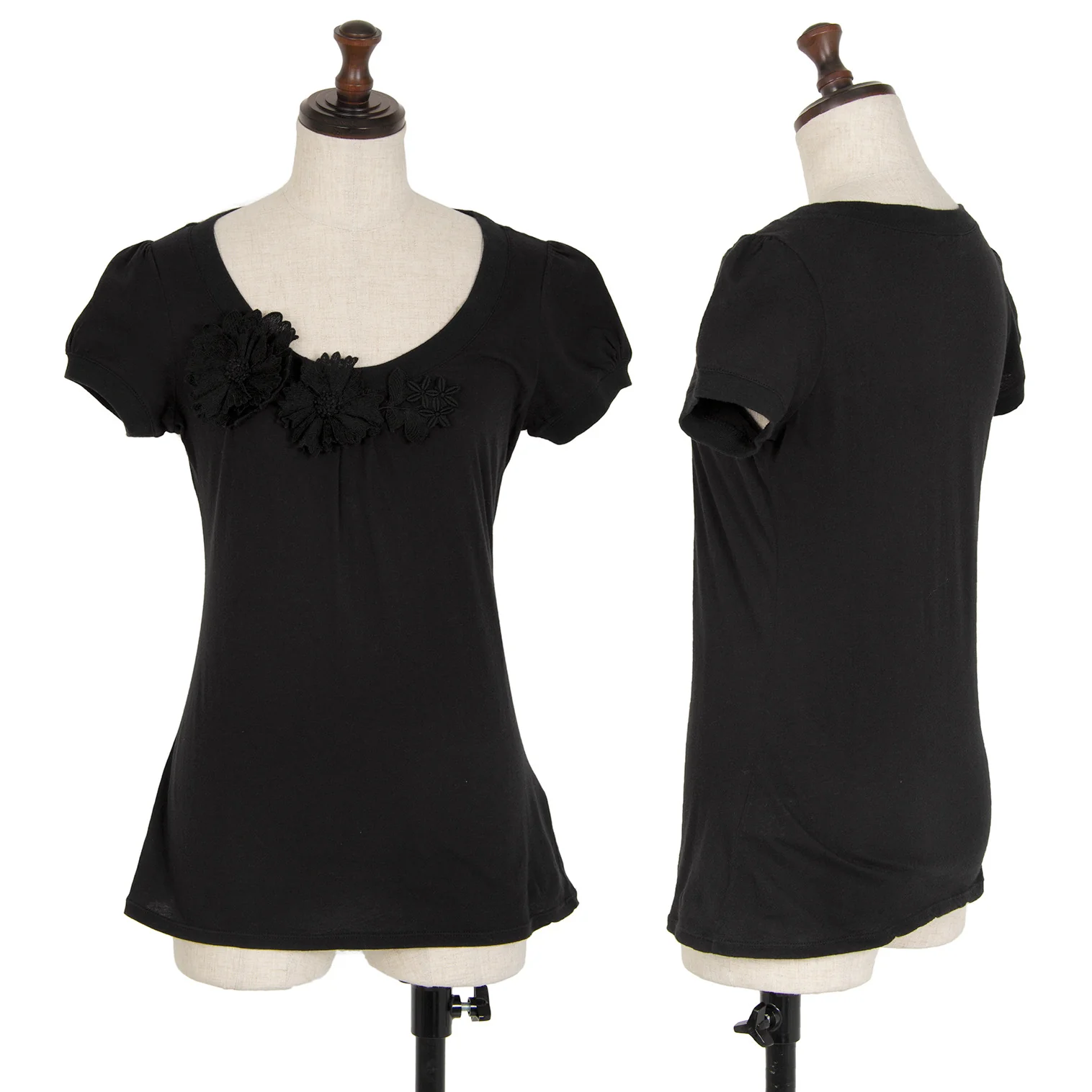 ヴィヴィアンタムVIVIENNETAM フラワーコサージュ装飾Tシャツ 黒0