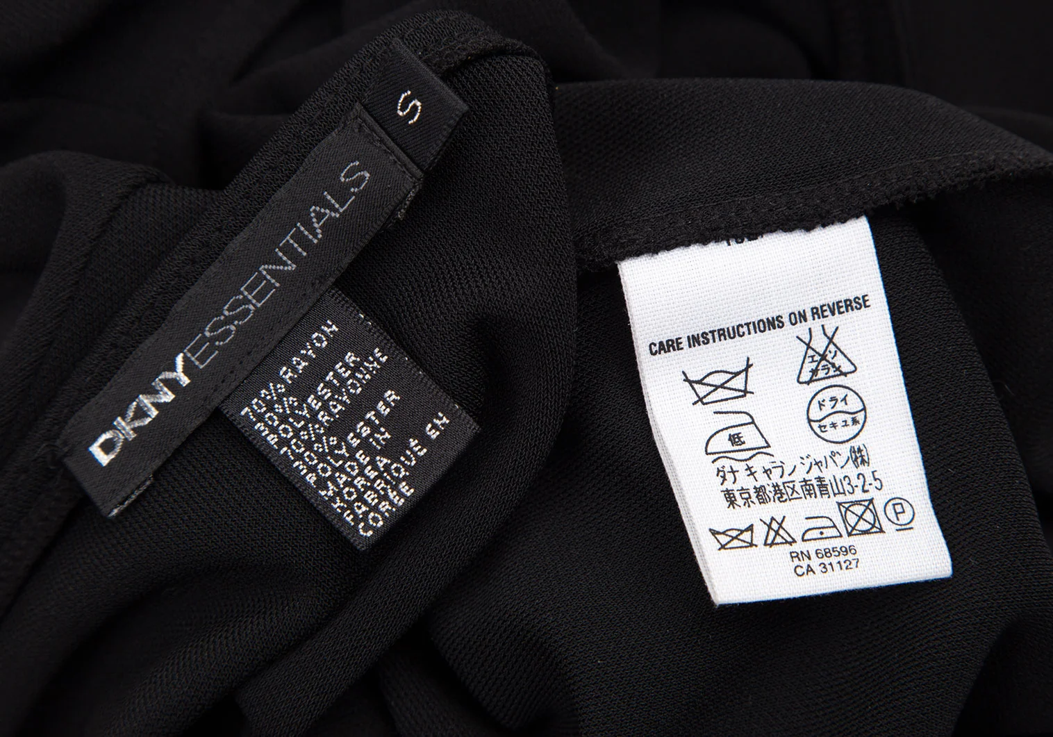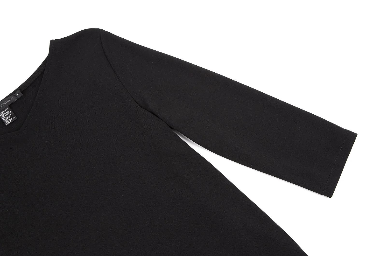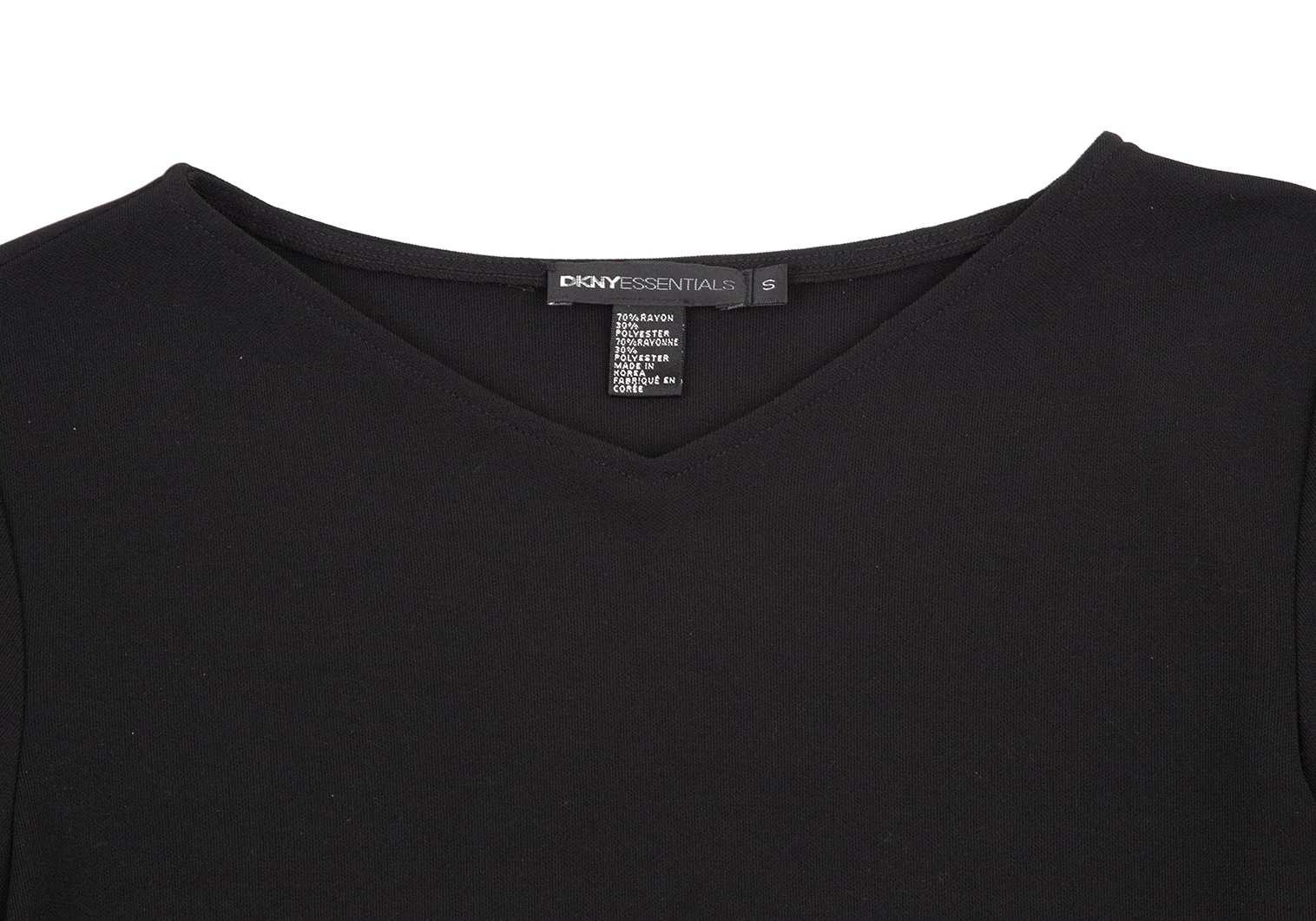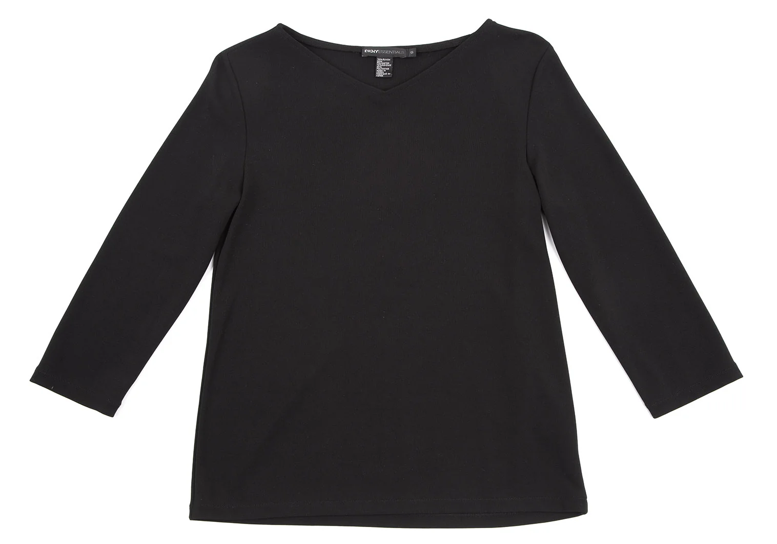 ダナキャランDKNY EENTIAL レーヨンポリ7分袖Vネックカットソー 黒S