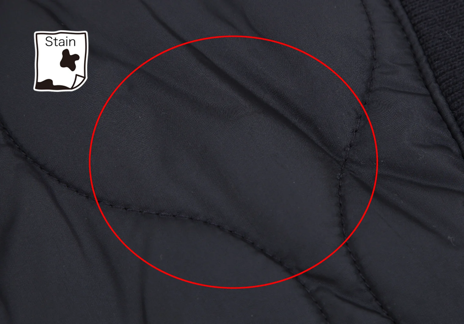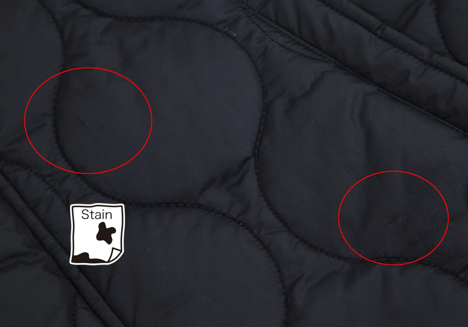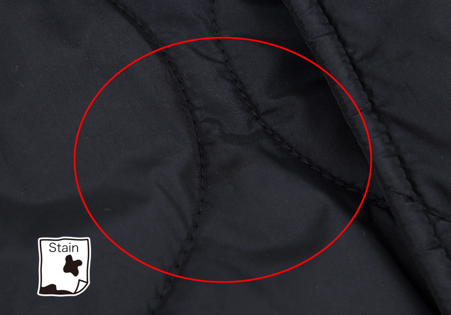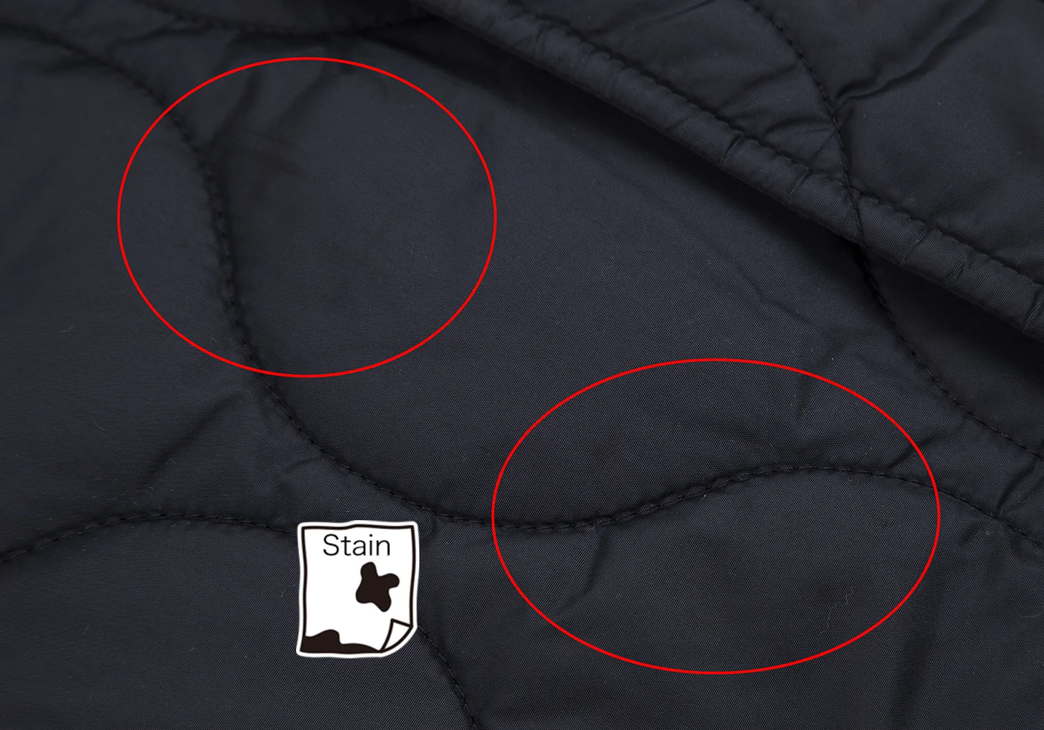 前身頃にシミ、首元にスレがあります(写真参照)。その他目立ったシミ、汚れ、ほつれ等なくいい状態です。クリーニング済み