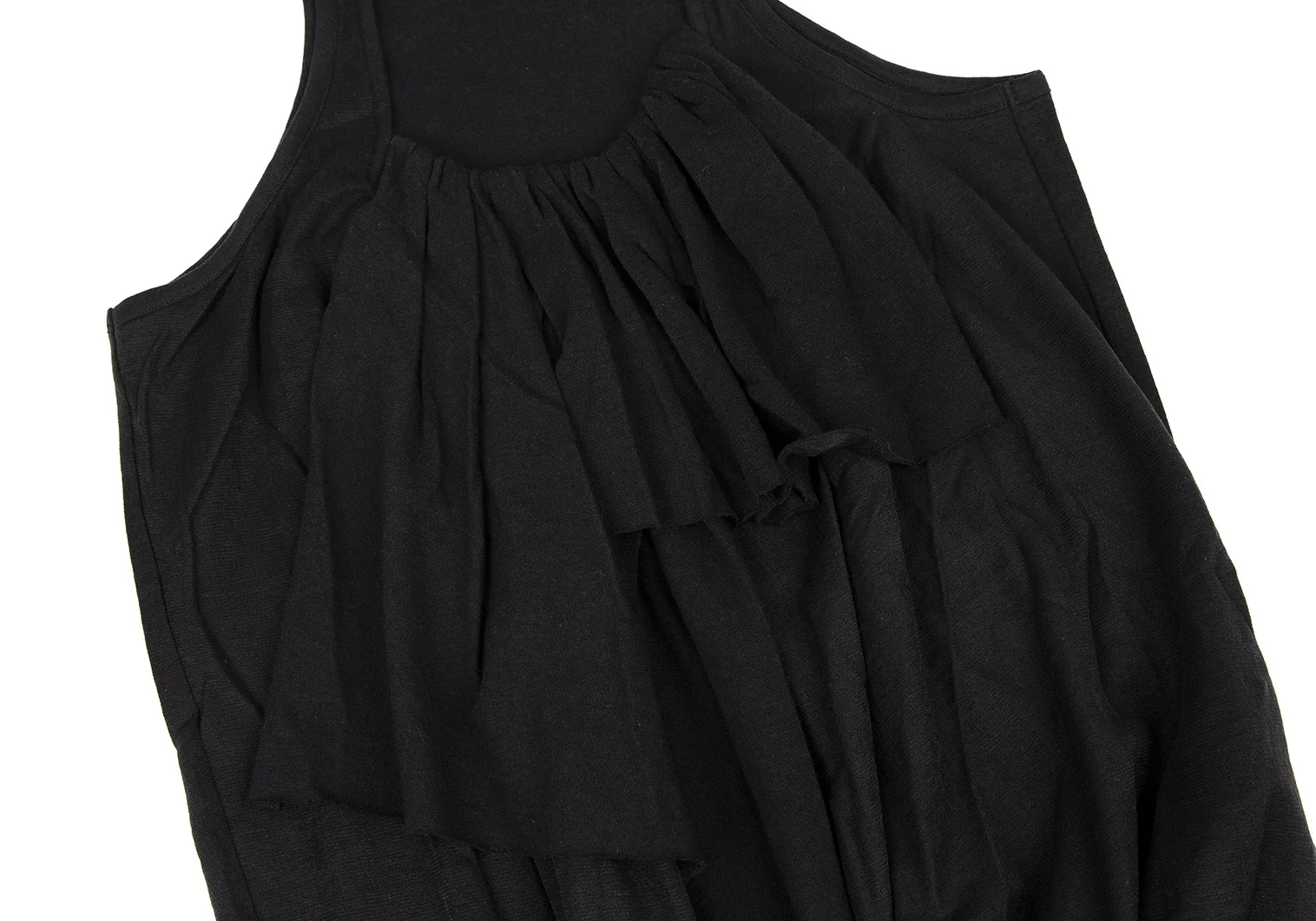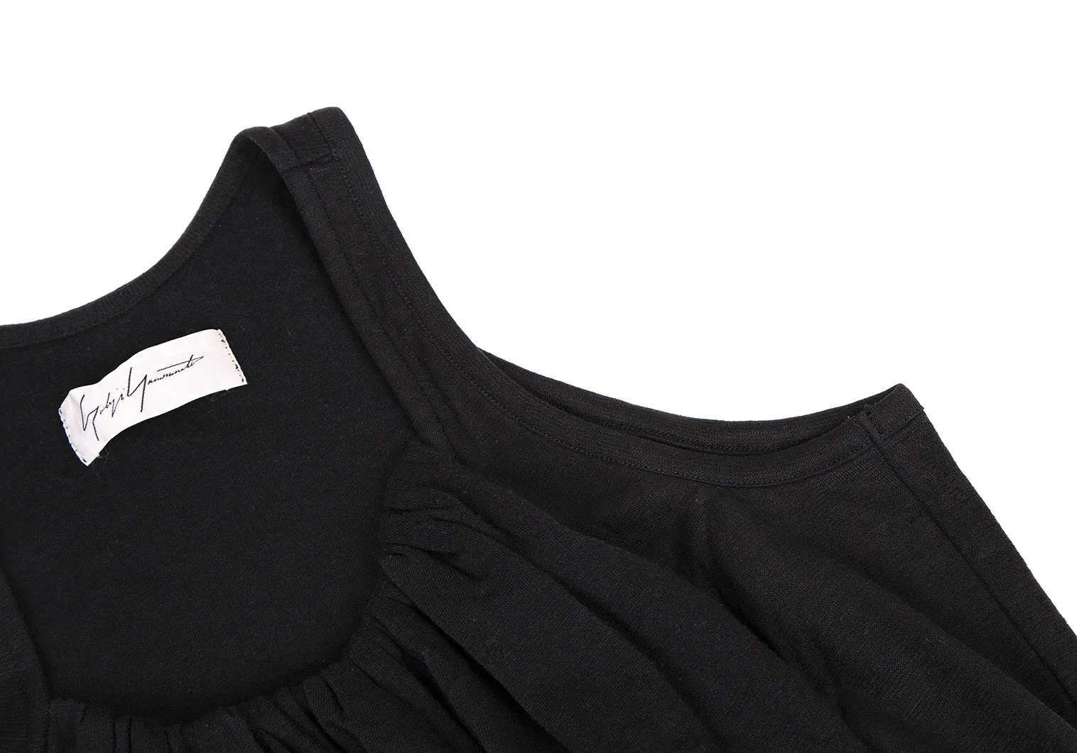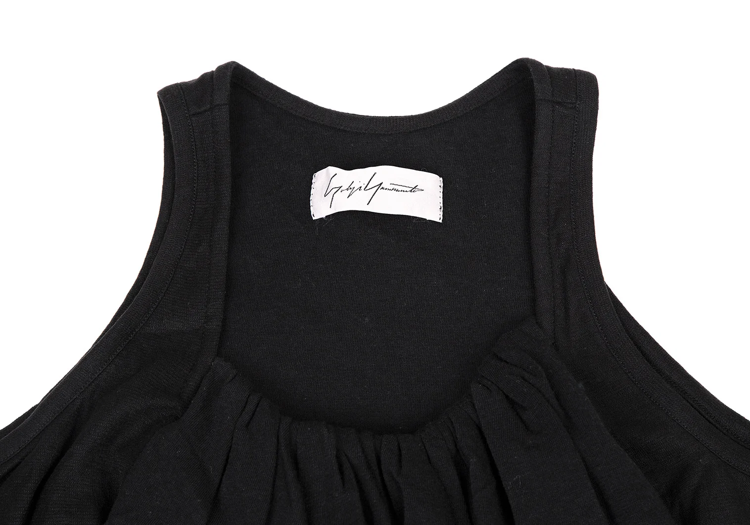 ヨウジヤマモト ファムYohji Yamamoto FEMME コットンナイロンフリルデザイン裾アシンメトリータンクトップ 黒2