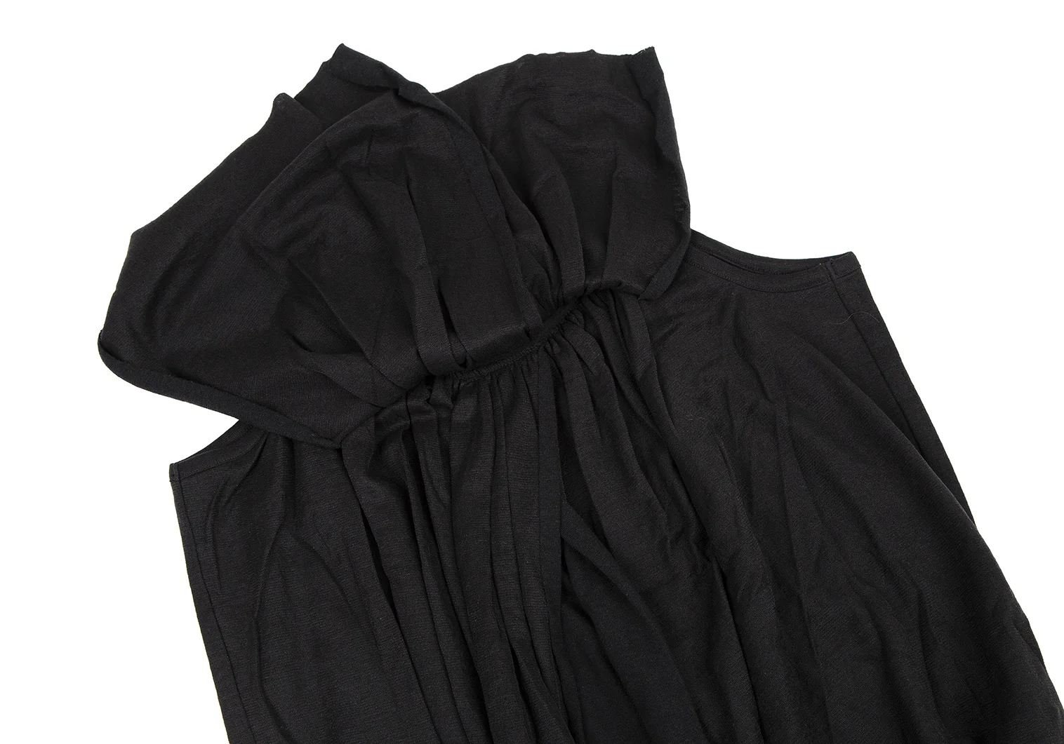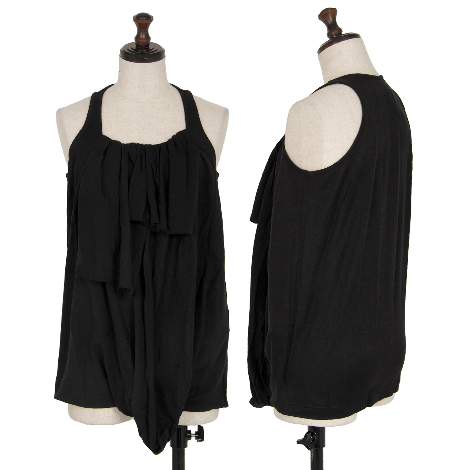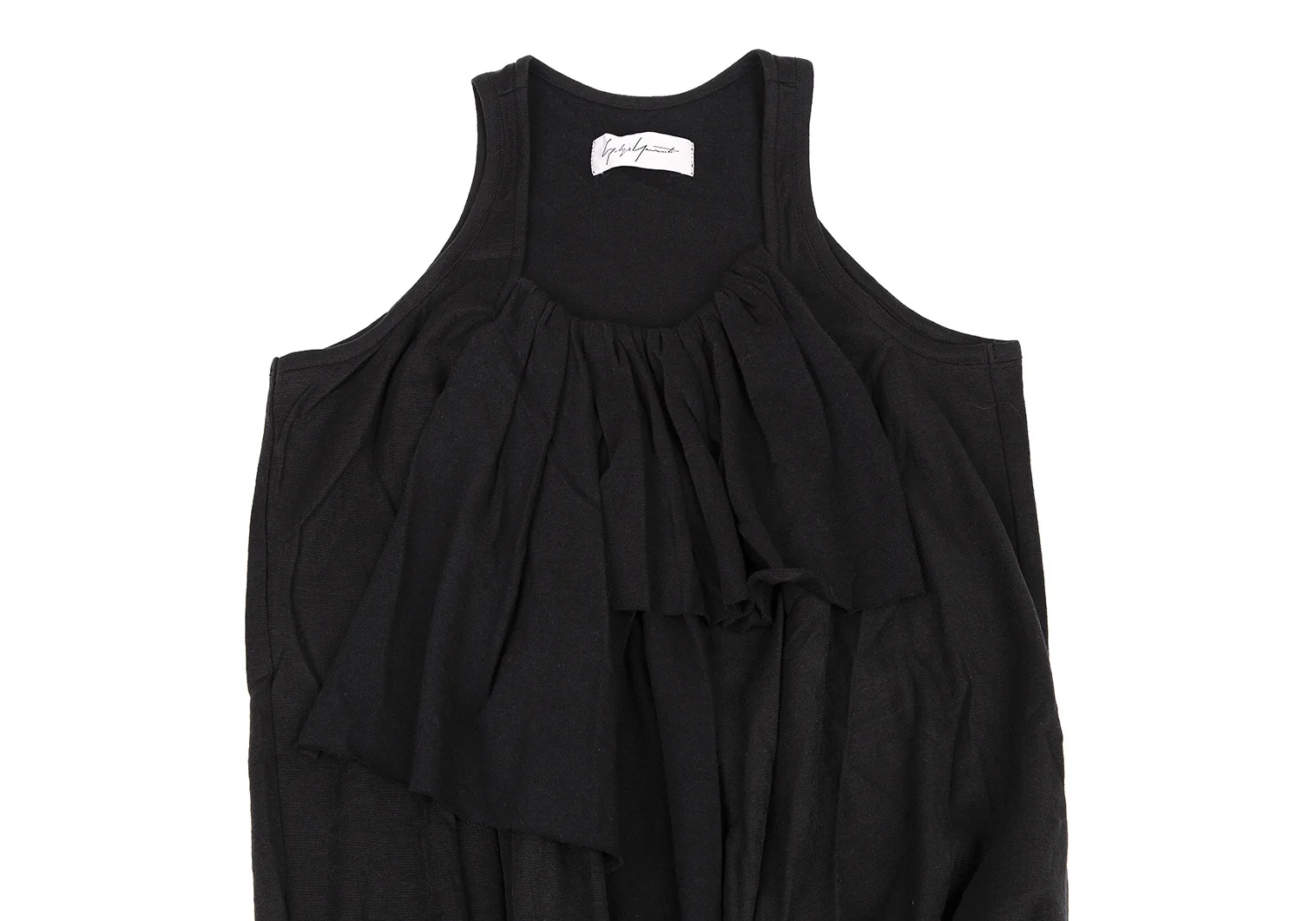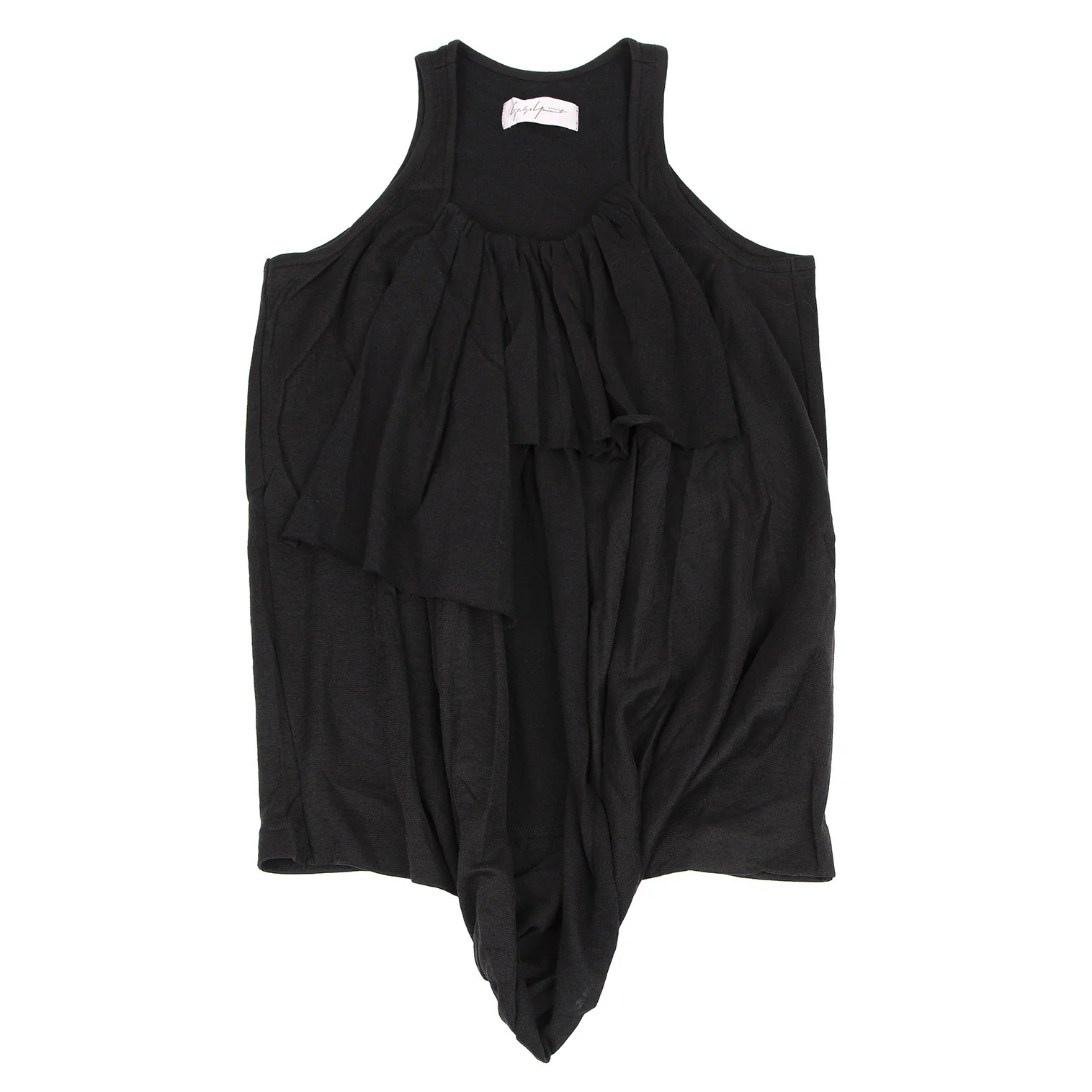 ヨウジヤマモト ファムYohji Yamamoto FEMME コットンナイロンフリルデザイン裾アシンメトリータンクトップ 黒2