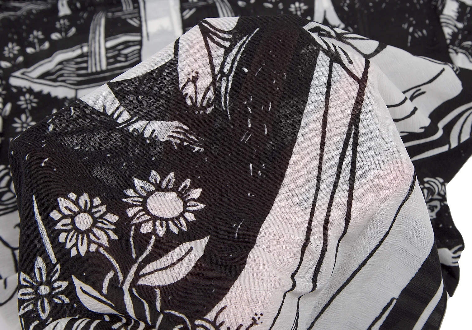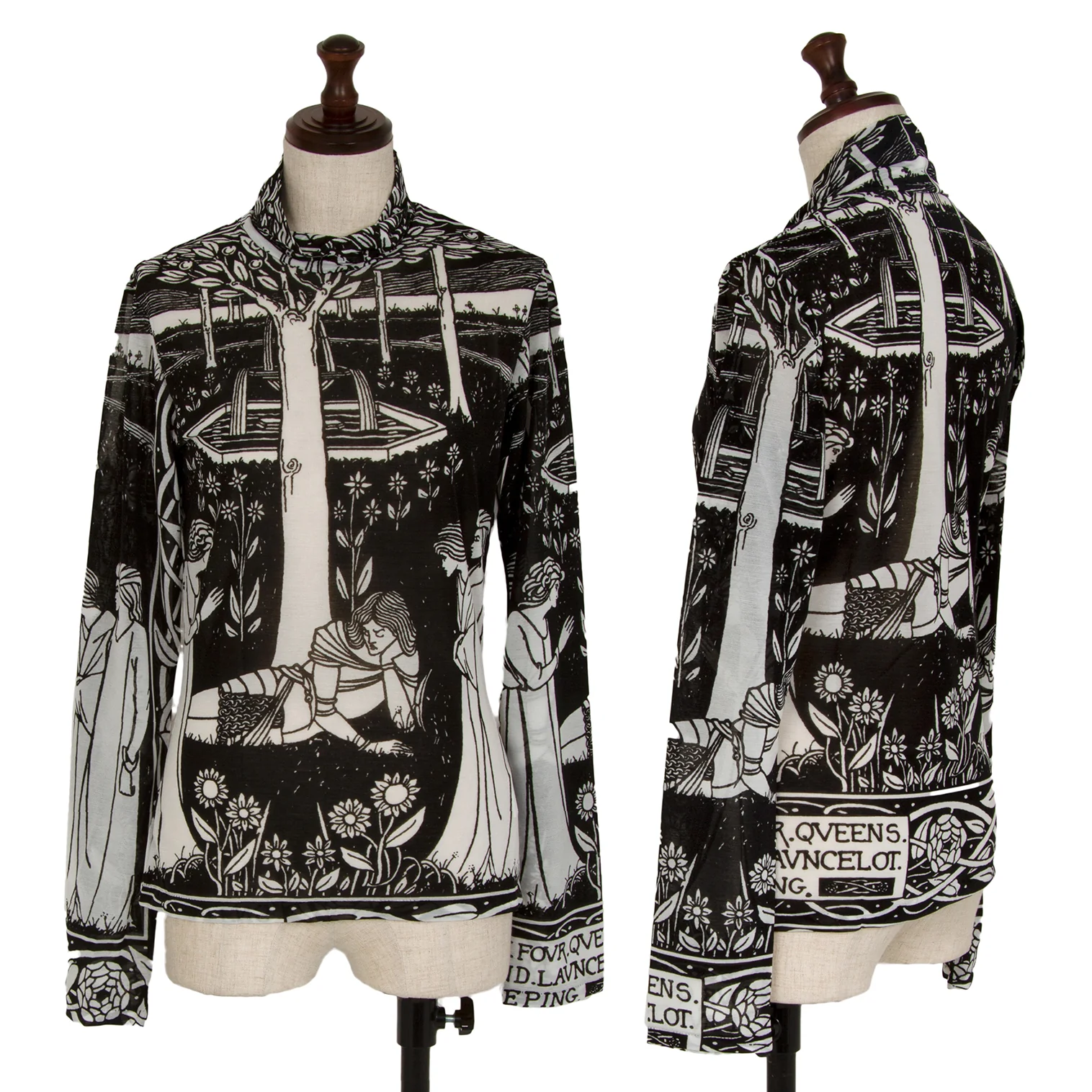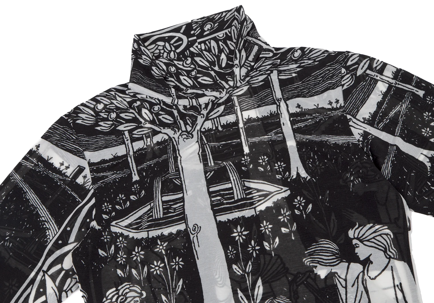 ヨウジヤマモト ファムYohji Yamamoto FEMME モノクログラフィックプリントシースルーハイネックカットソー 黒白3