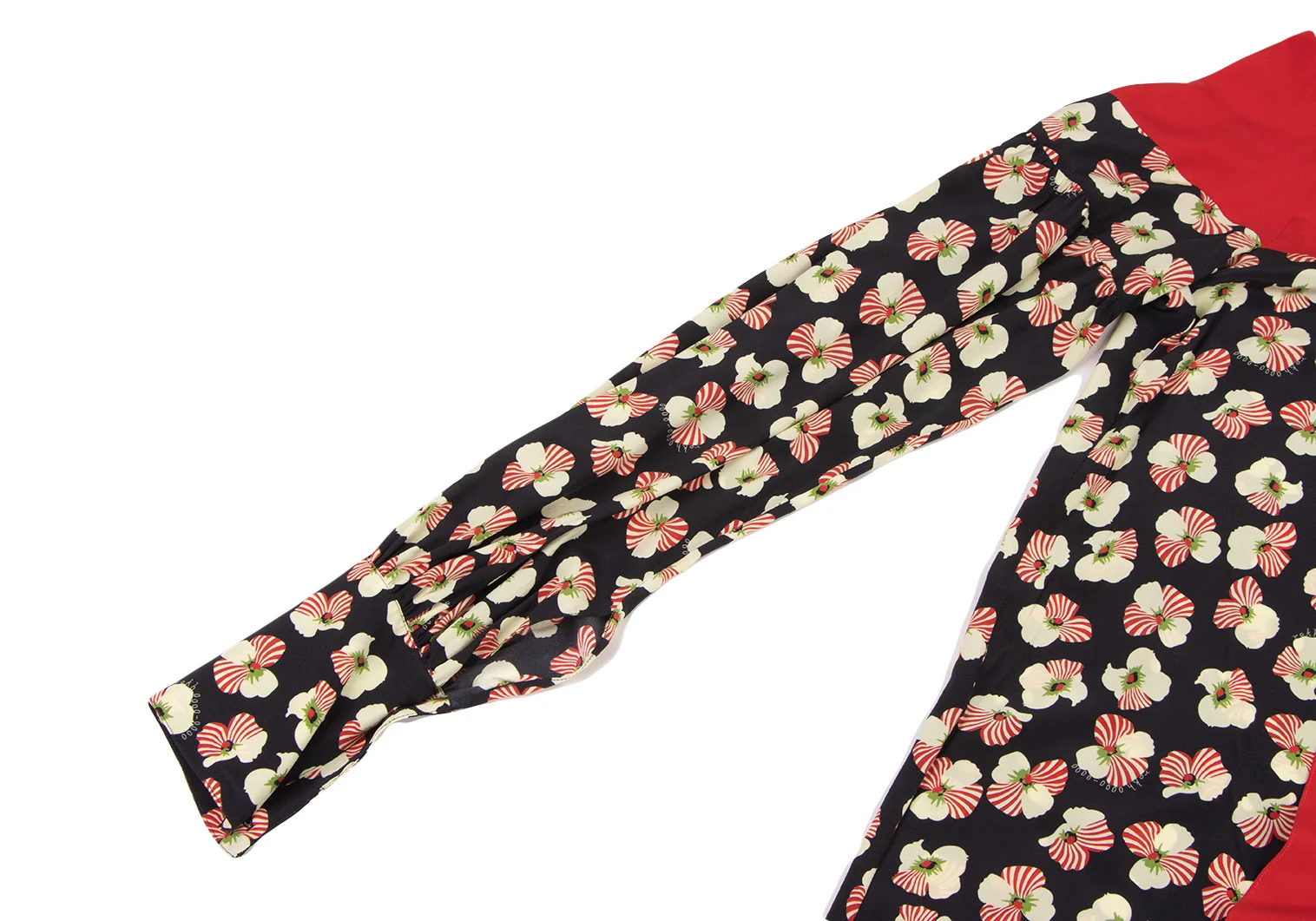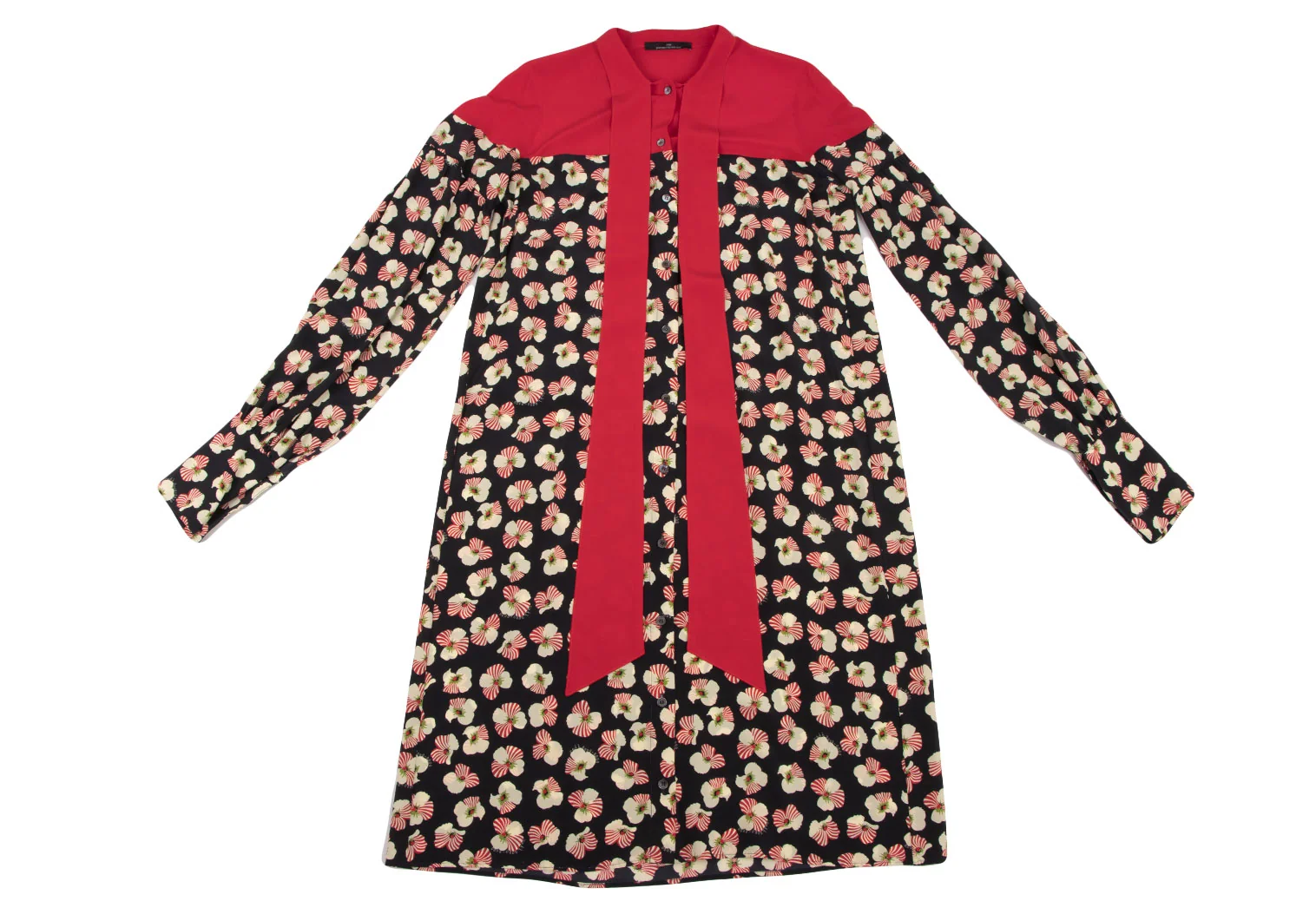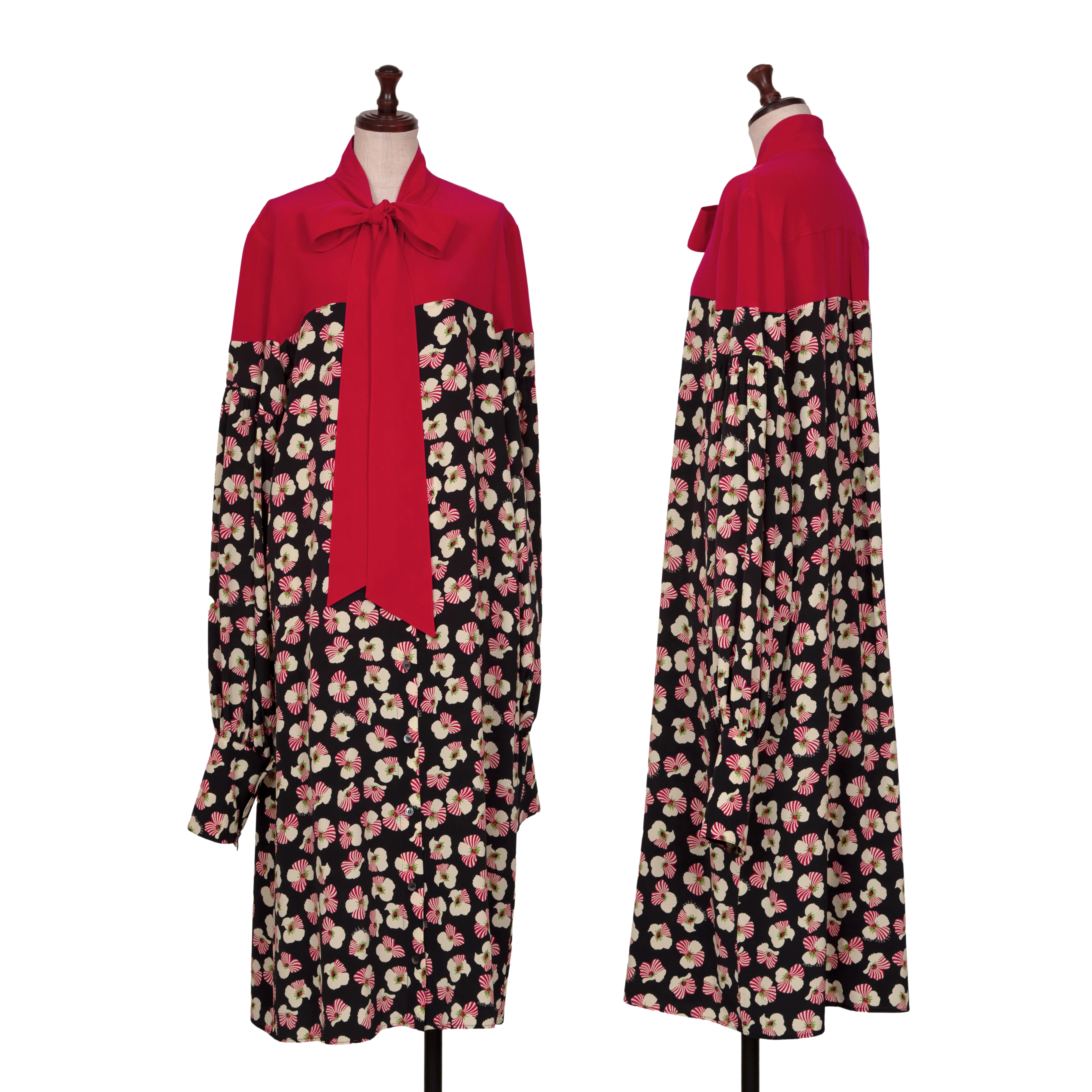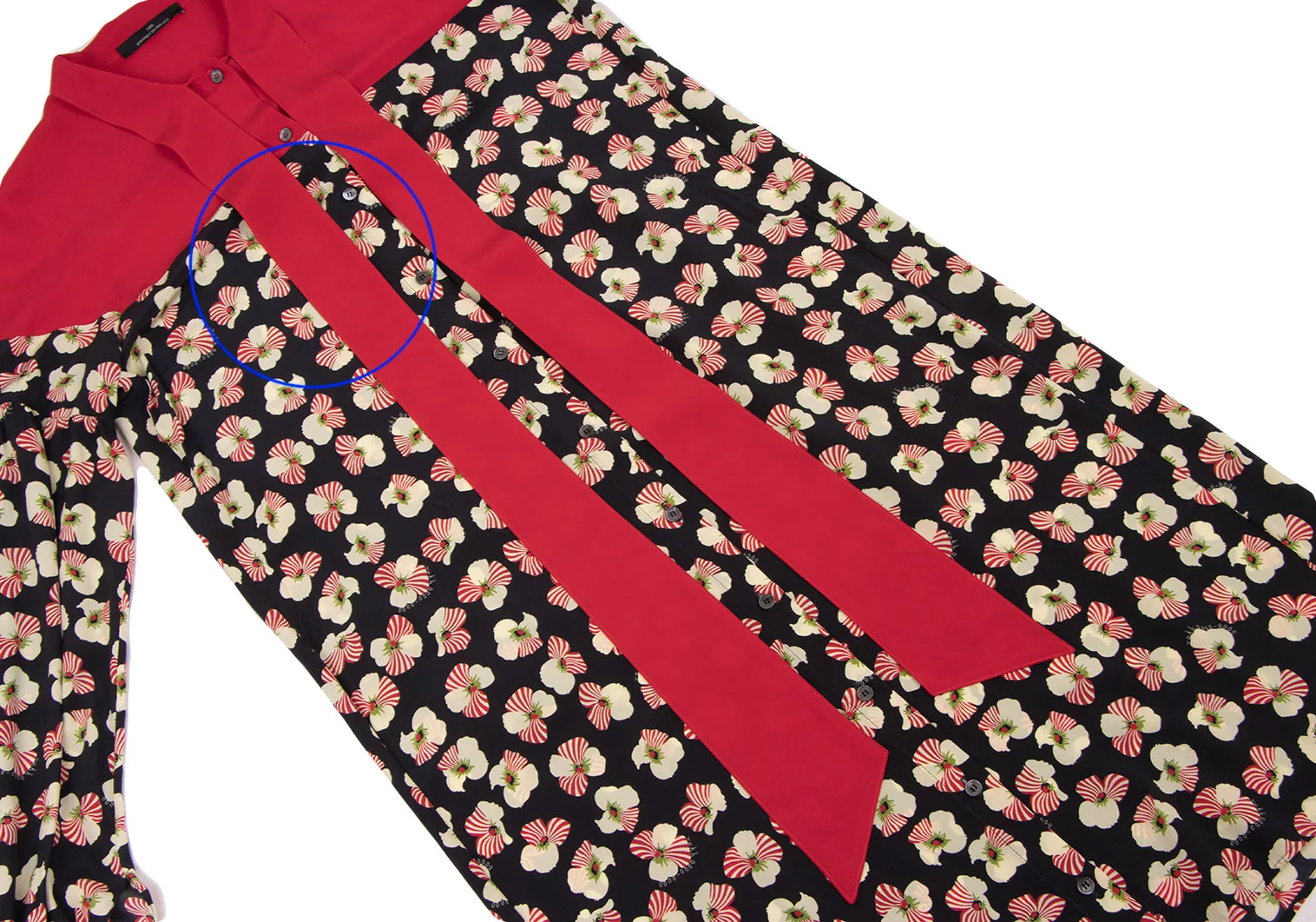 ロクrokh フローラルプリント切替リボンカラーシャツワンピース 赤紺M位