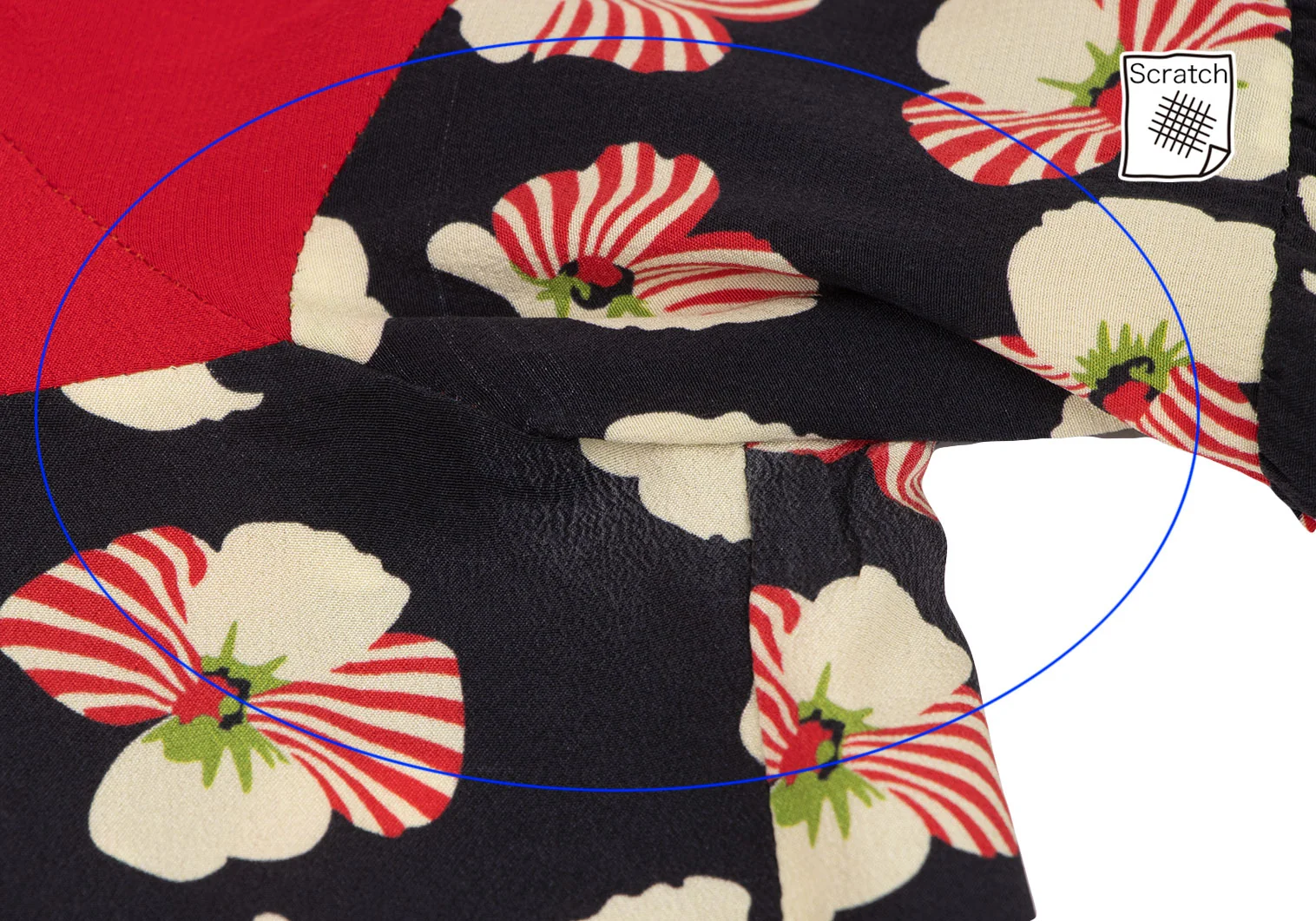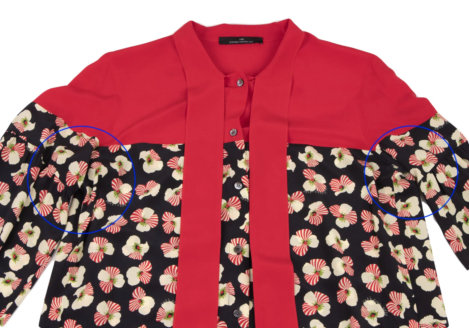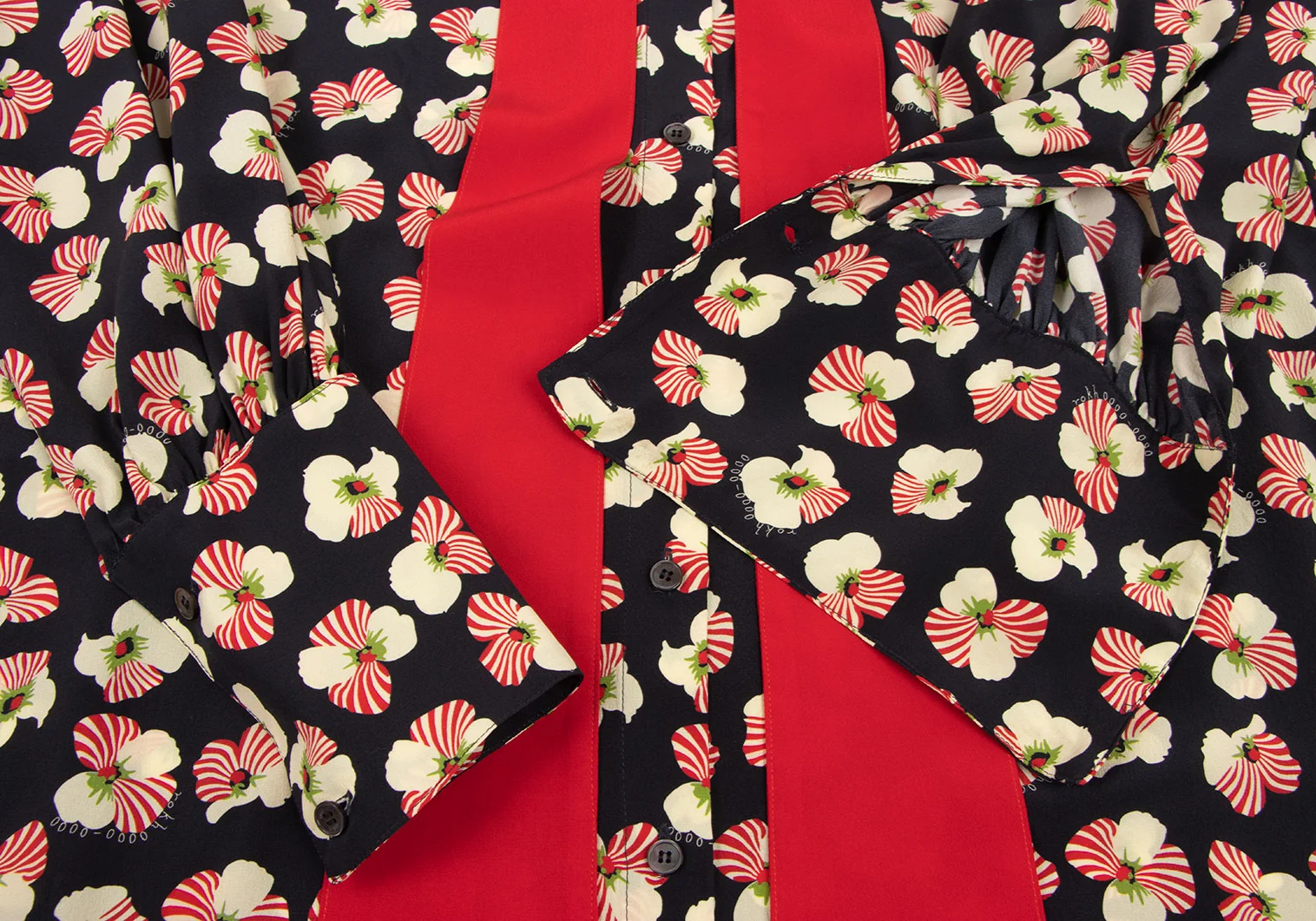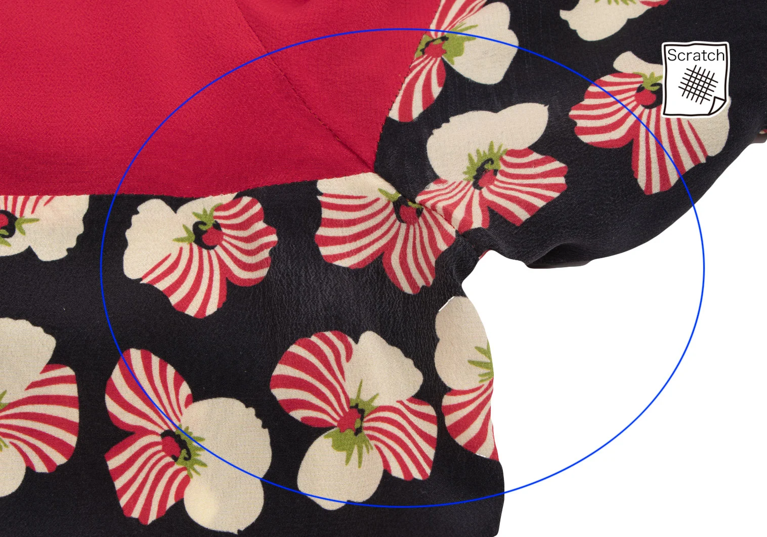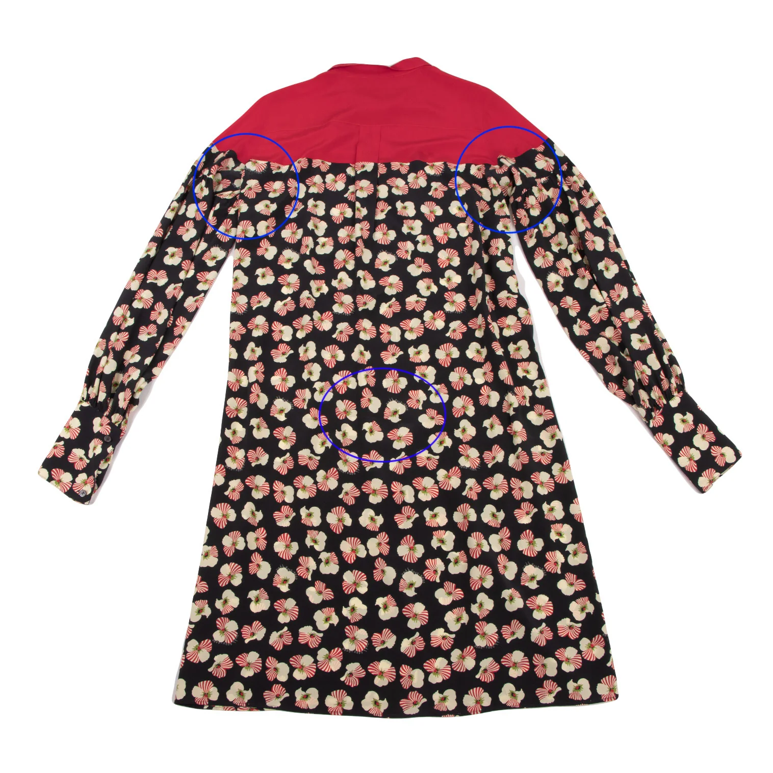 ロクrokh フローラルプリント切替リボンカラーシャツワンピース 赤紺M位