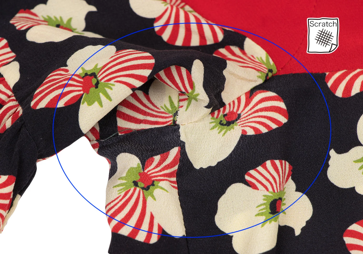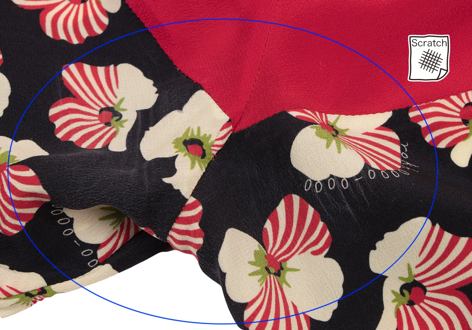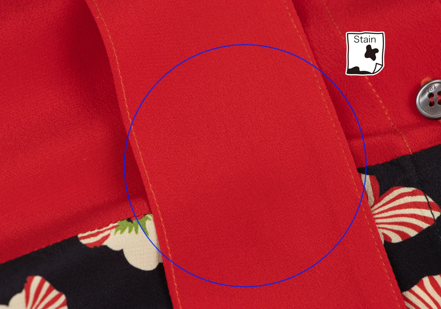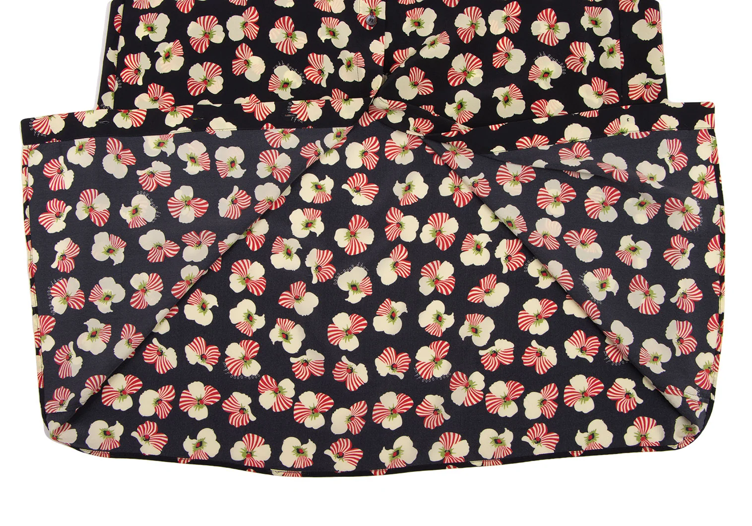 ロクrokh フローラルプリント切替リボンカラーシャツワンピース 赤紺M位