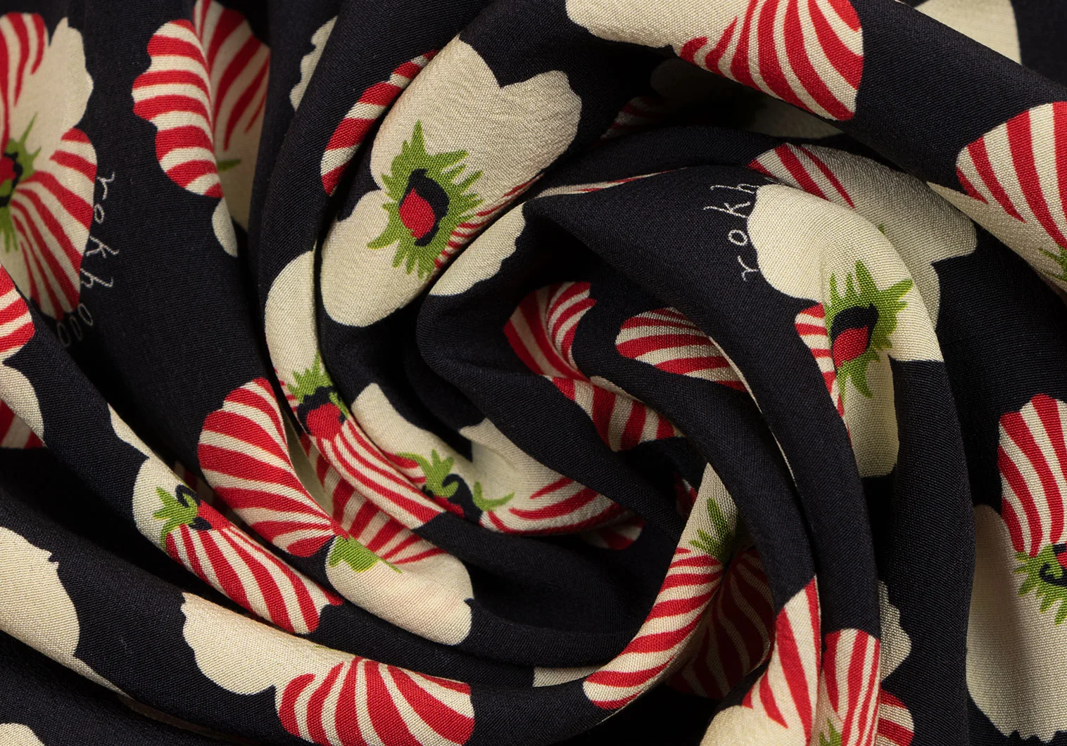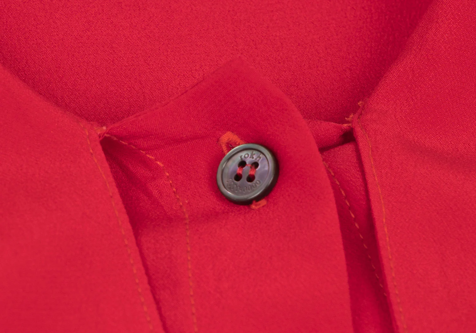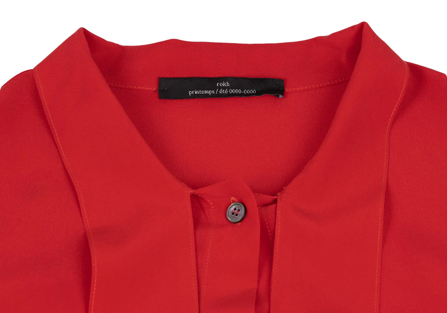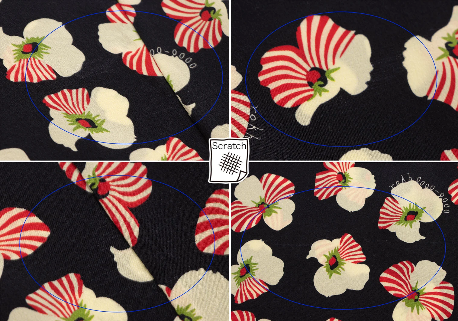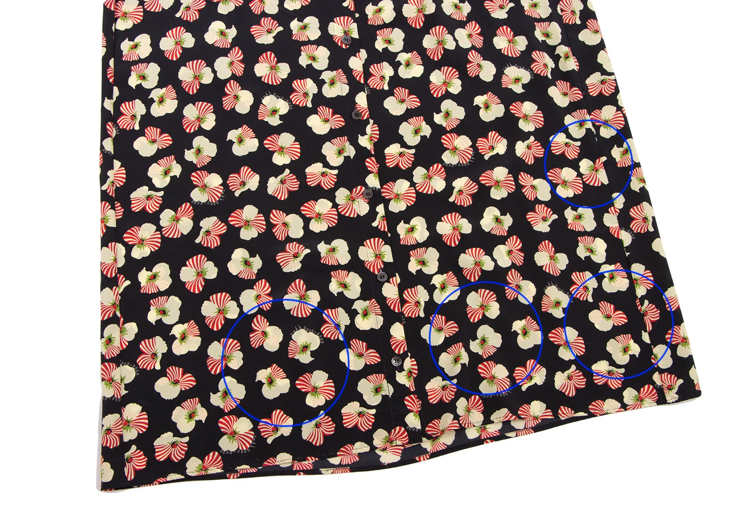 ロクrokh フローラルプリント切替リボンカラーシャツワンピース 赤紺M位