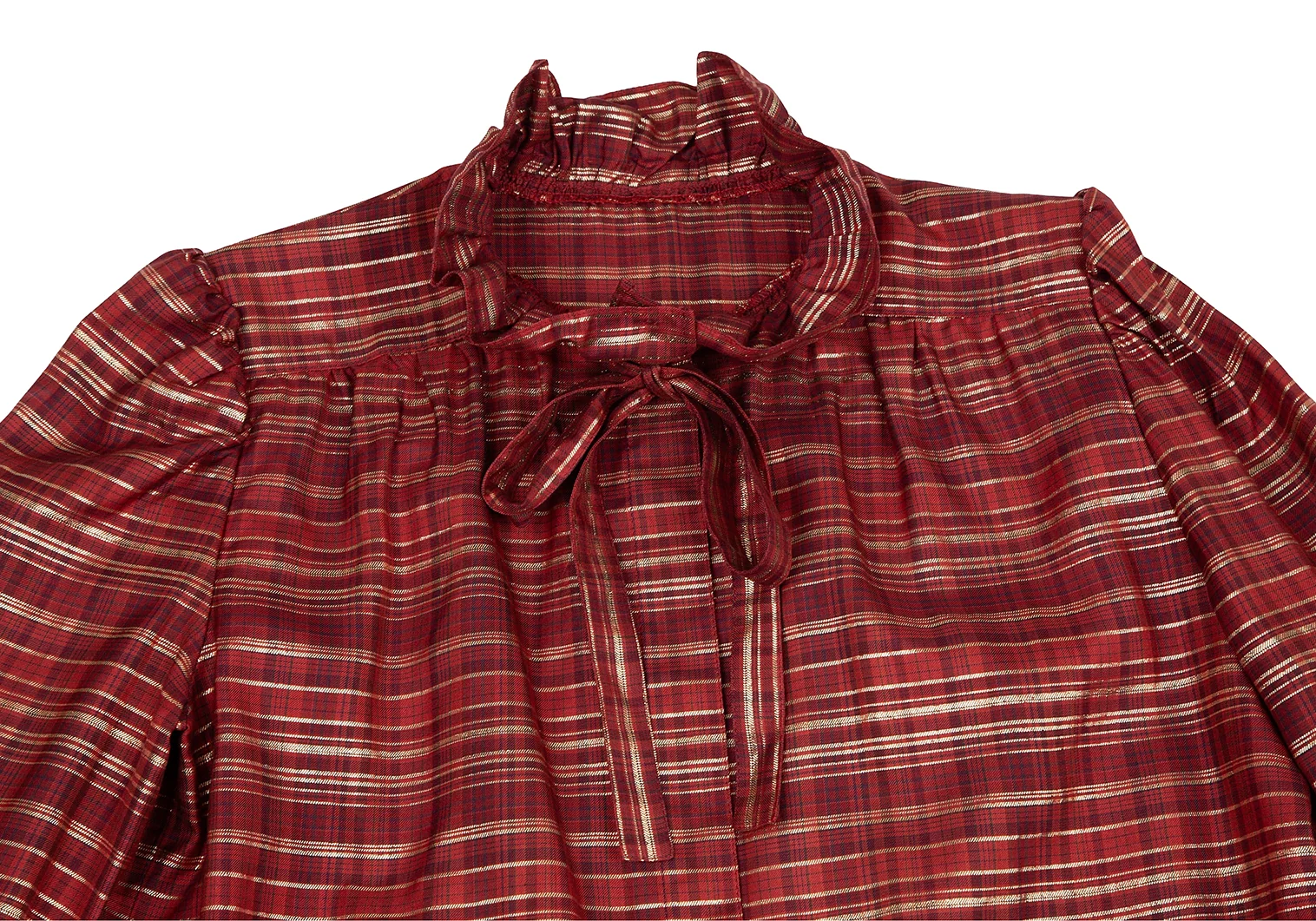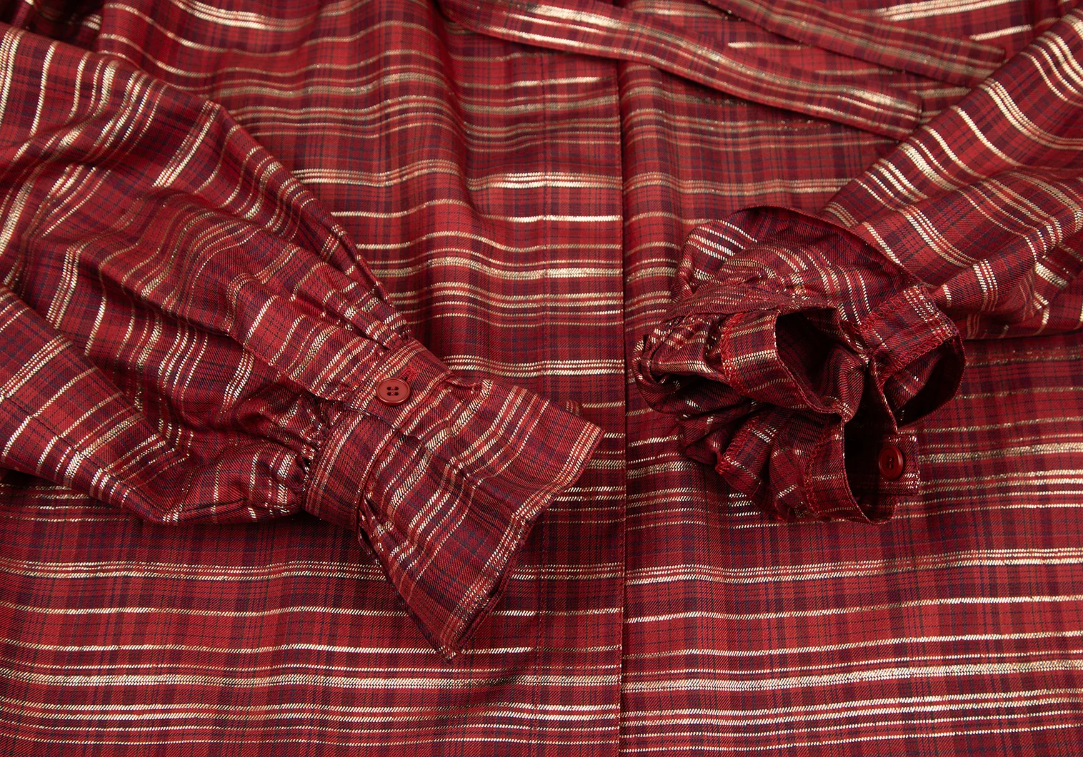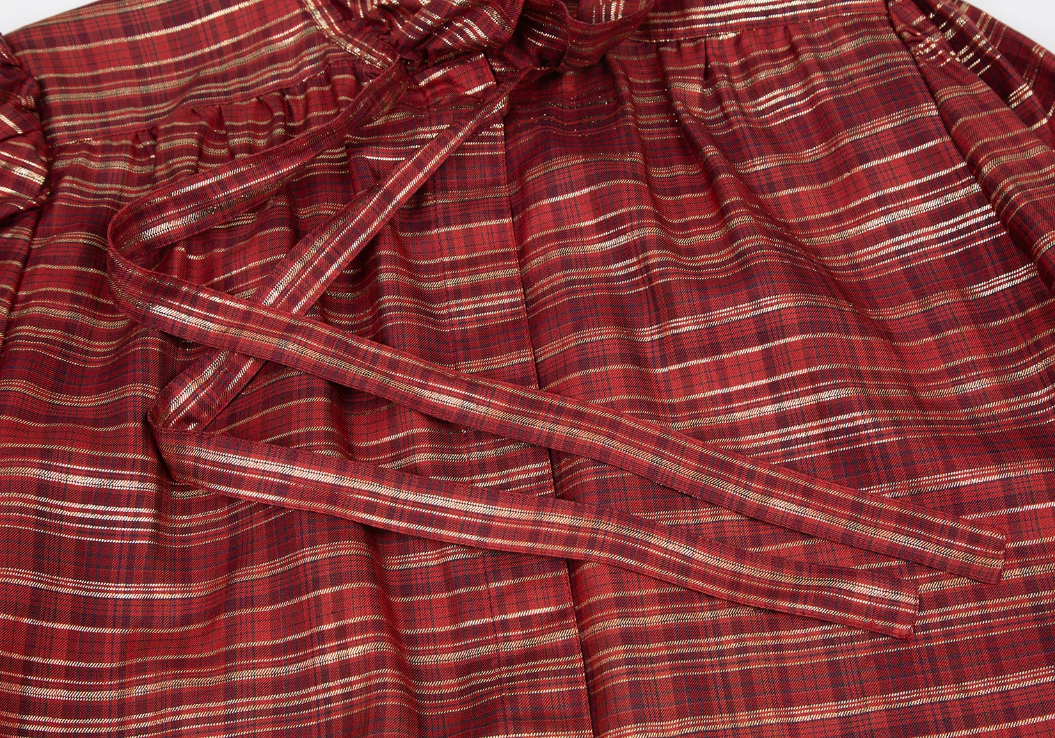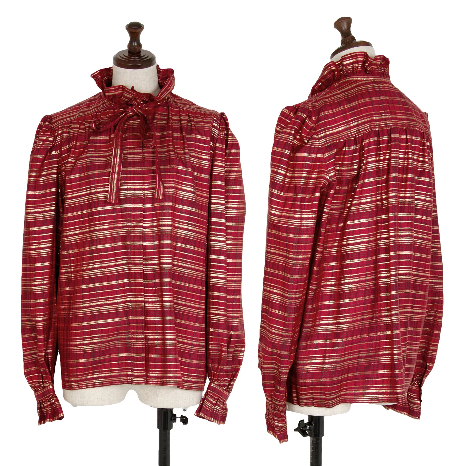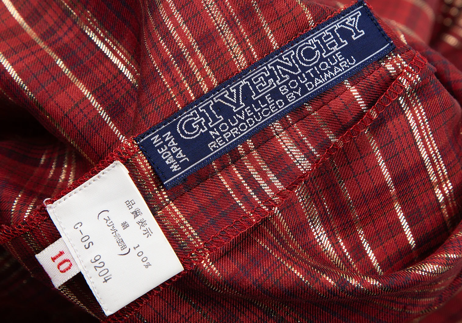 ジバンシィGIVENCHY ラメ糸タータンチェックシルクリボンタイシャツ 赤10