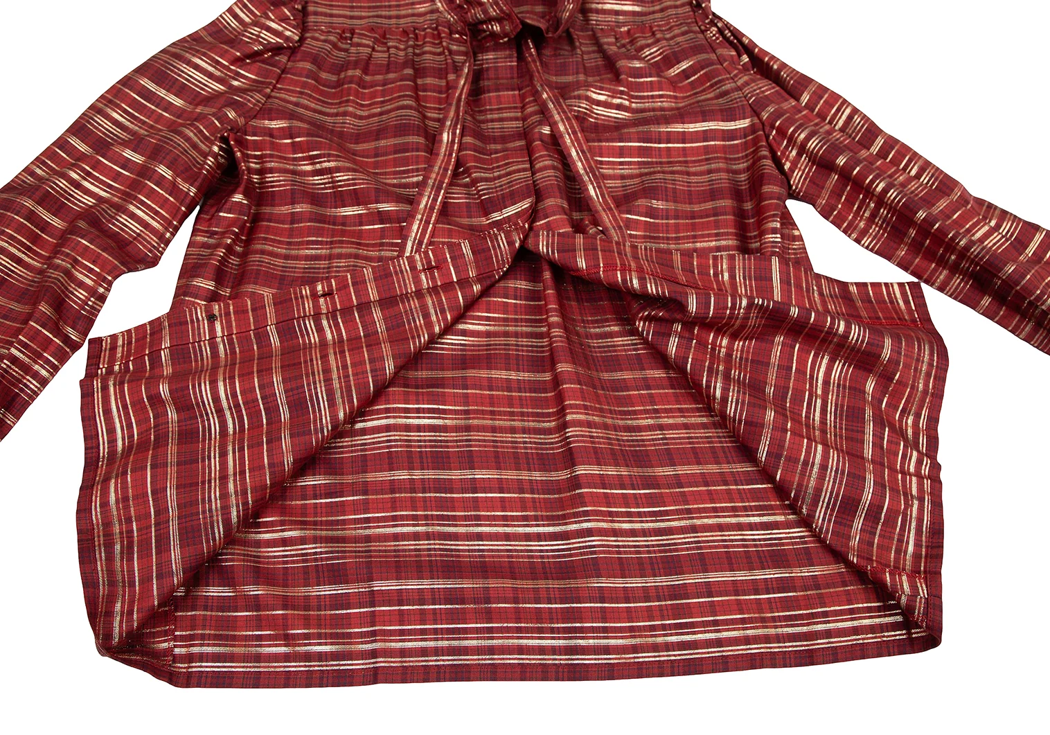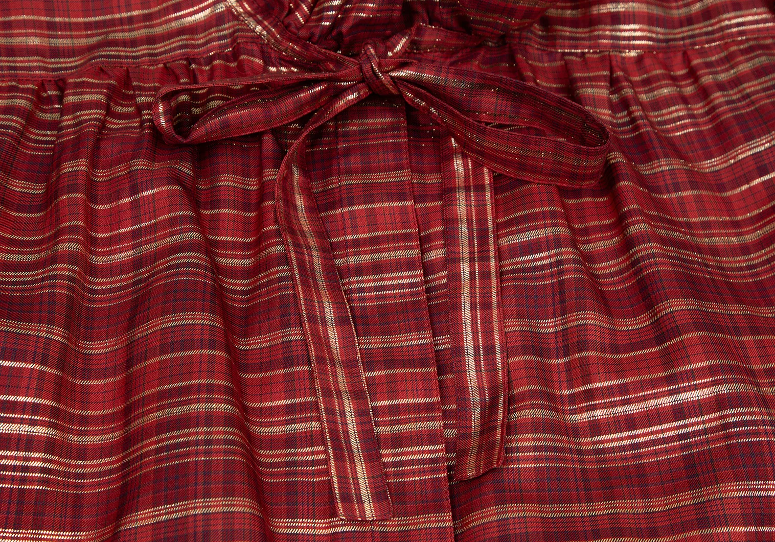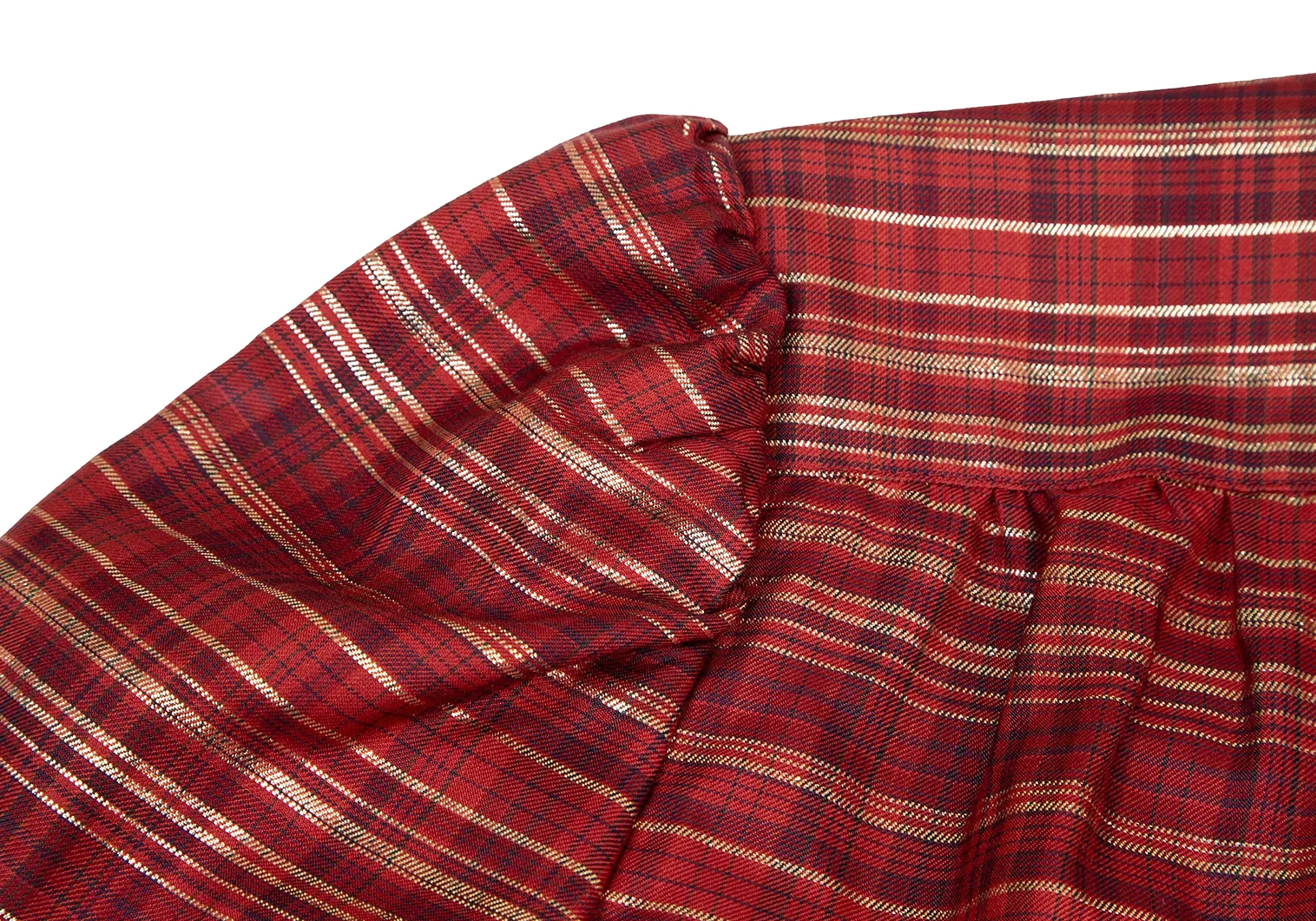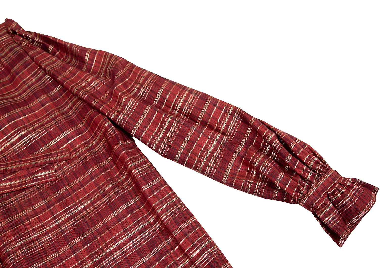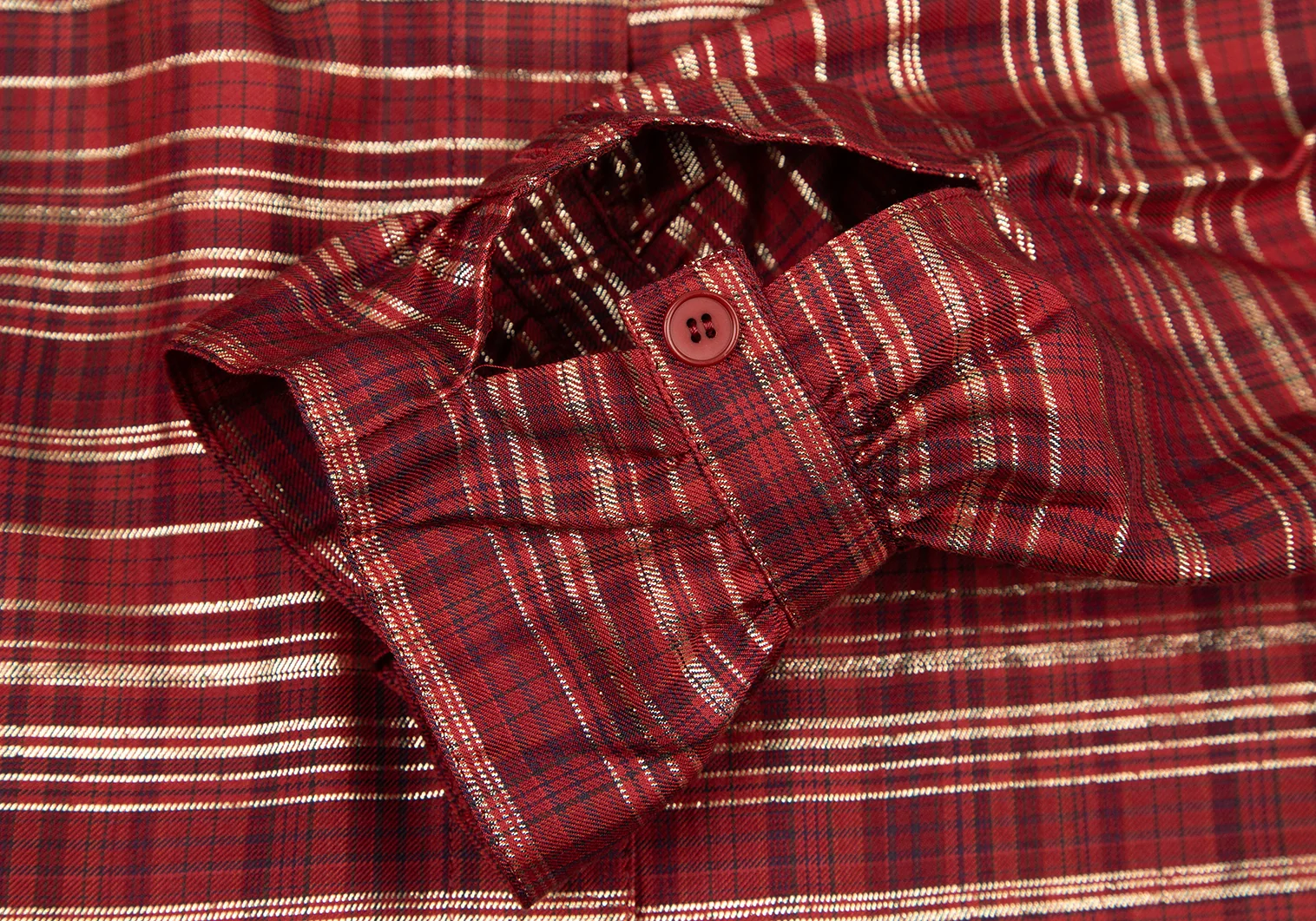 ジバンシィGIVENCHY ラメ糸タータンチェックシルクリボンタイシャツ 赤10