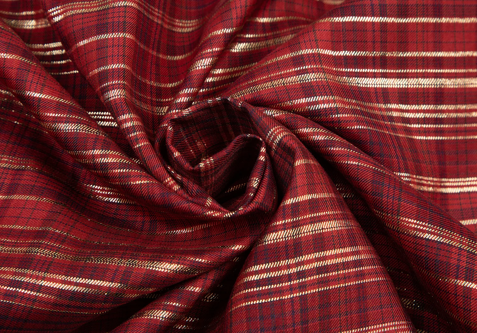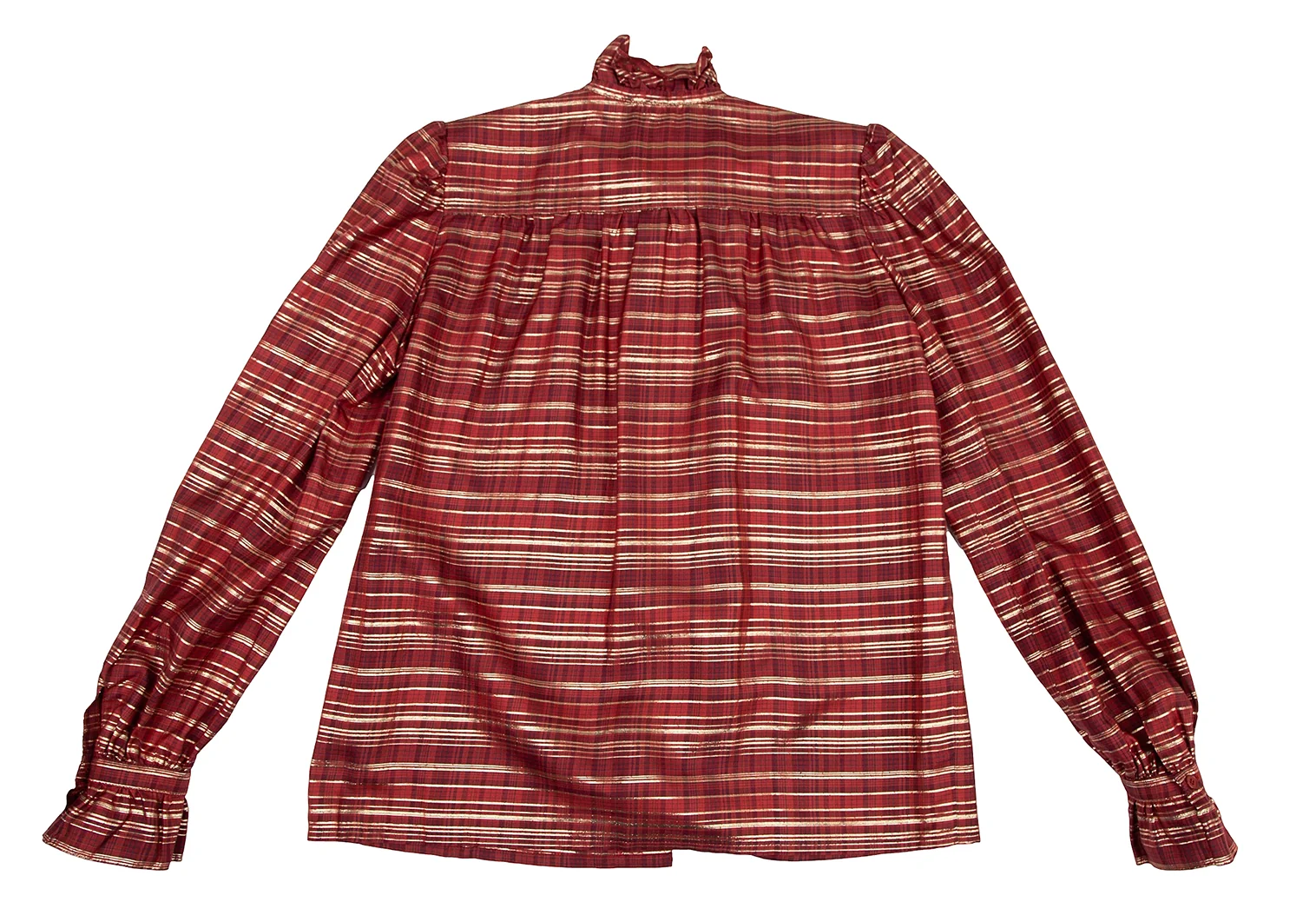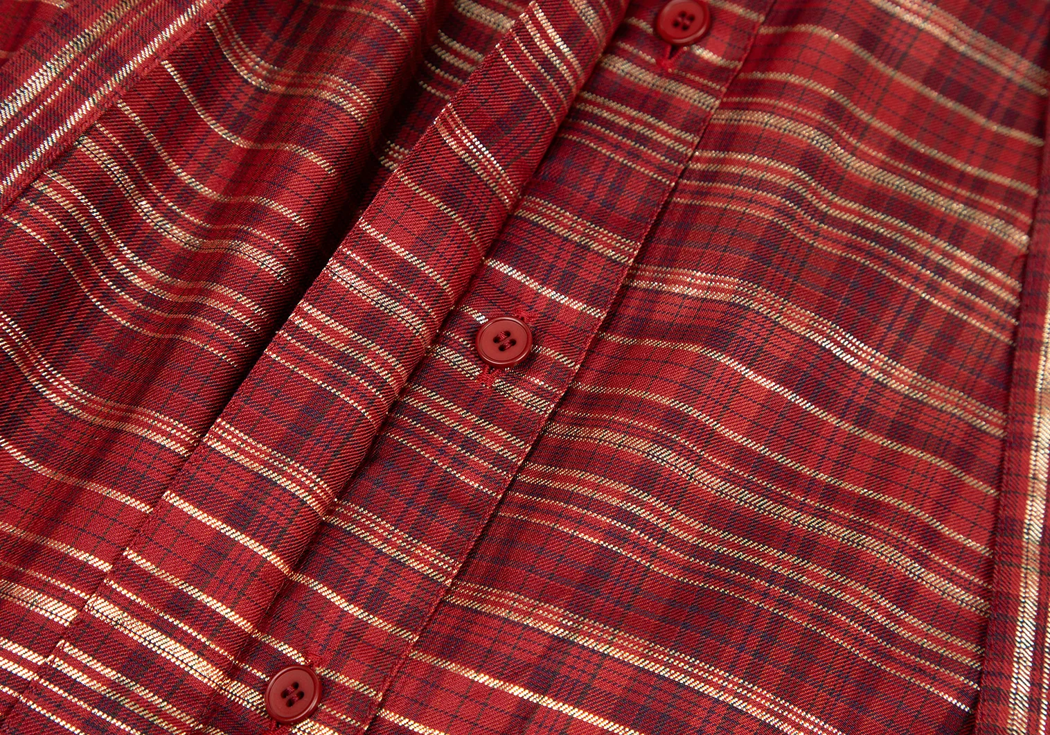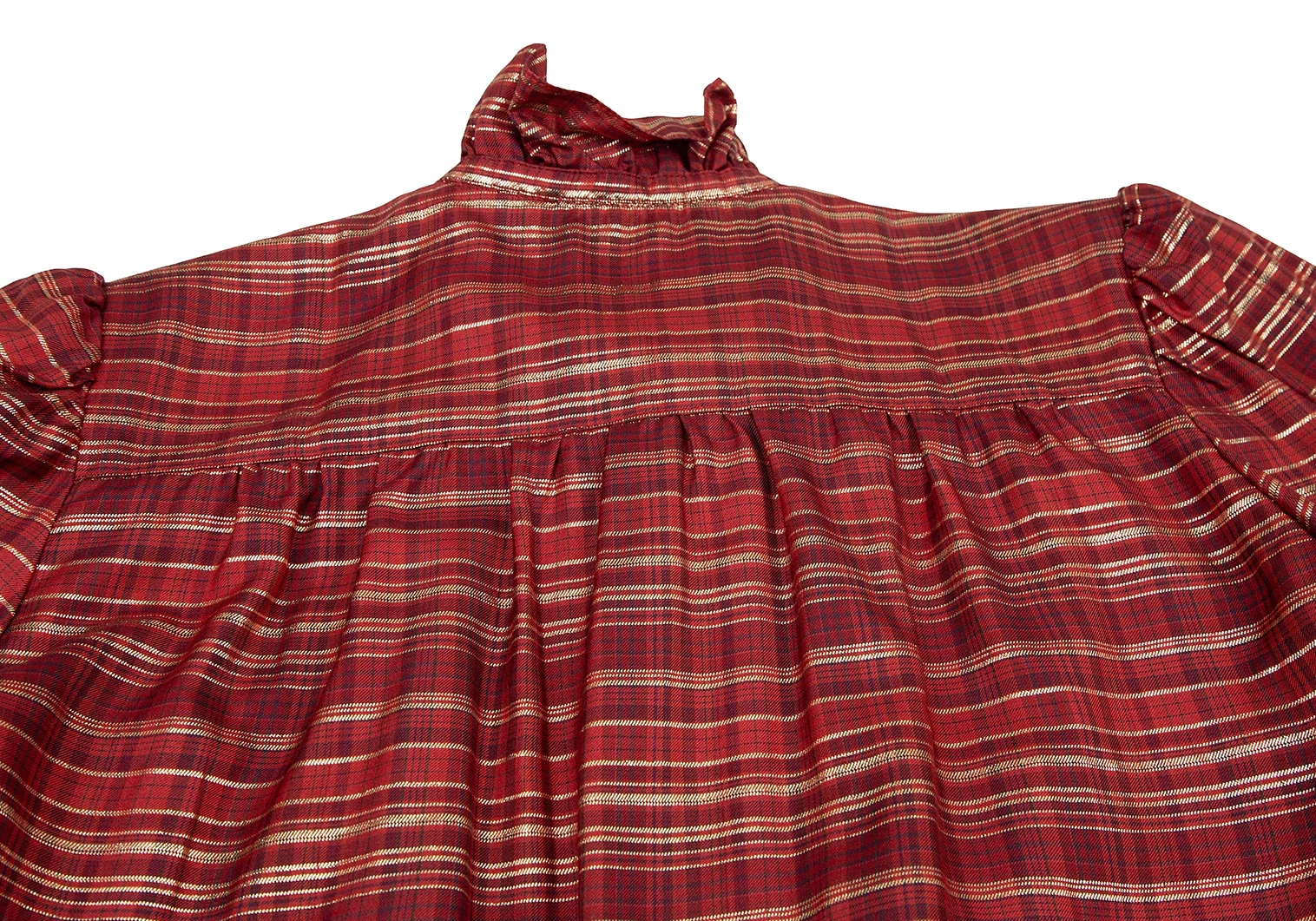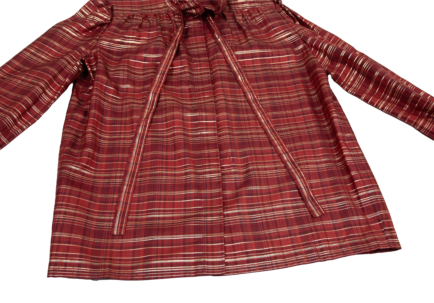 ジバンシィGIVENCHY ラメ糸タータンチェックシルクリボンタイシャツ 赤10