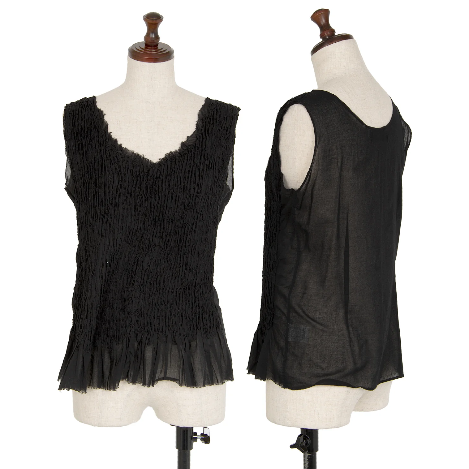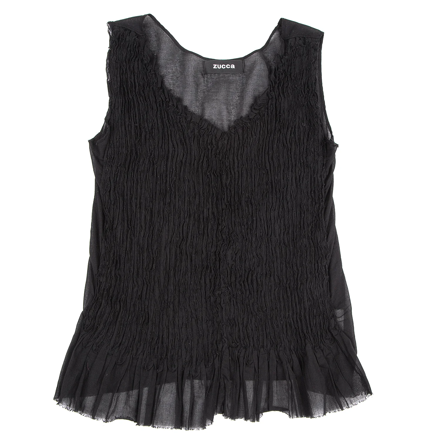 ズッカzucca フロントギャザーデザインノースリーブ 黒M