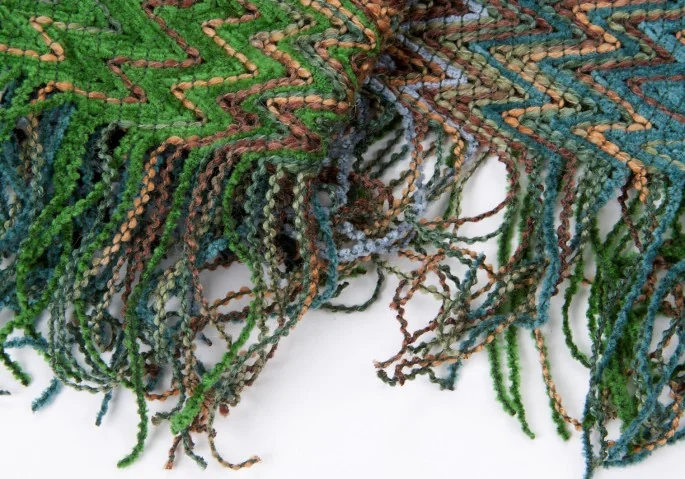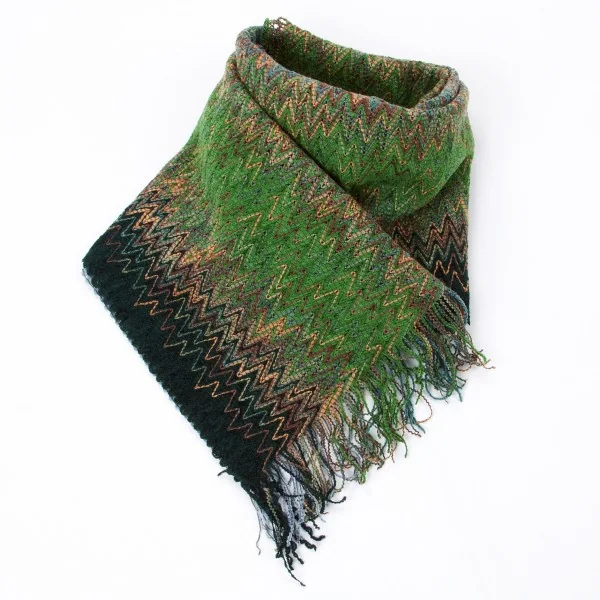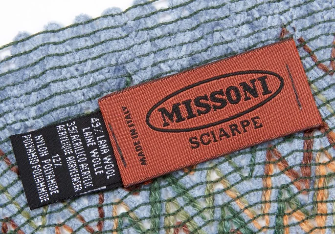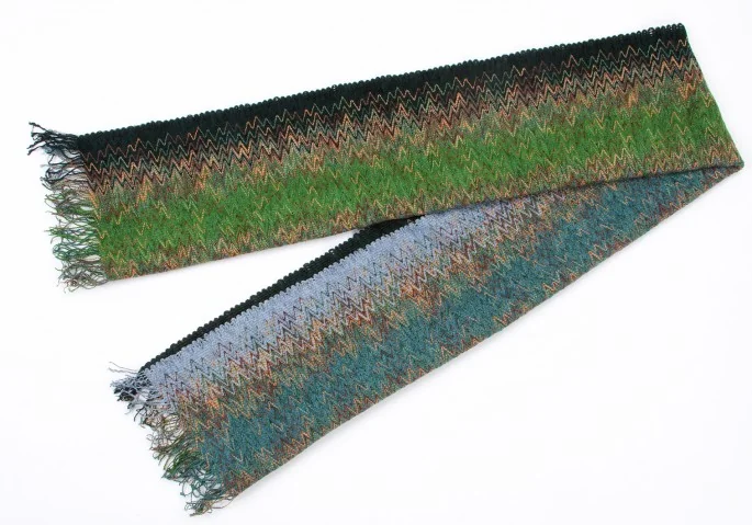 ミッソーニMISSONI フリンジニットマフラー 青グリーン45cm×180cm
