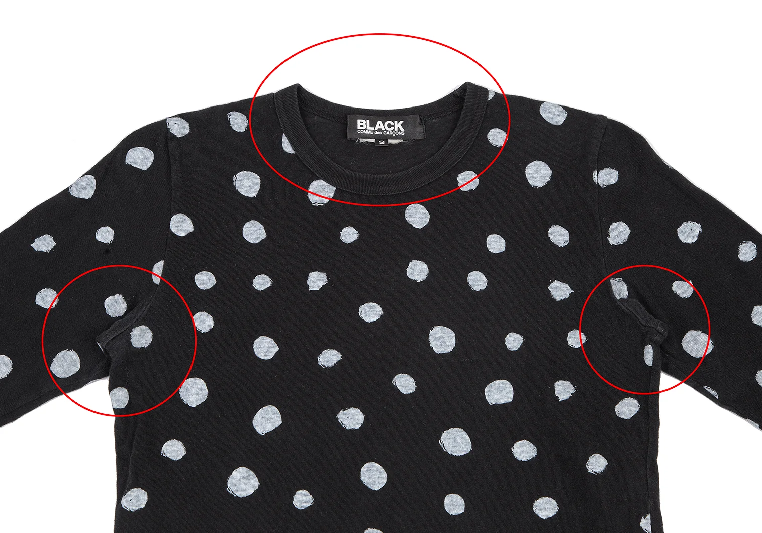 ブラックコムデギャルソンBLACK COMME des GARCONS 手描きドットプリントカットソー 黒S