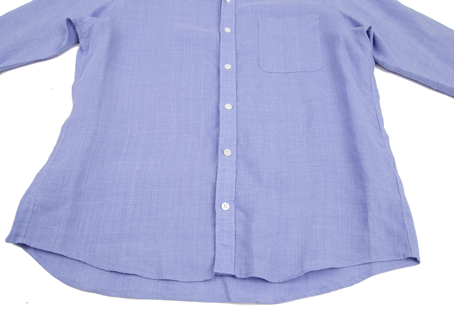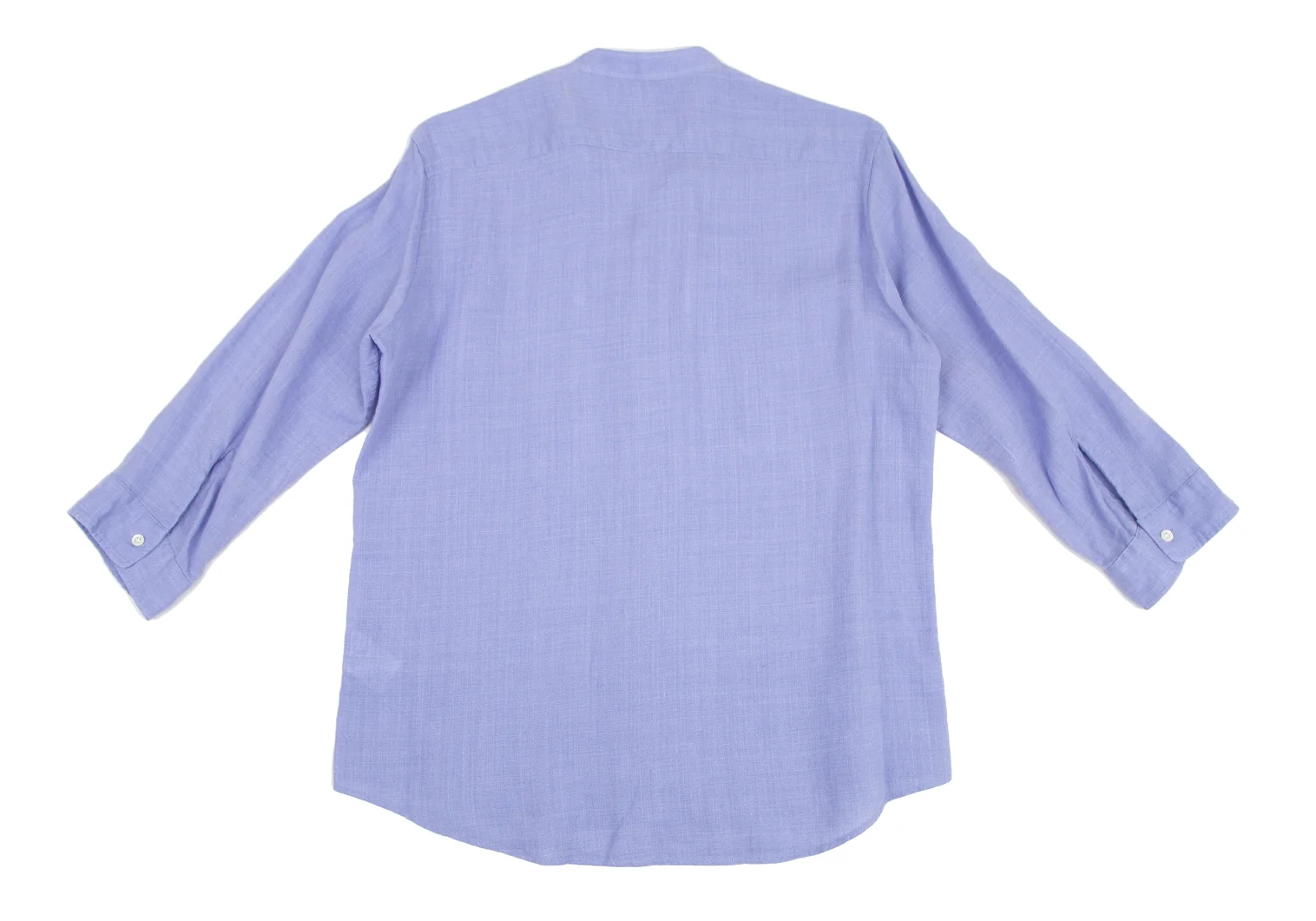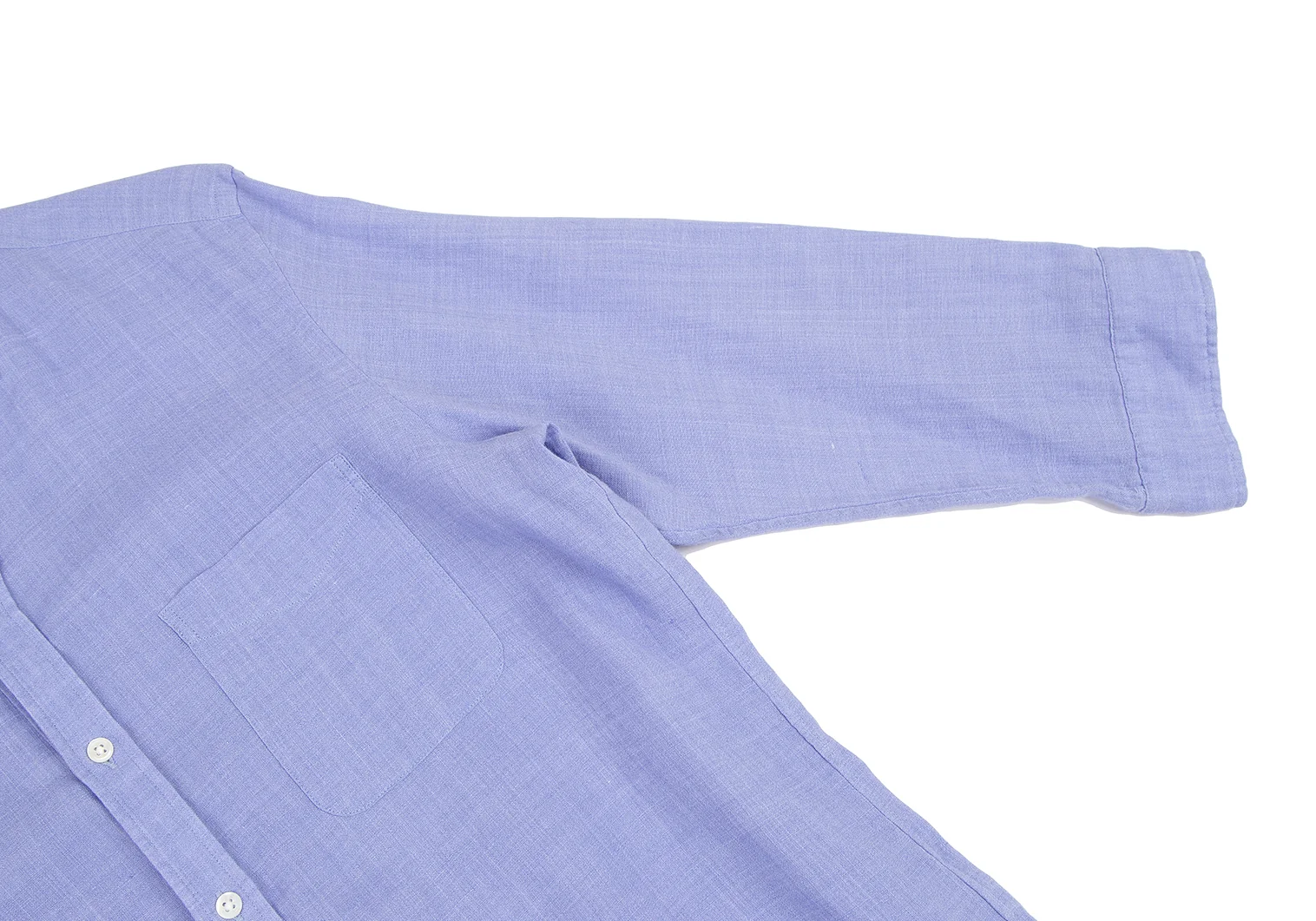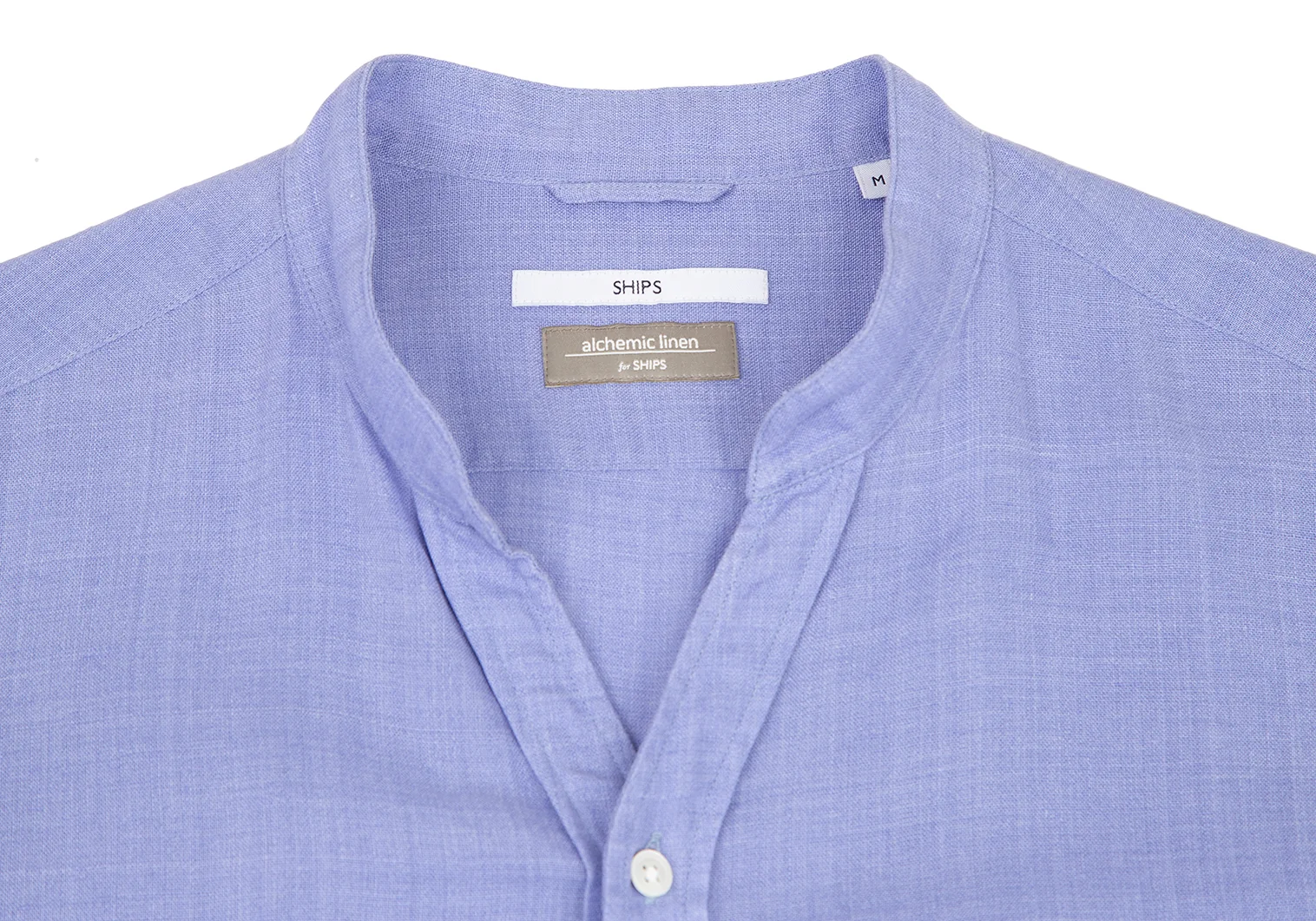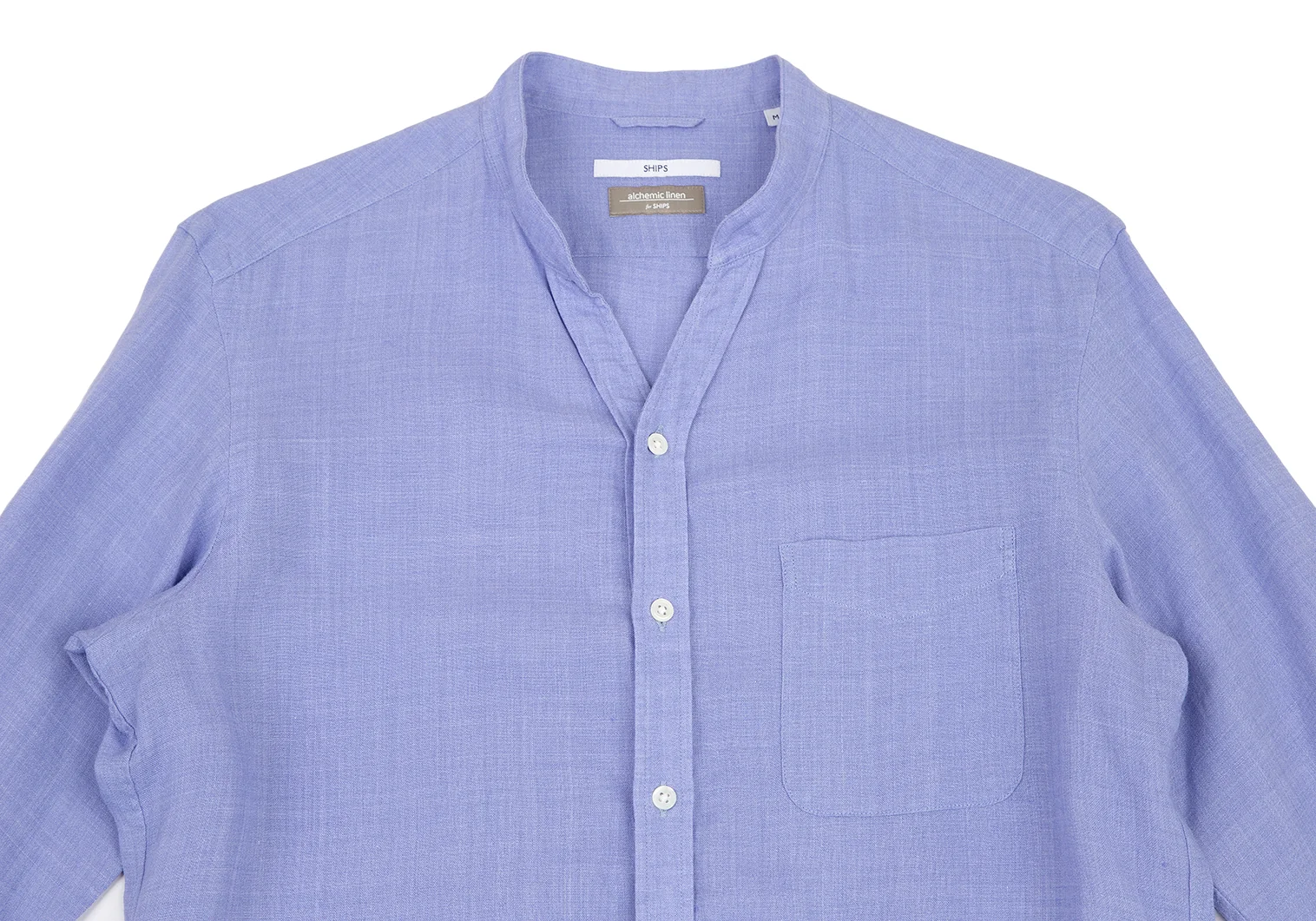 シップスSHIPS リネンポリバンドカラー七分袖シャツ 水色M