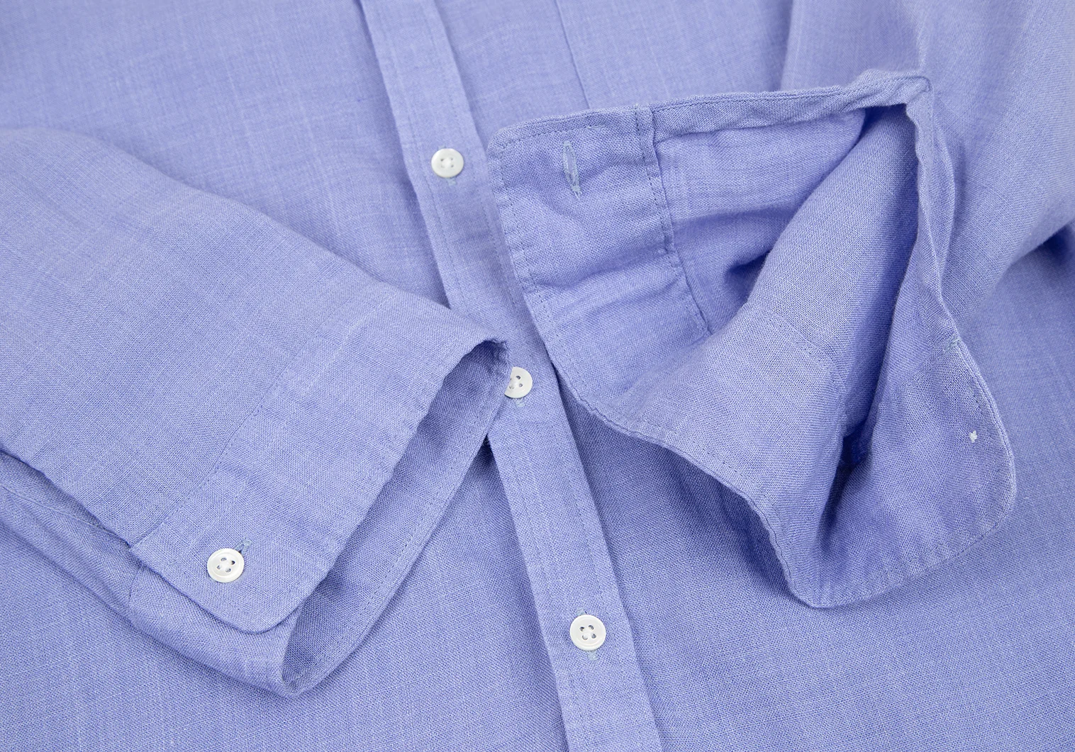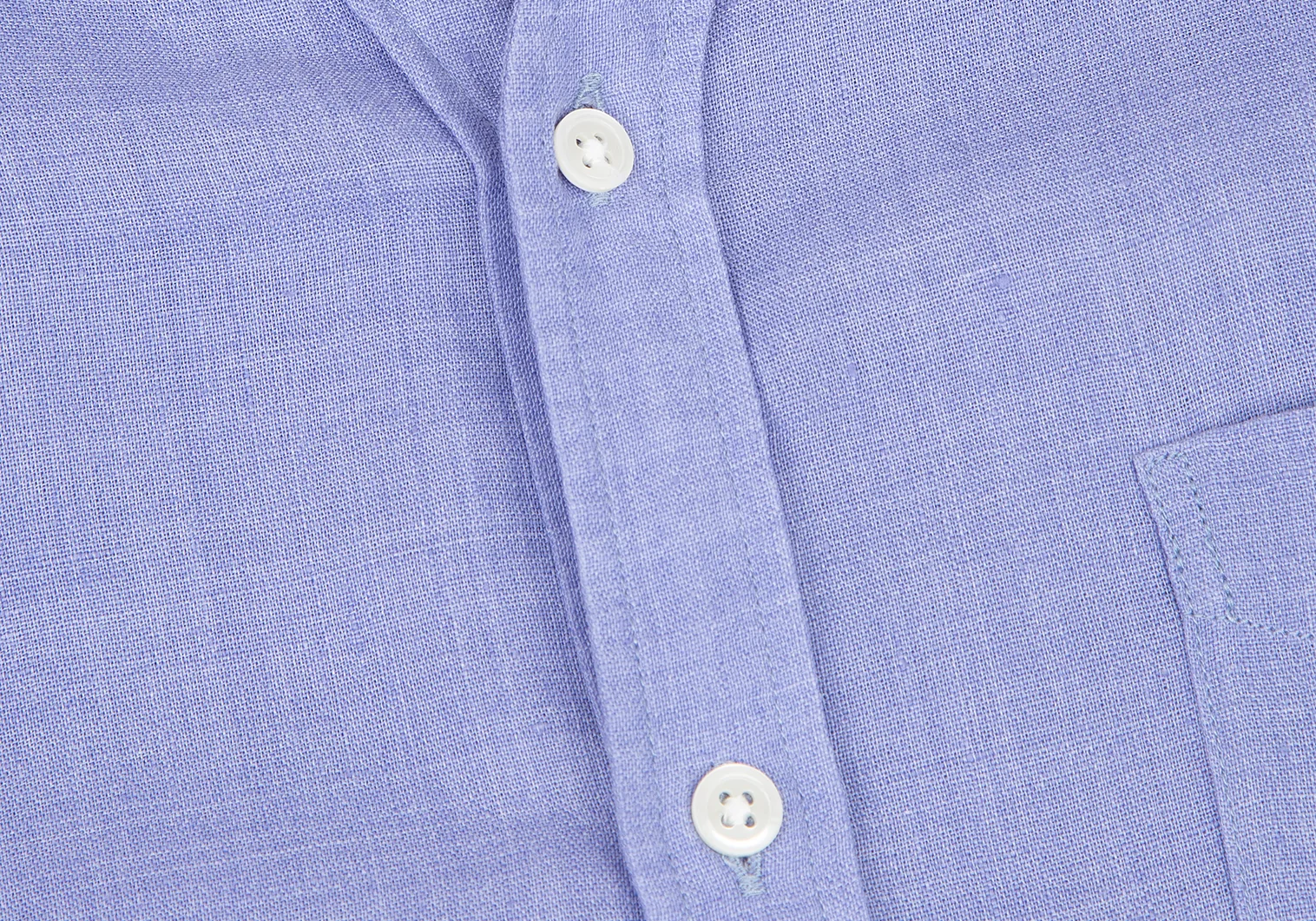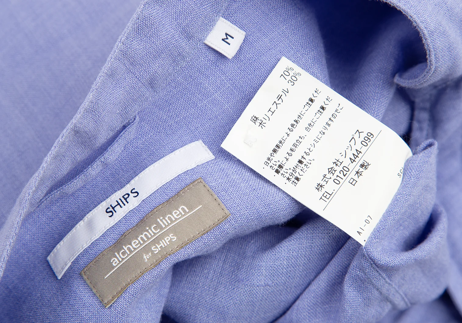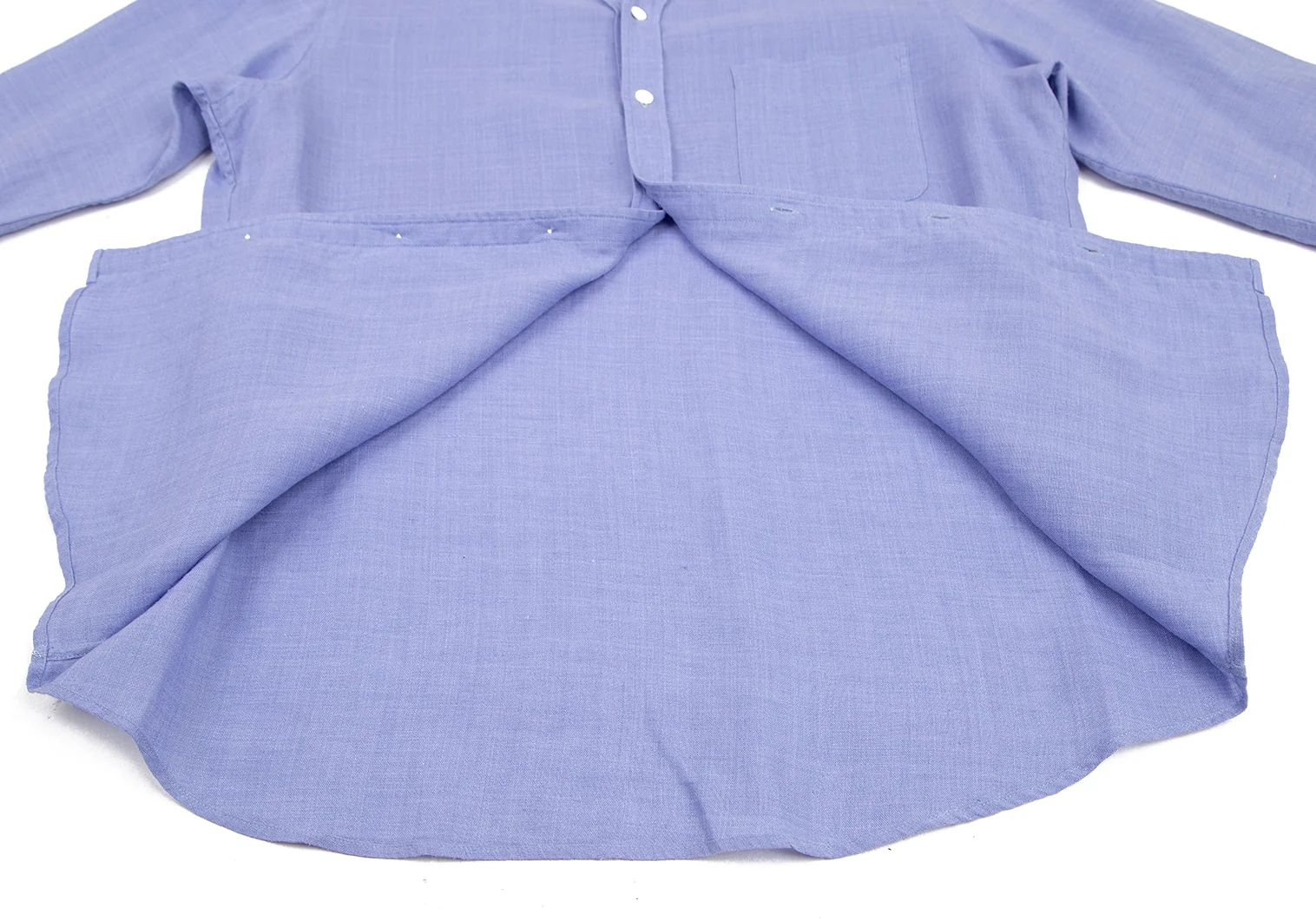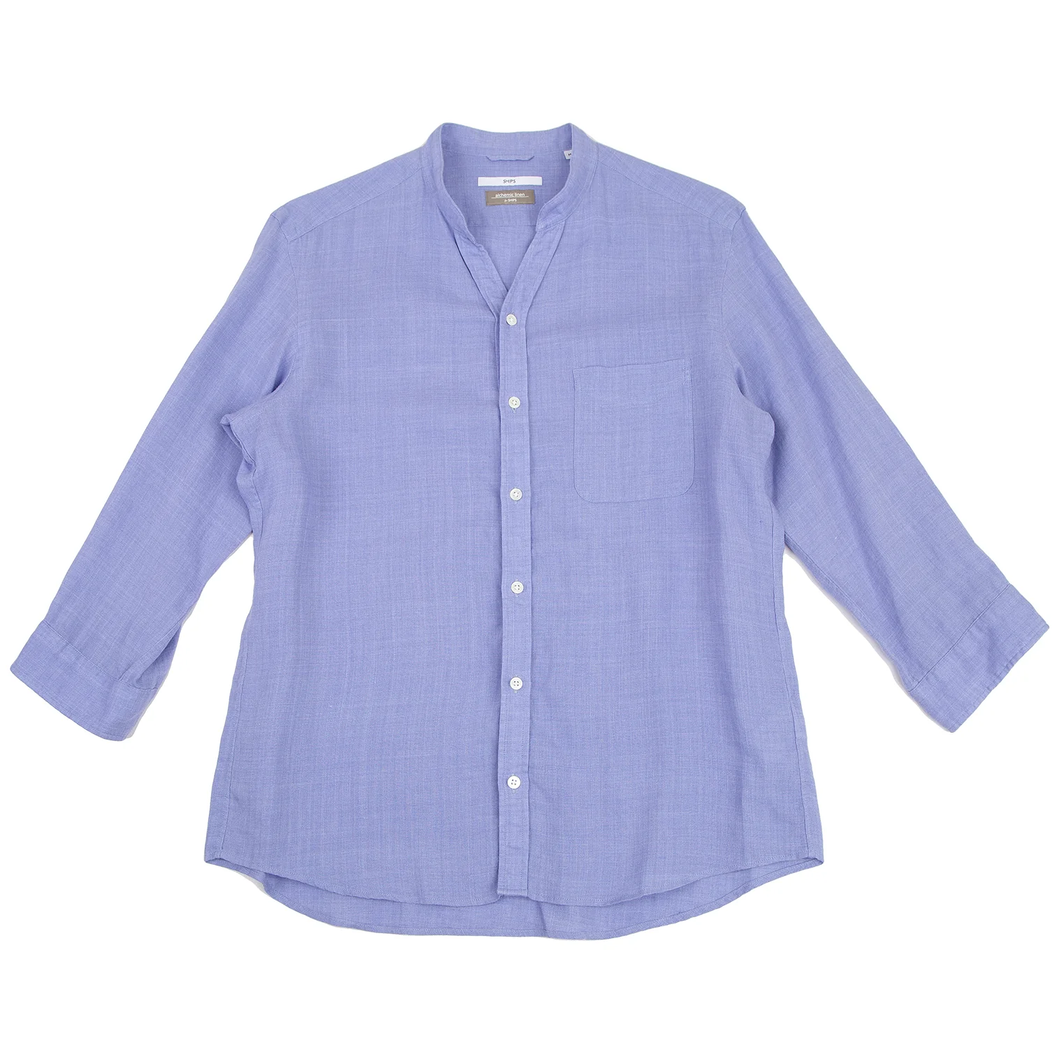 シップスSHIPS リネンポリバンドカラー七分袖シャツ 水色M