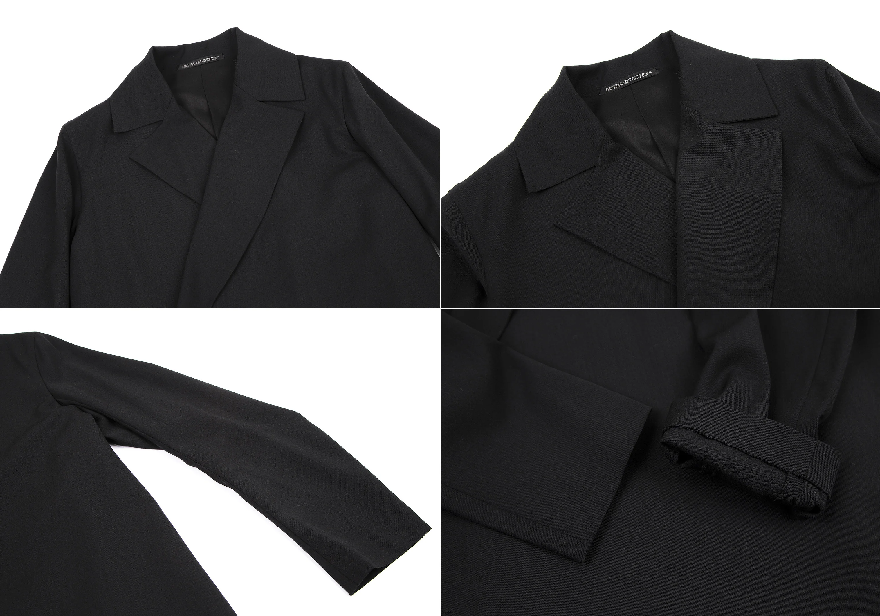 ヨウジヤマモト ファムYohji Yamamoto FEMME ウールギャバベルト留めセットアップスーツ 黒S/SS