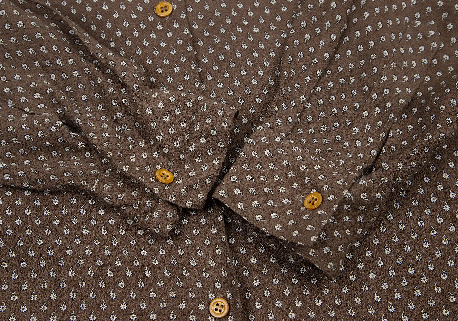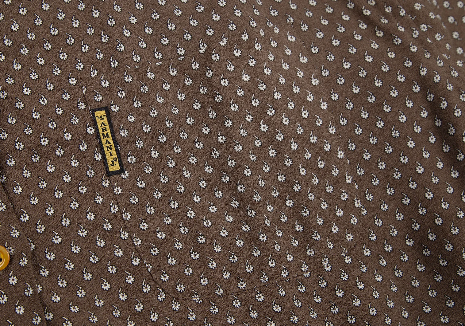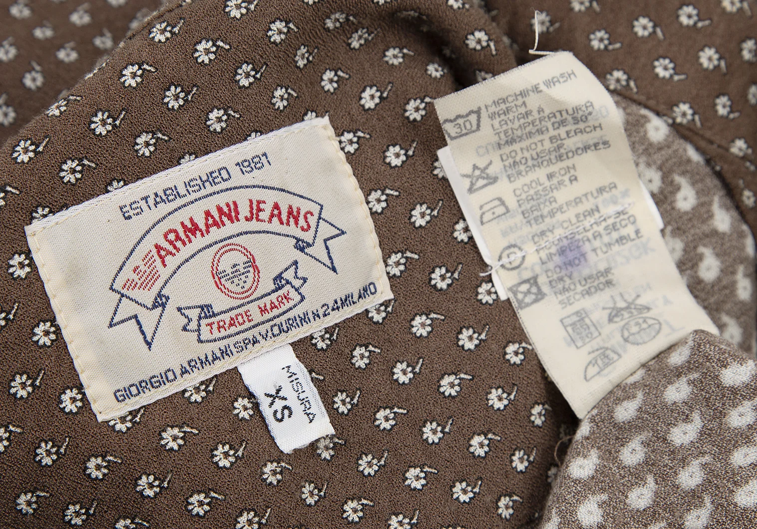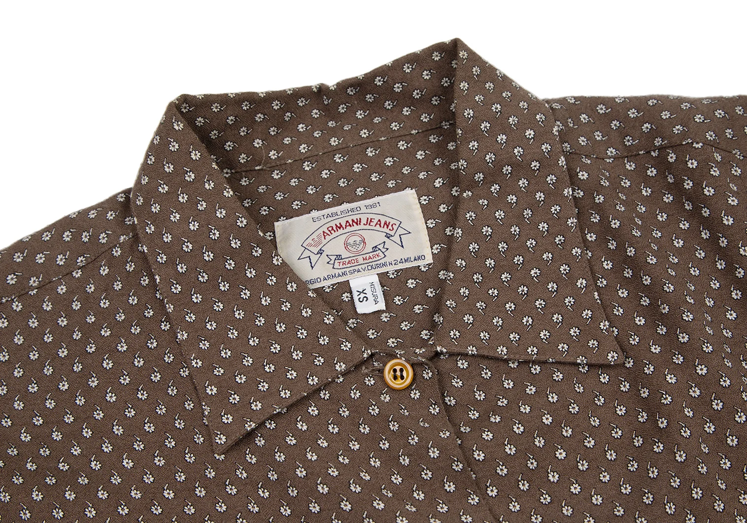 アルマーニジーンズARMANI JEANS レーヨン小花プリントシャツ 茶XS