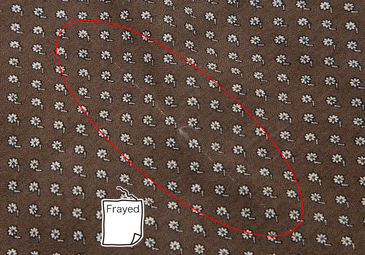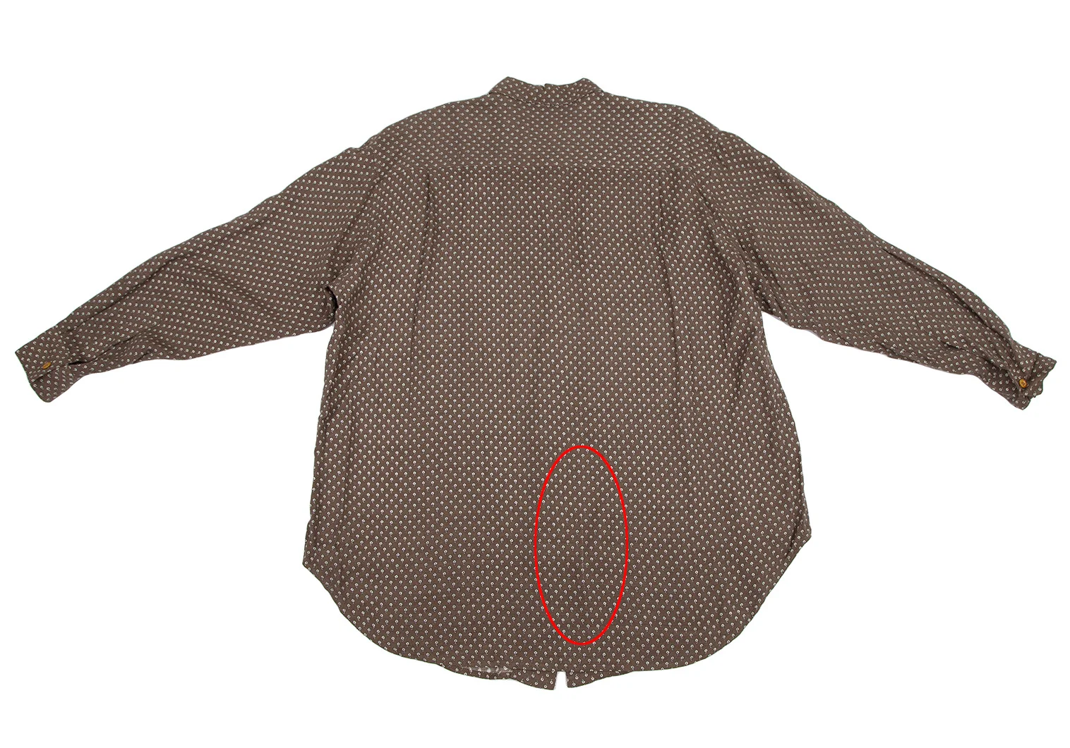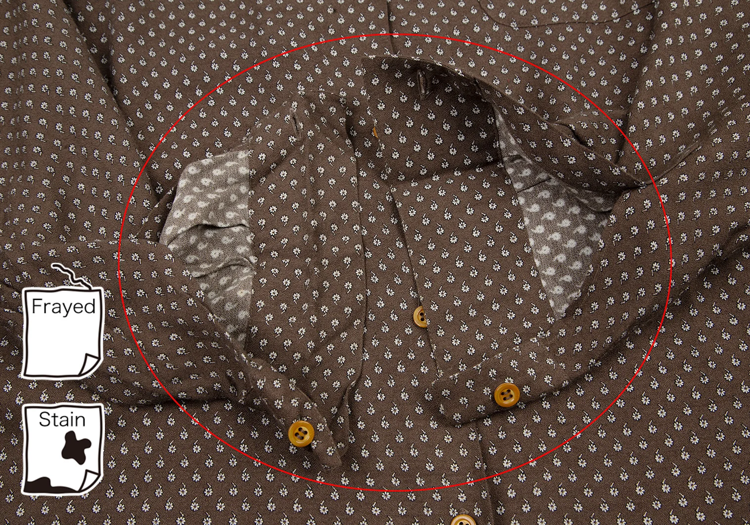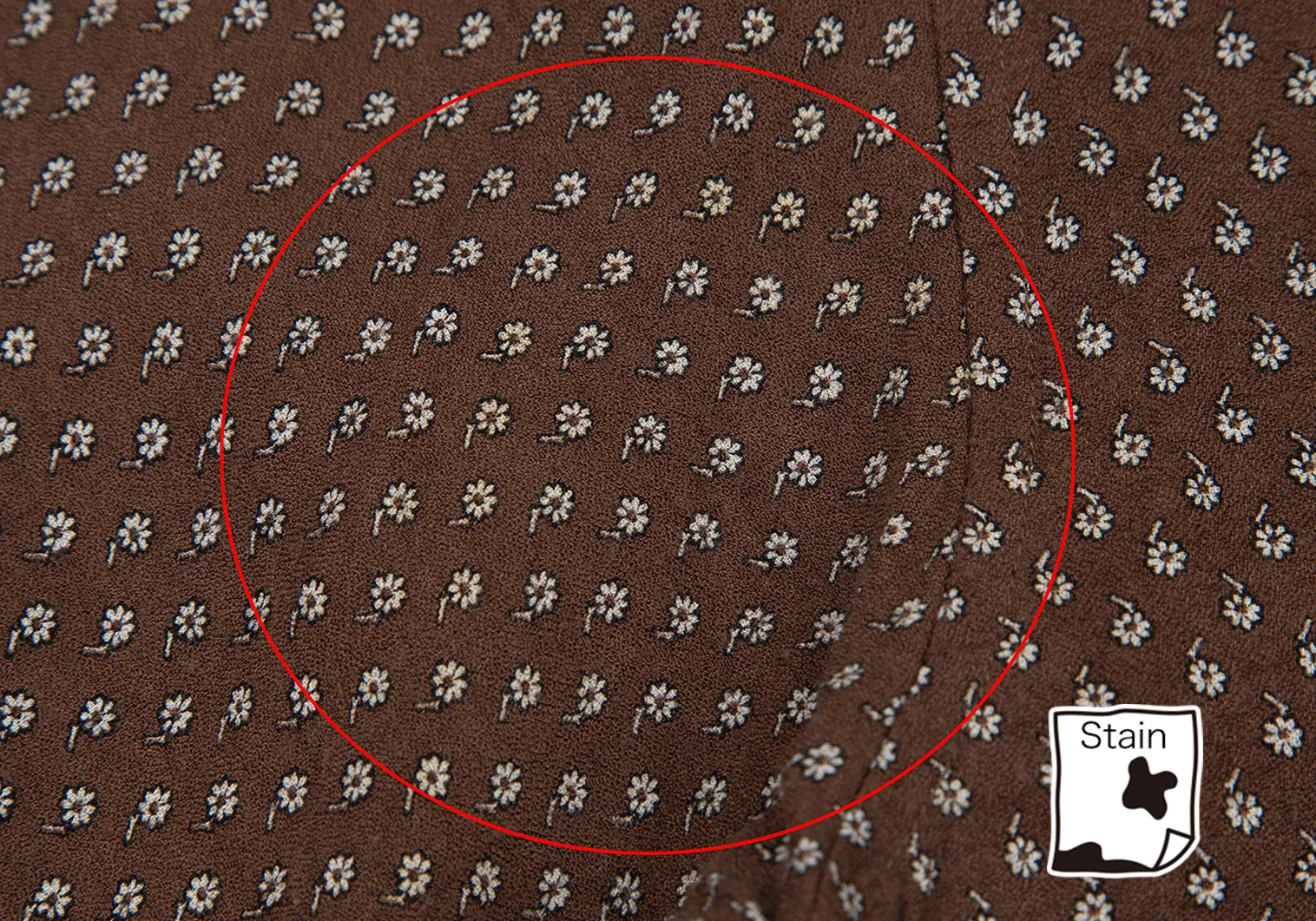 右脇・首裏・袖先に薄汚れ、袖裏・後ろ裾に糸引きがあります(写真参照)。その他目立ったほつれ等ない状態です。クリーニング済み