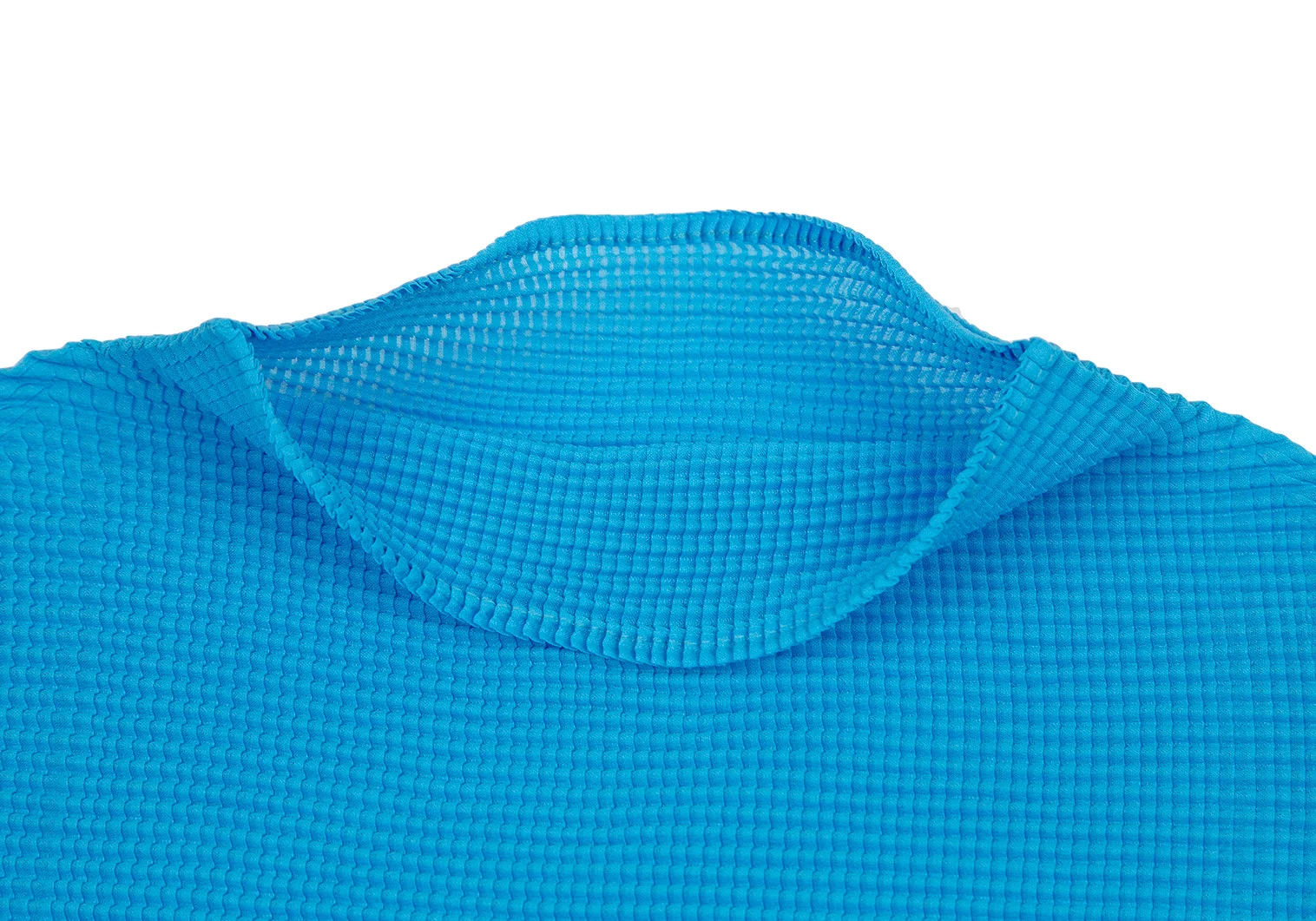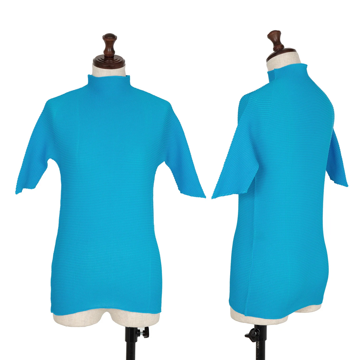 イッセイミヤケISSEY MIYAKEPLEATS (T.) ストレッチプリーツハイネックカットソー 水色M