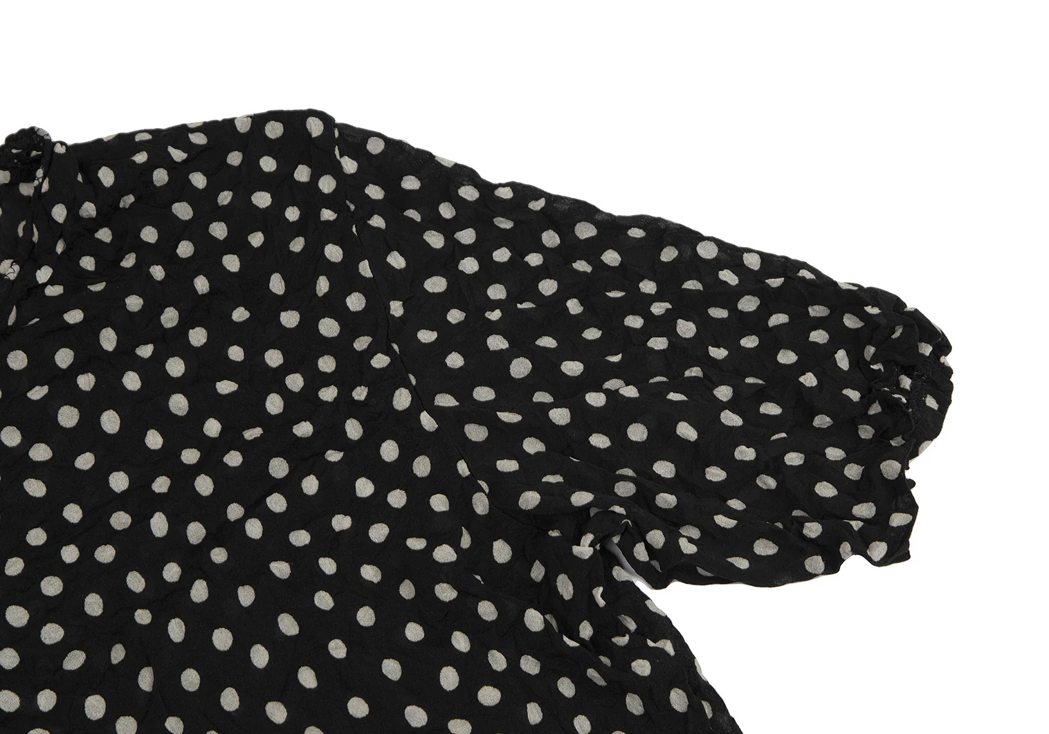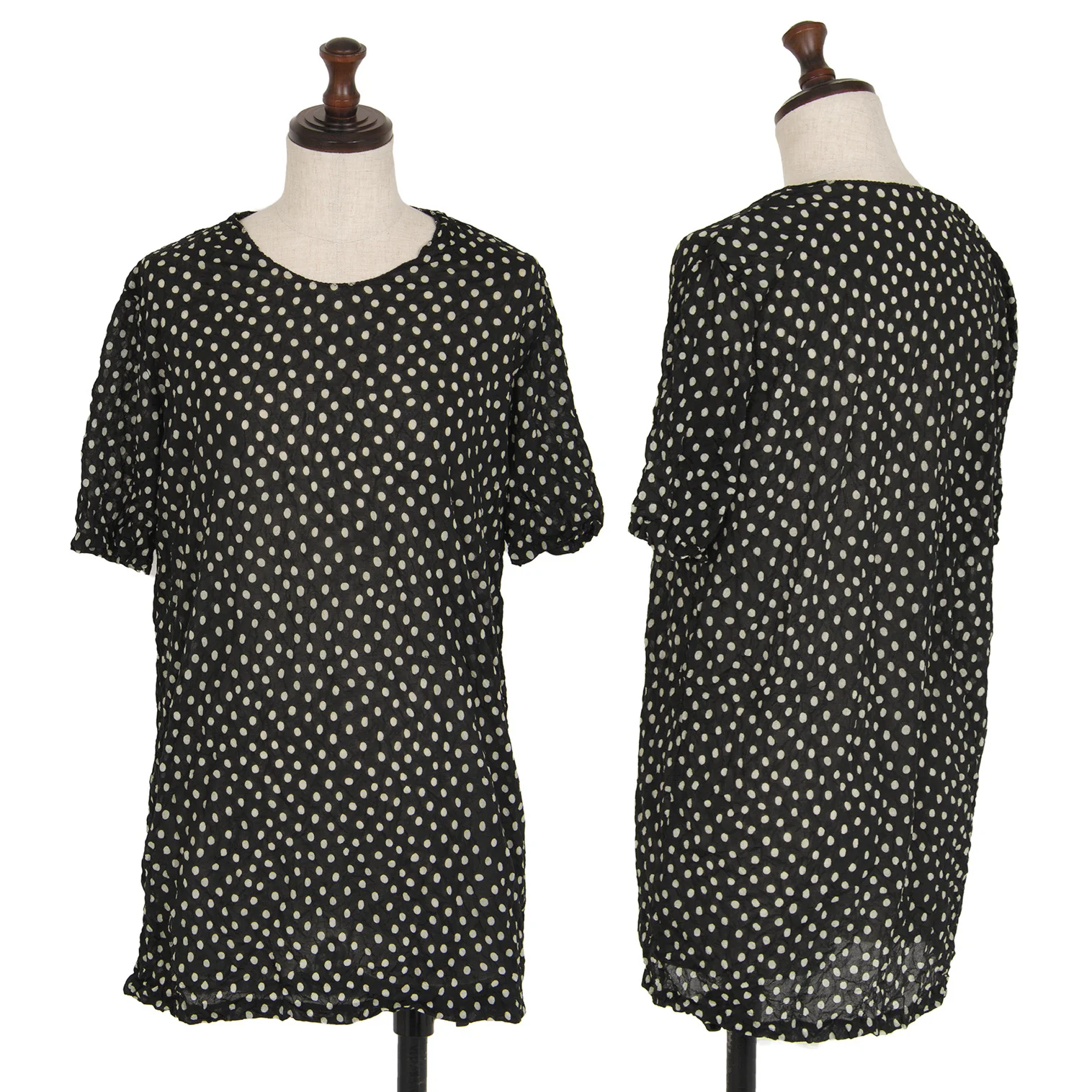 イッセイミヤケISSEY MIYAKEドットプリントシワプリーツTシャツ 黒白M