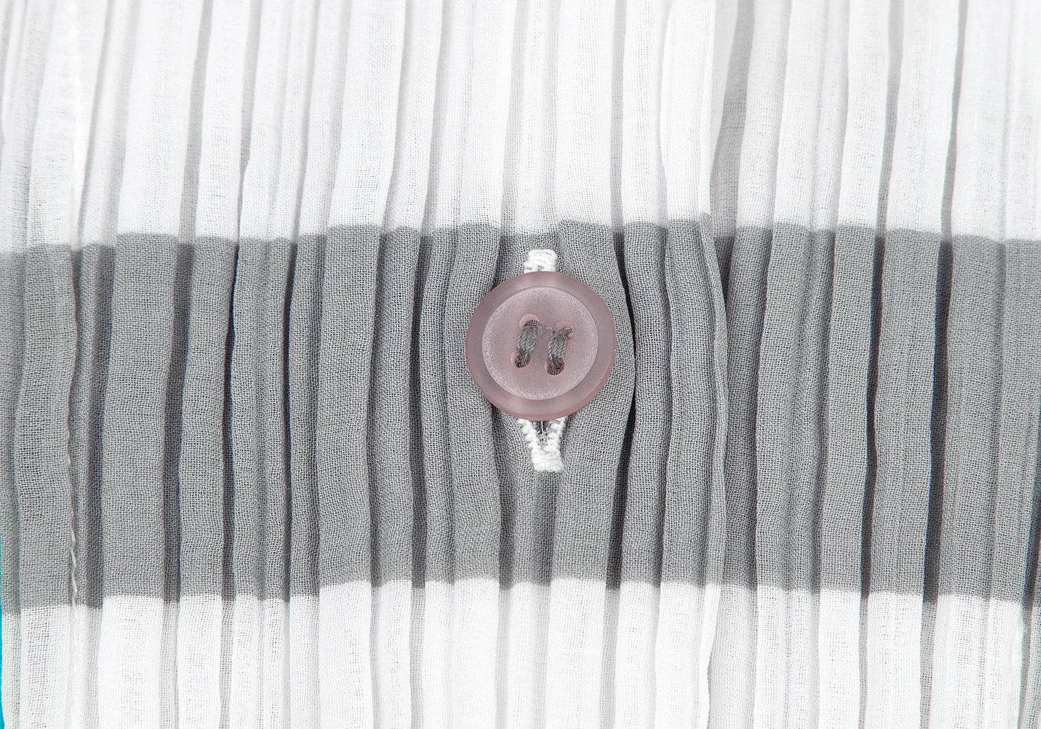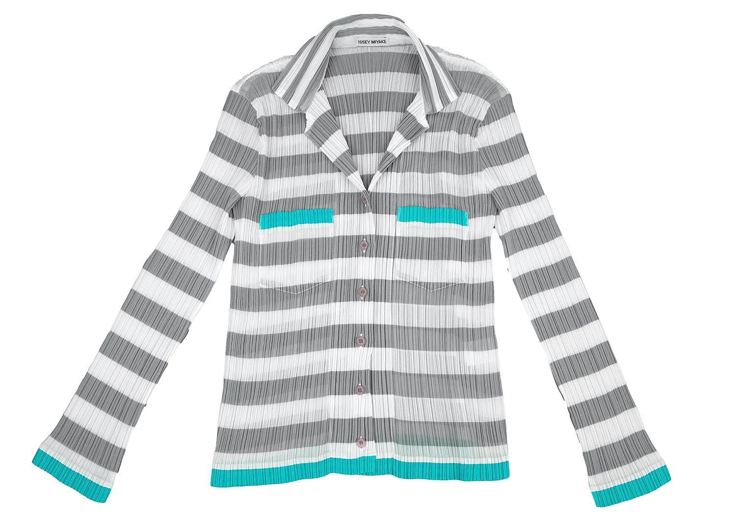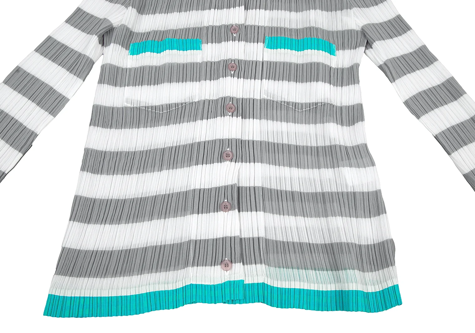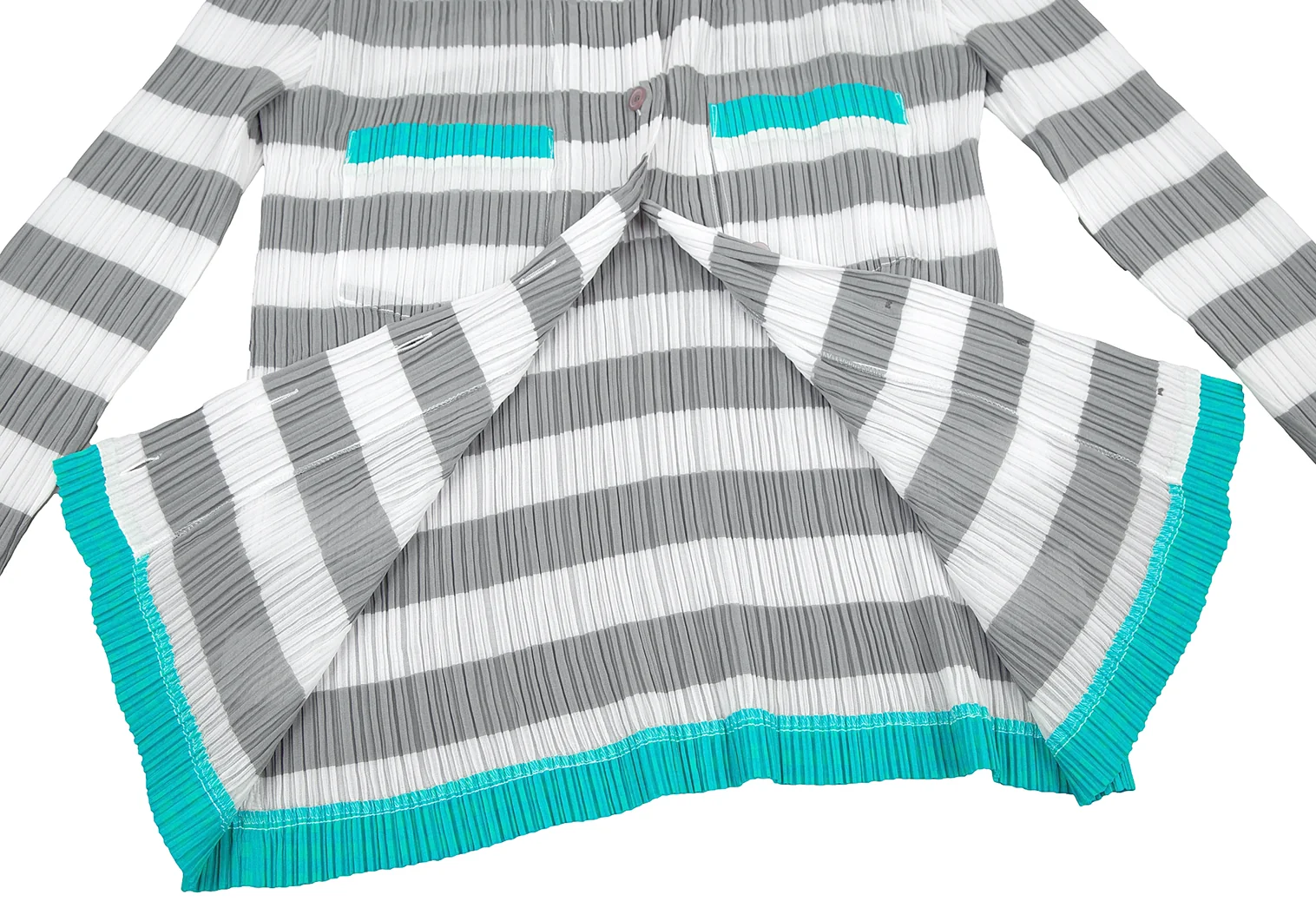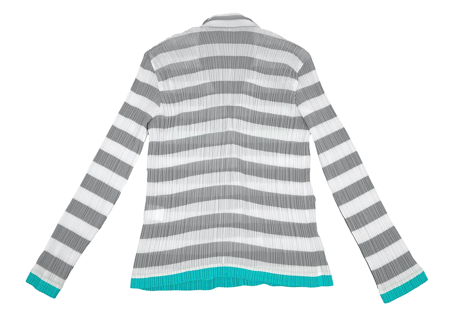 イッセイミヤケISSEY MIYAKEパターン切替ボーダーシースループリーツシャツ 白グレーM