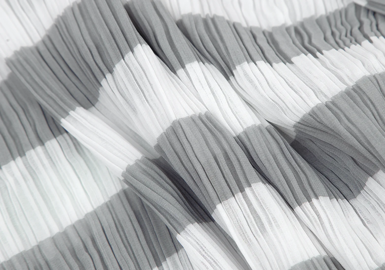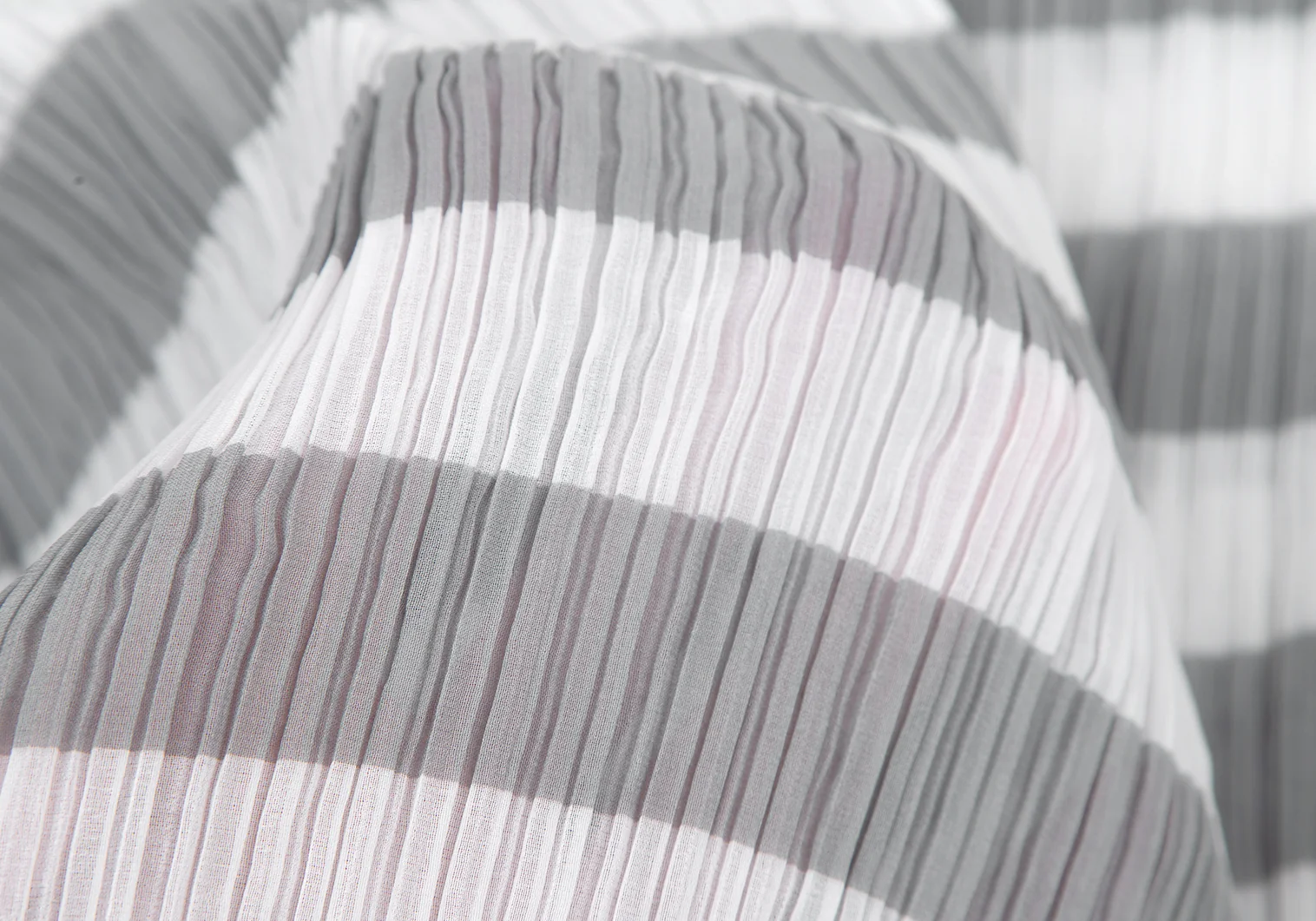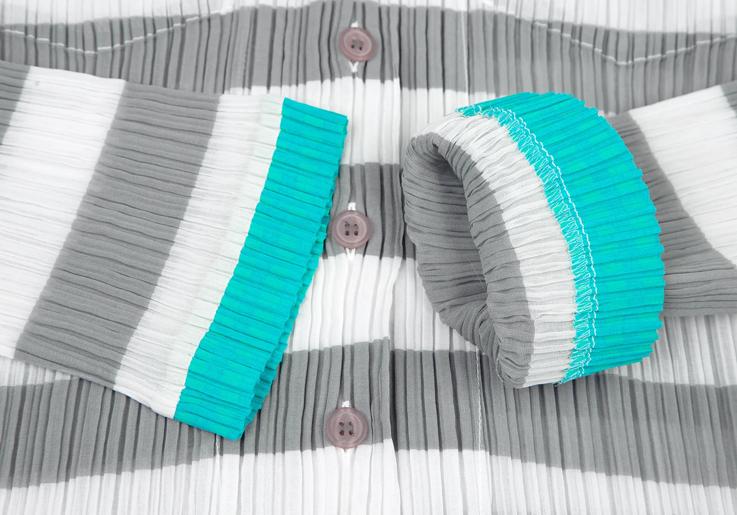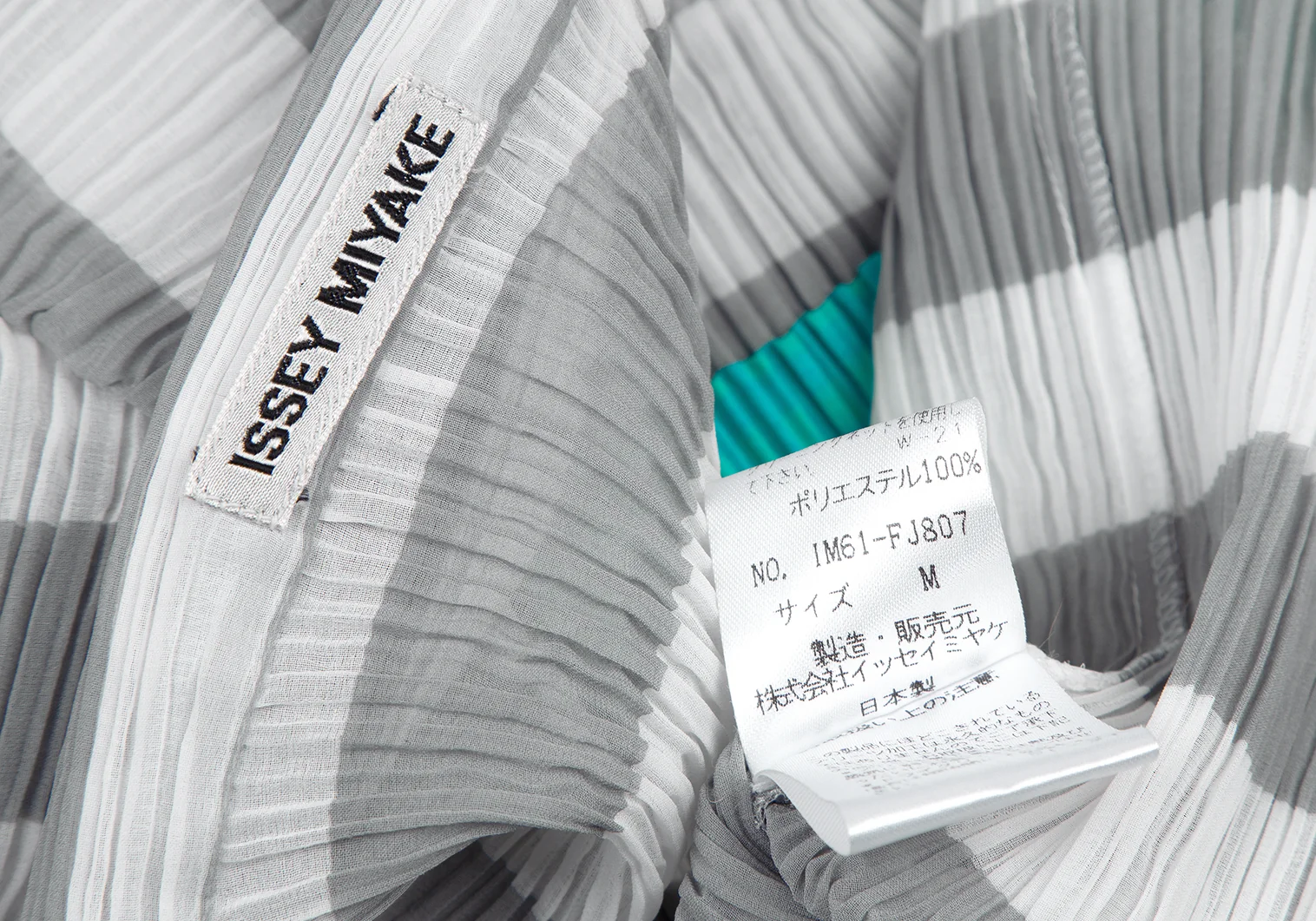イッセイミヤケISSEY MIYAKEパターン切替ボーダーシースループリーツシャツ 白グレーM
