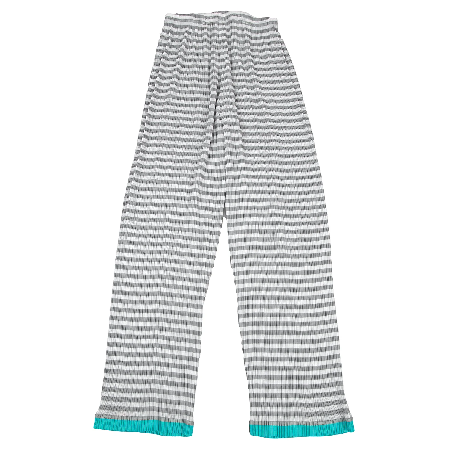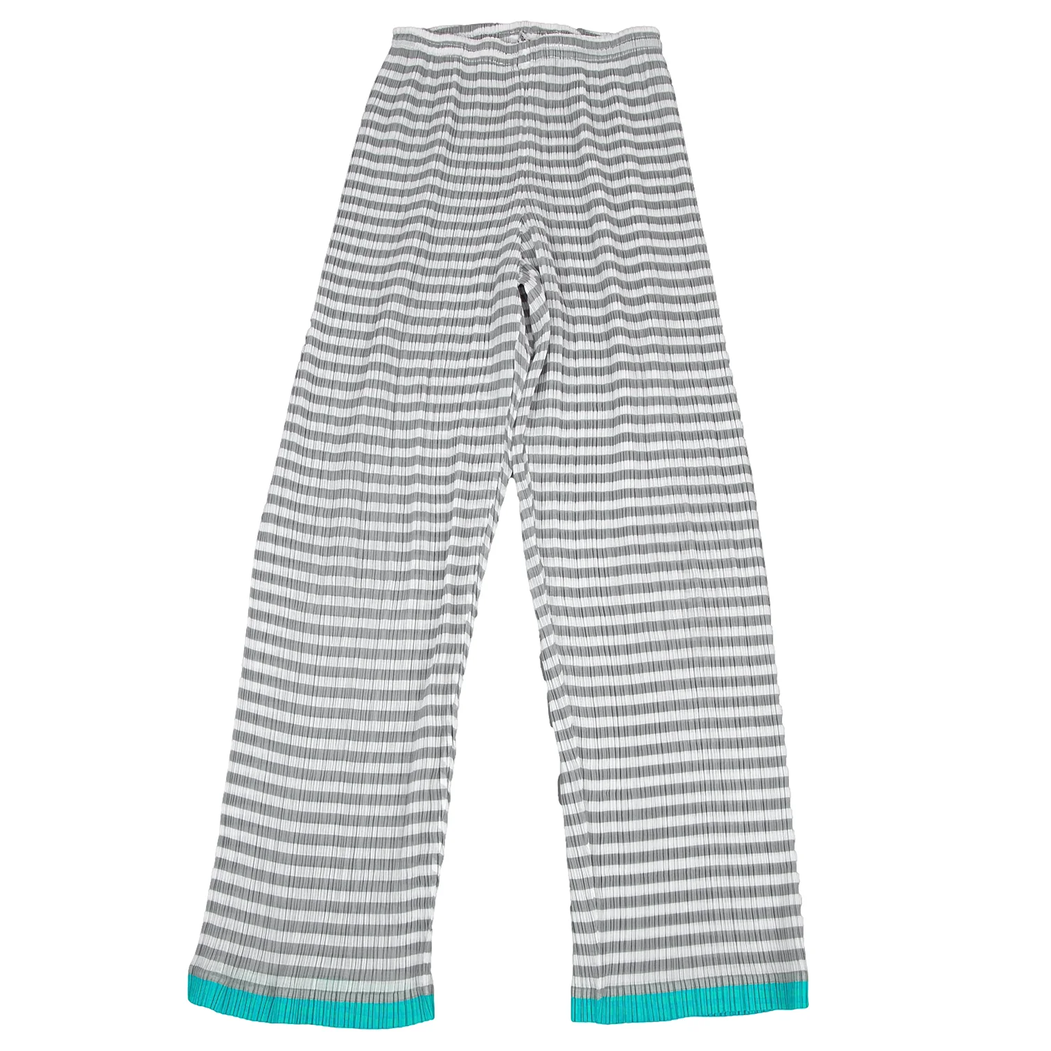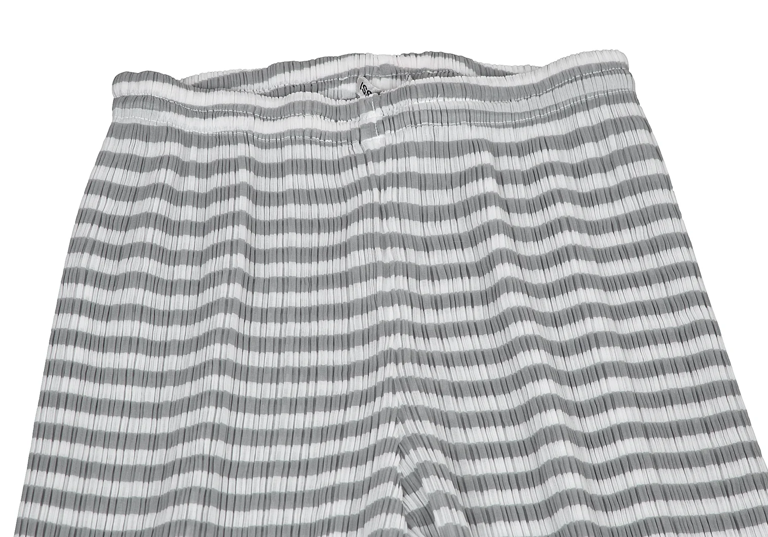 イッセイミヤケISSEY MIYAKEパターン切替ボーダーシースループリーツパンツ 白グレーM