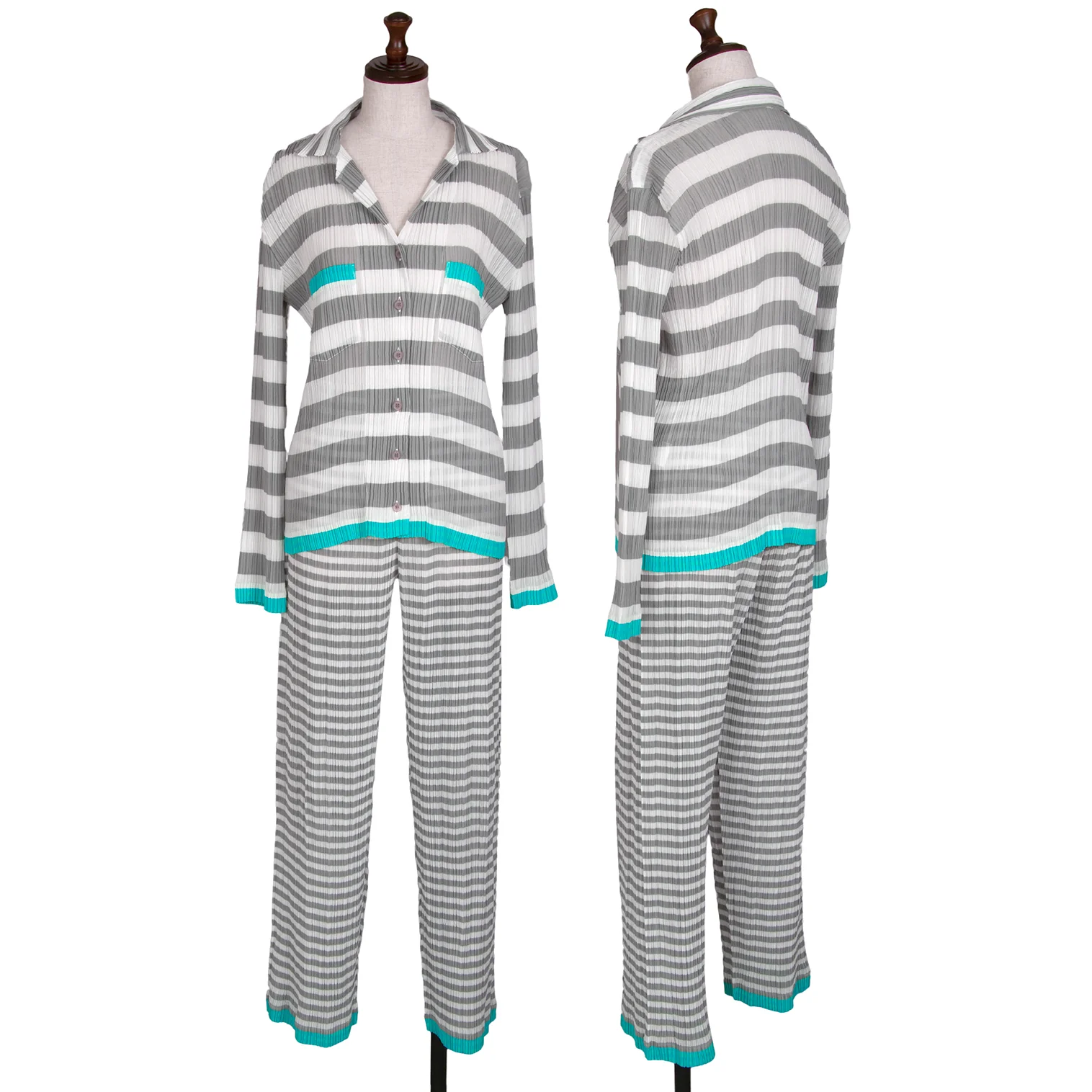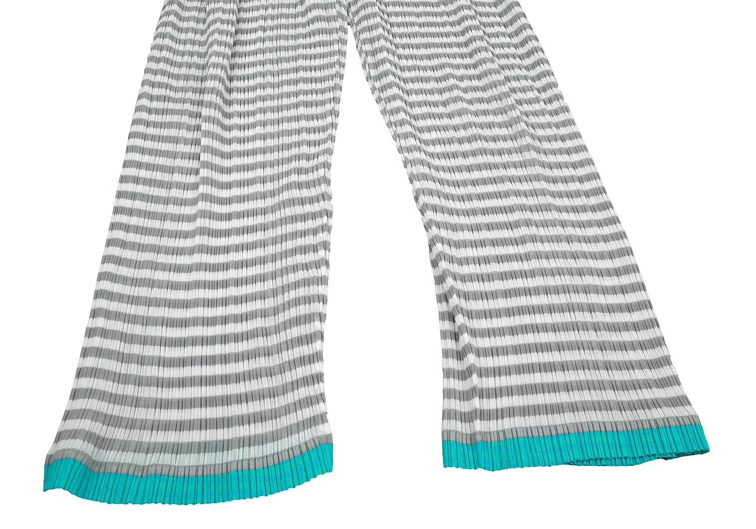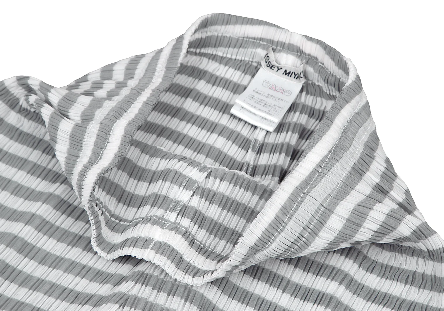 イッセイミヤケISSEY MIYAKEパターン切替ボーダーシースループリーツパンツ 白グレーM